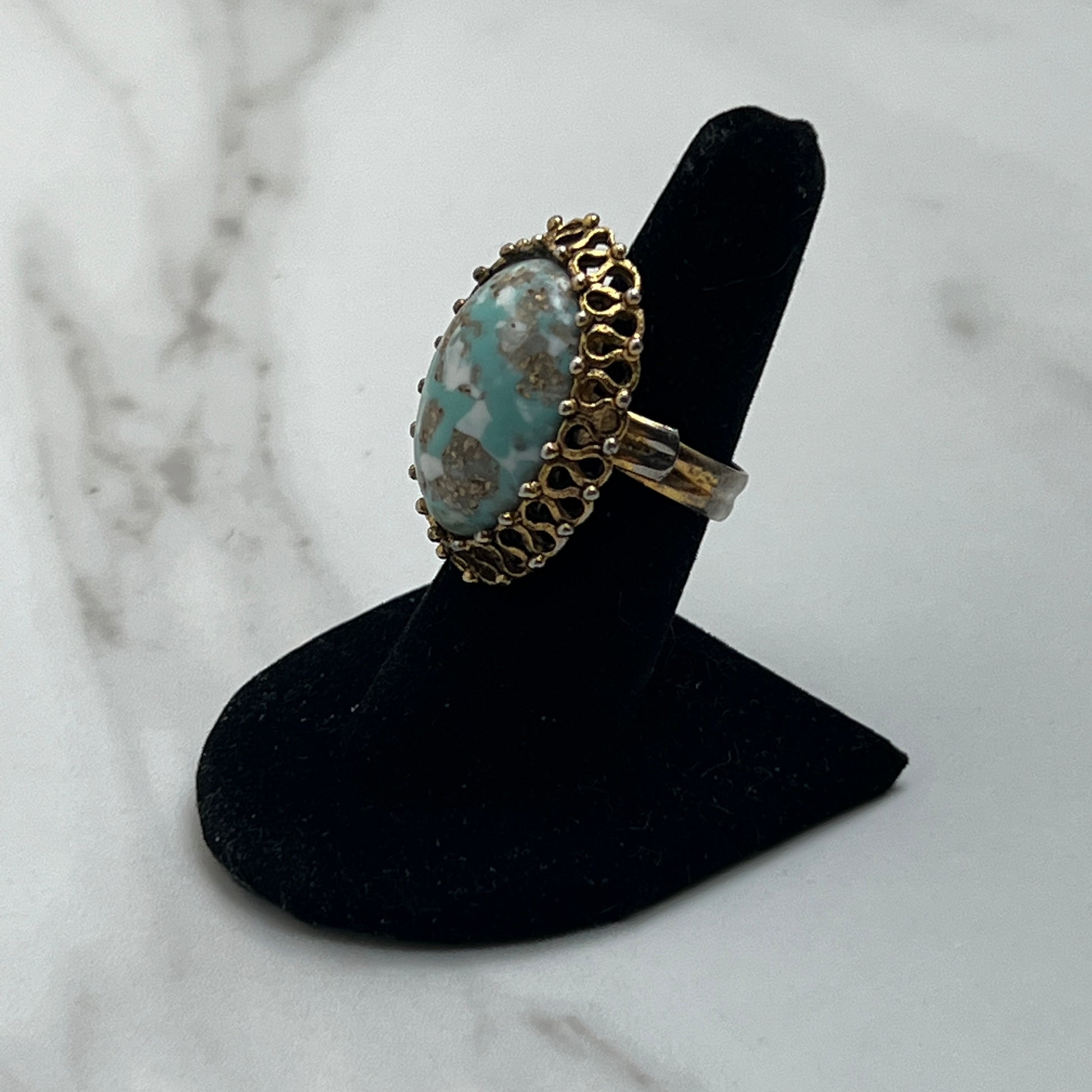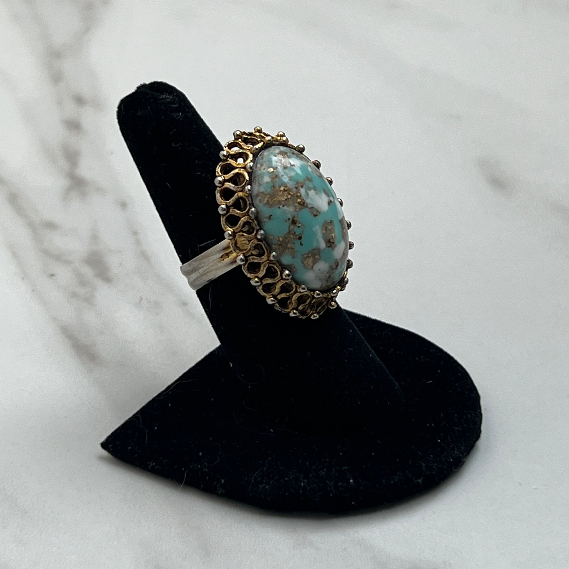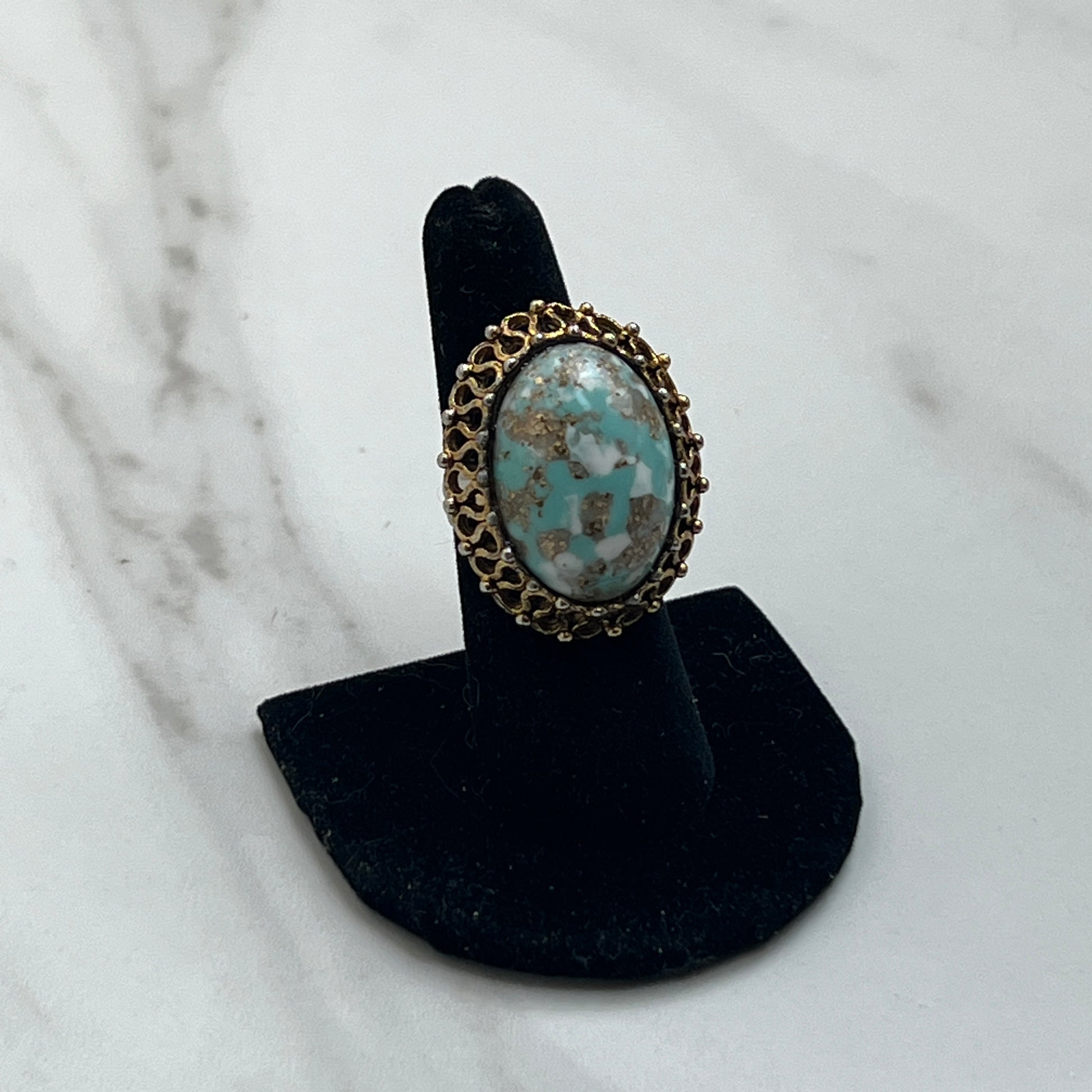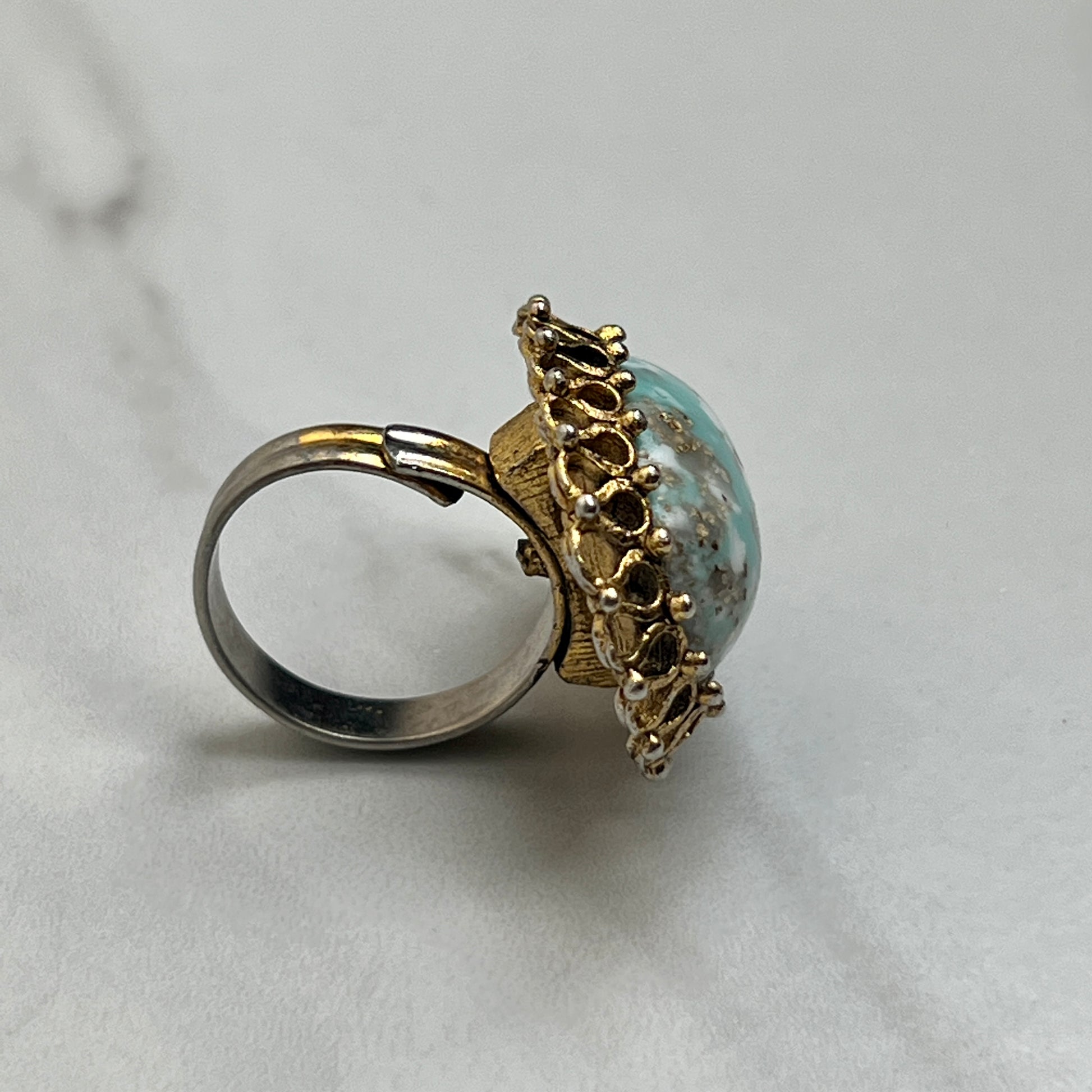 1.25" Teal, White and Gold Colored Ring (Adjustable)