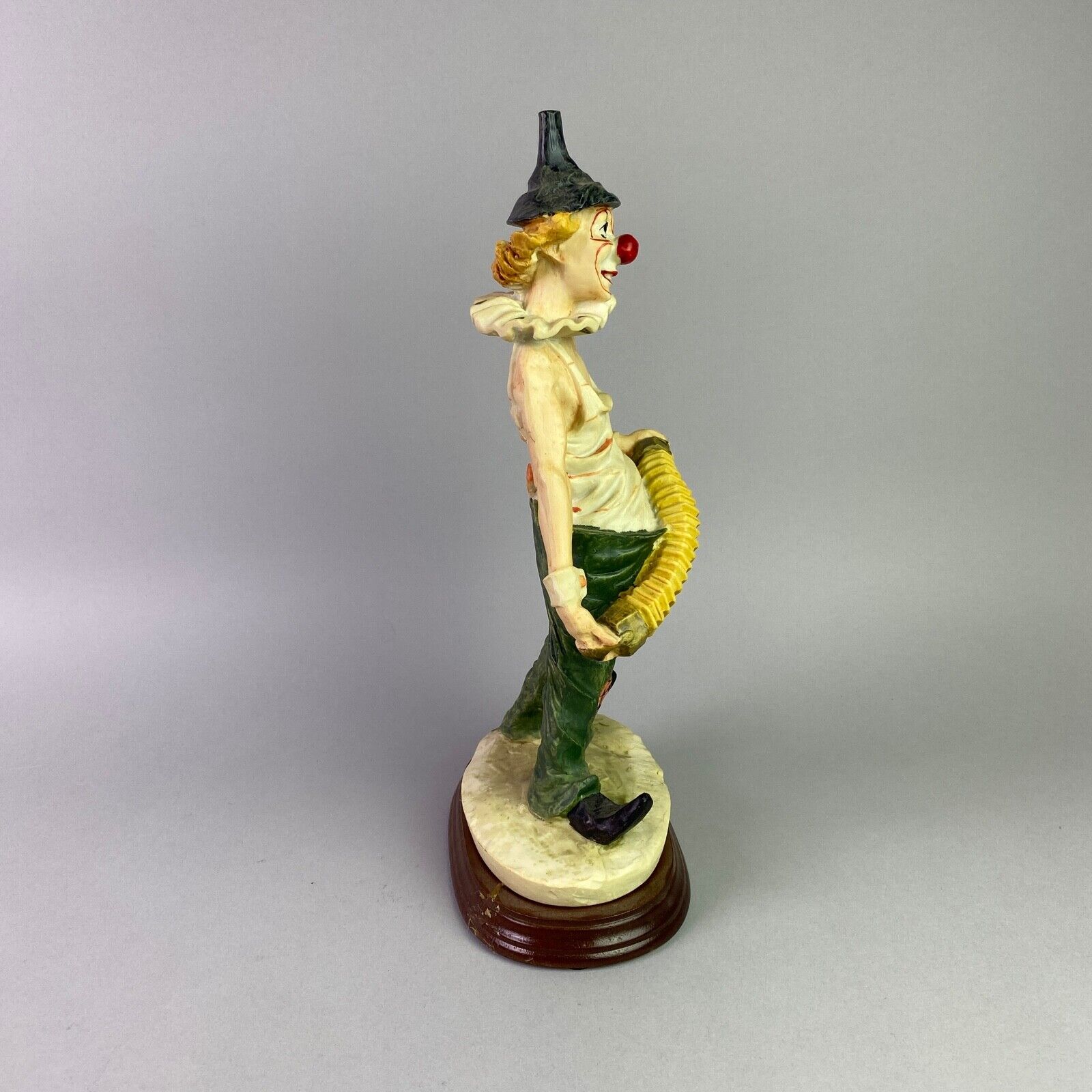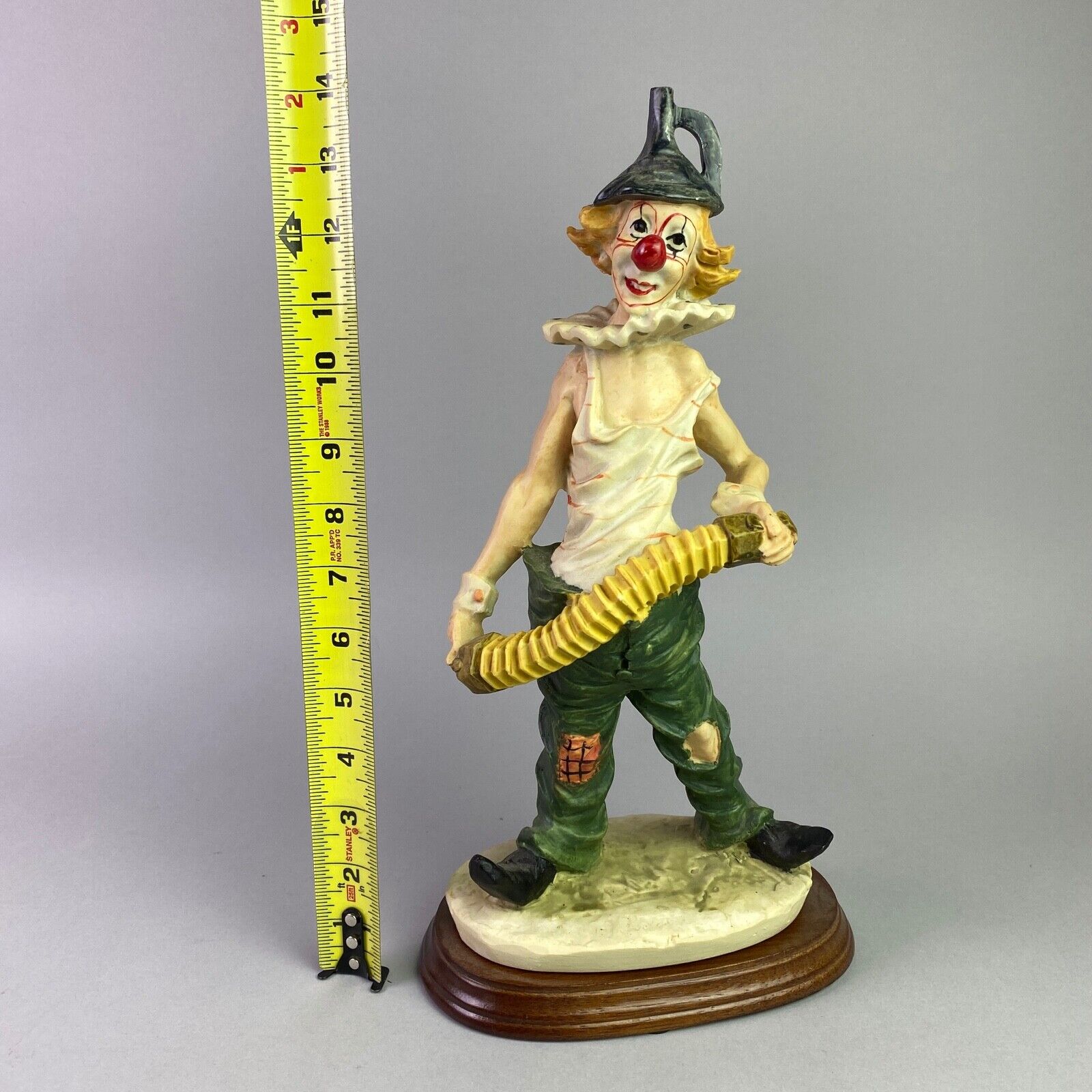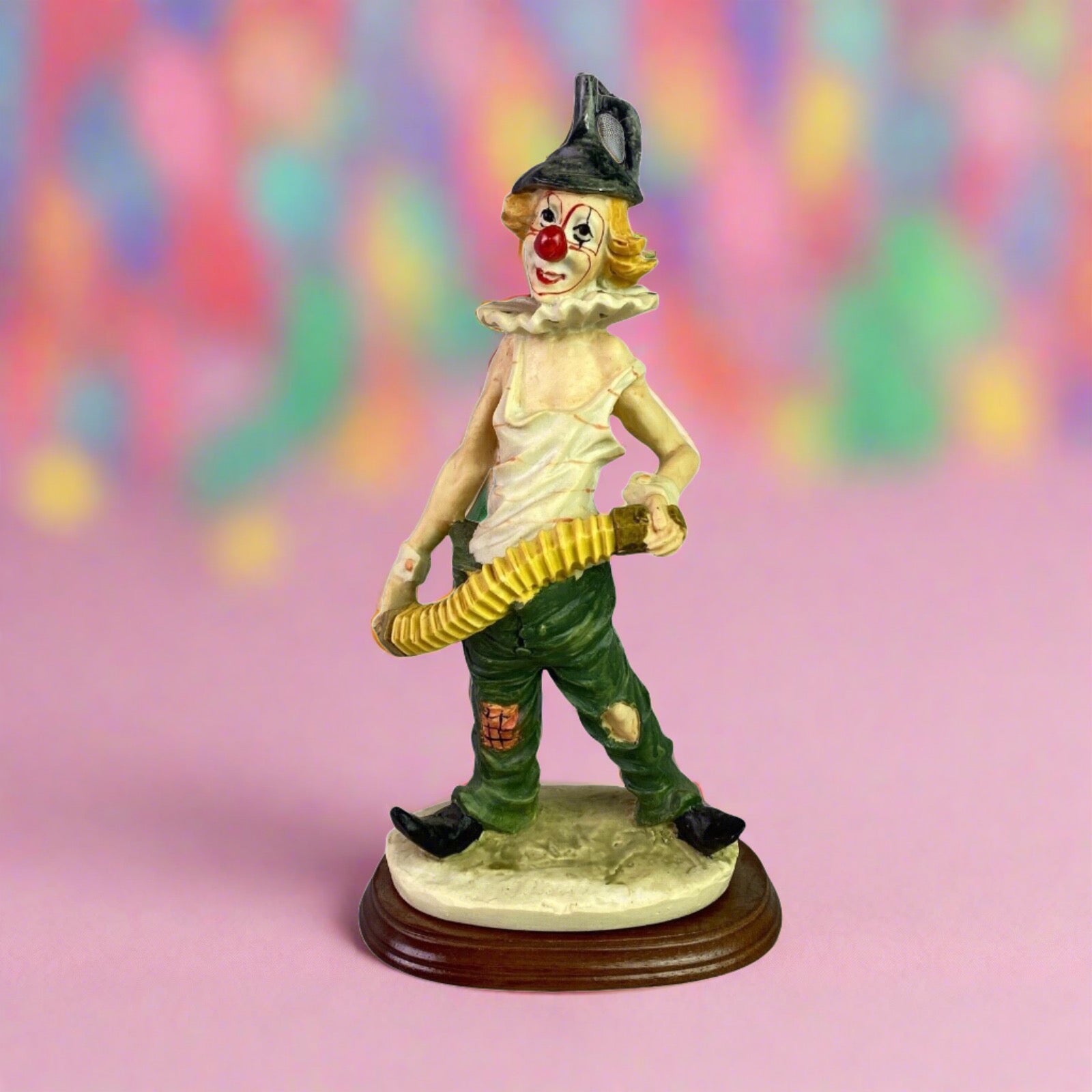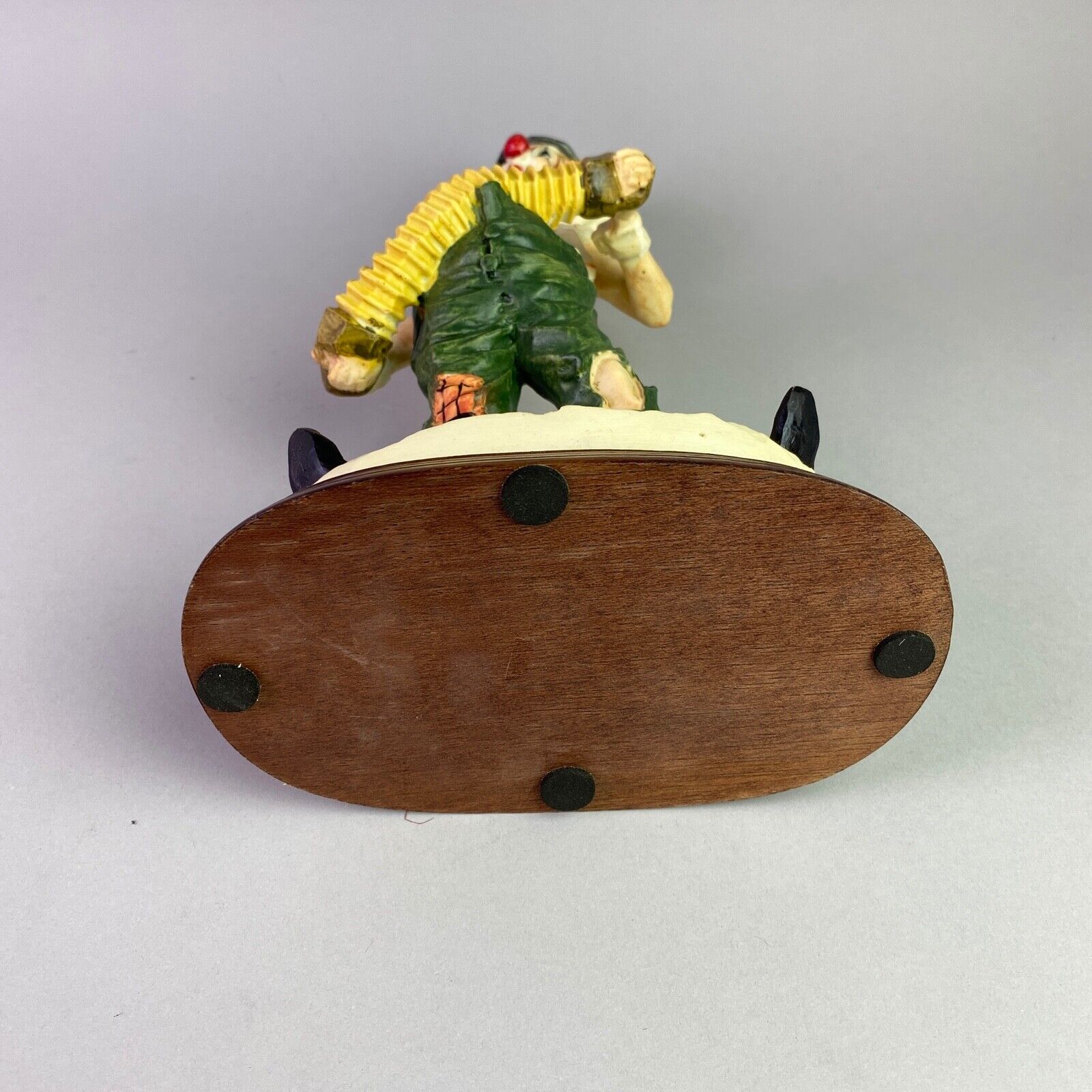 14" Clown Playing Accordion on Wooden Base (Tin Man Hat)