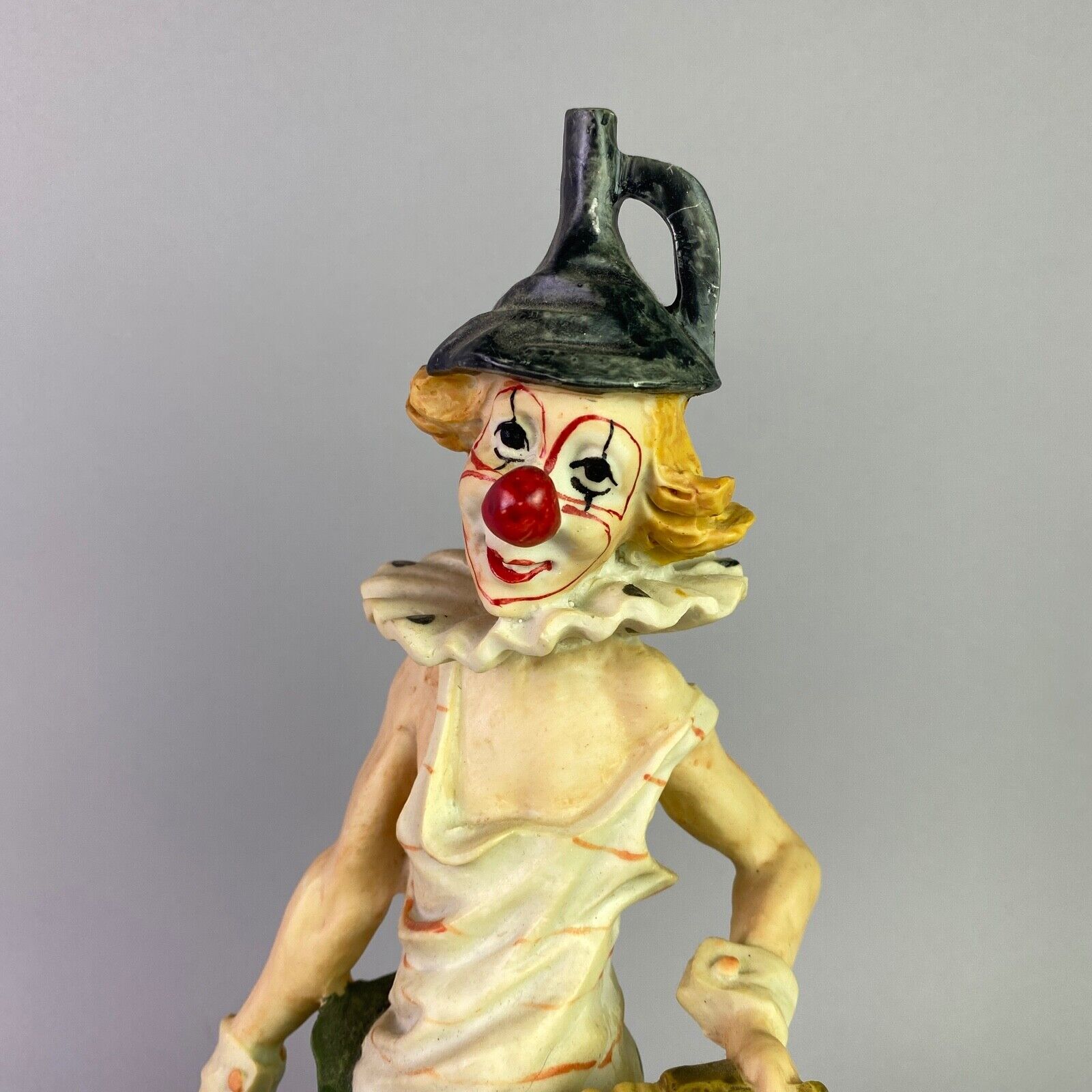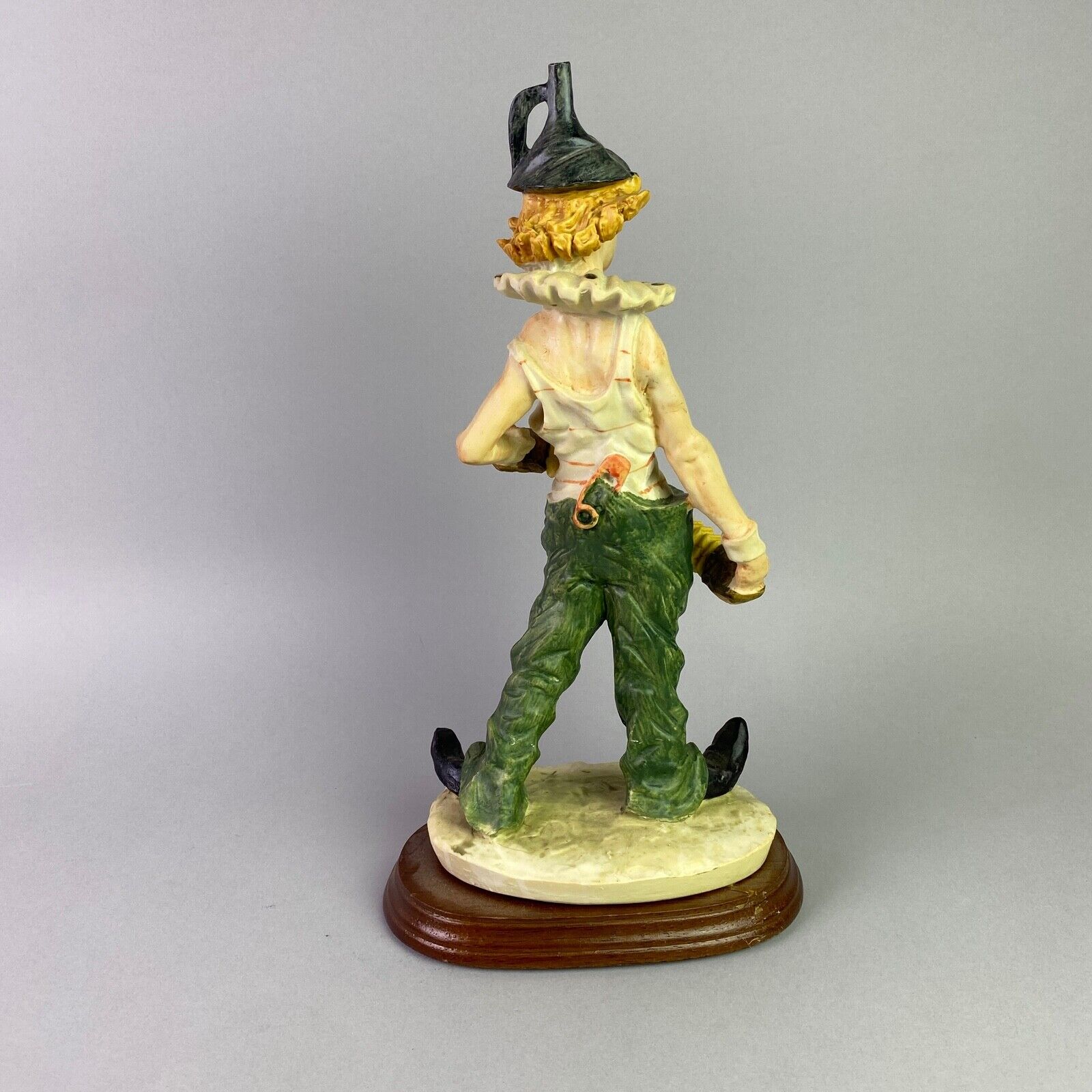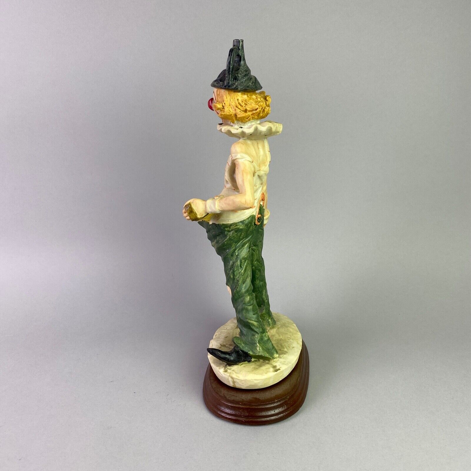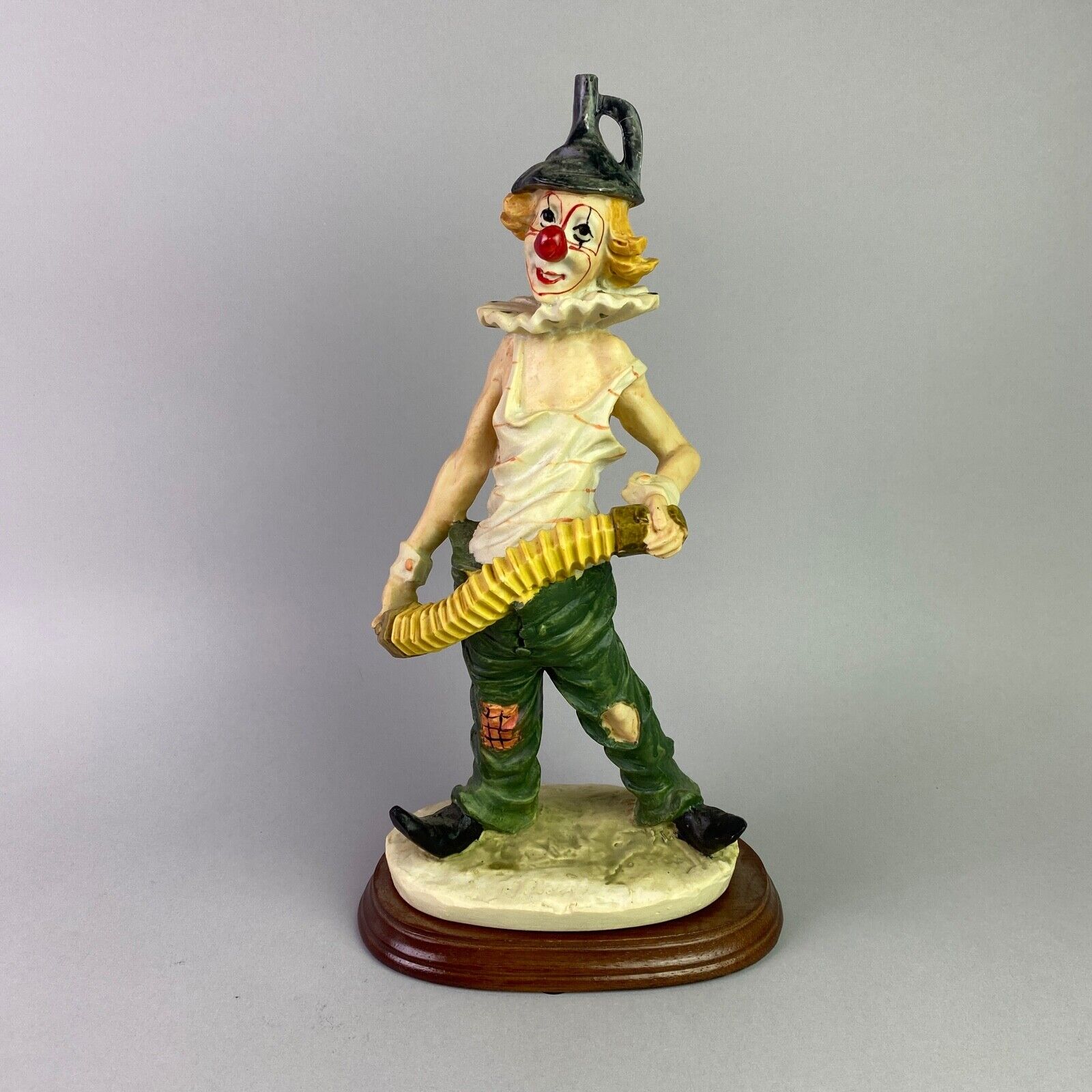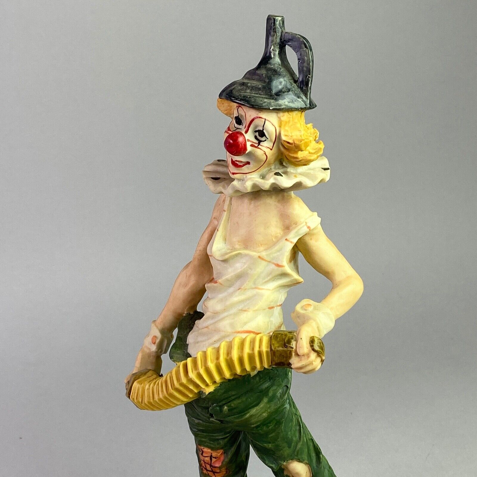14" Clown Playing Accordion on Wooden Base (Tin Man Hat)