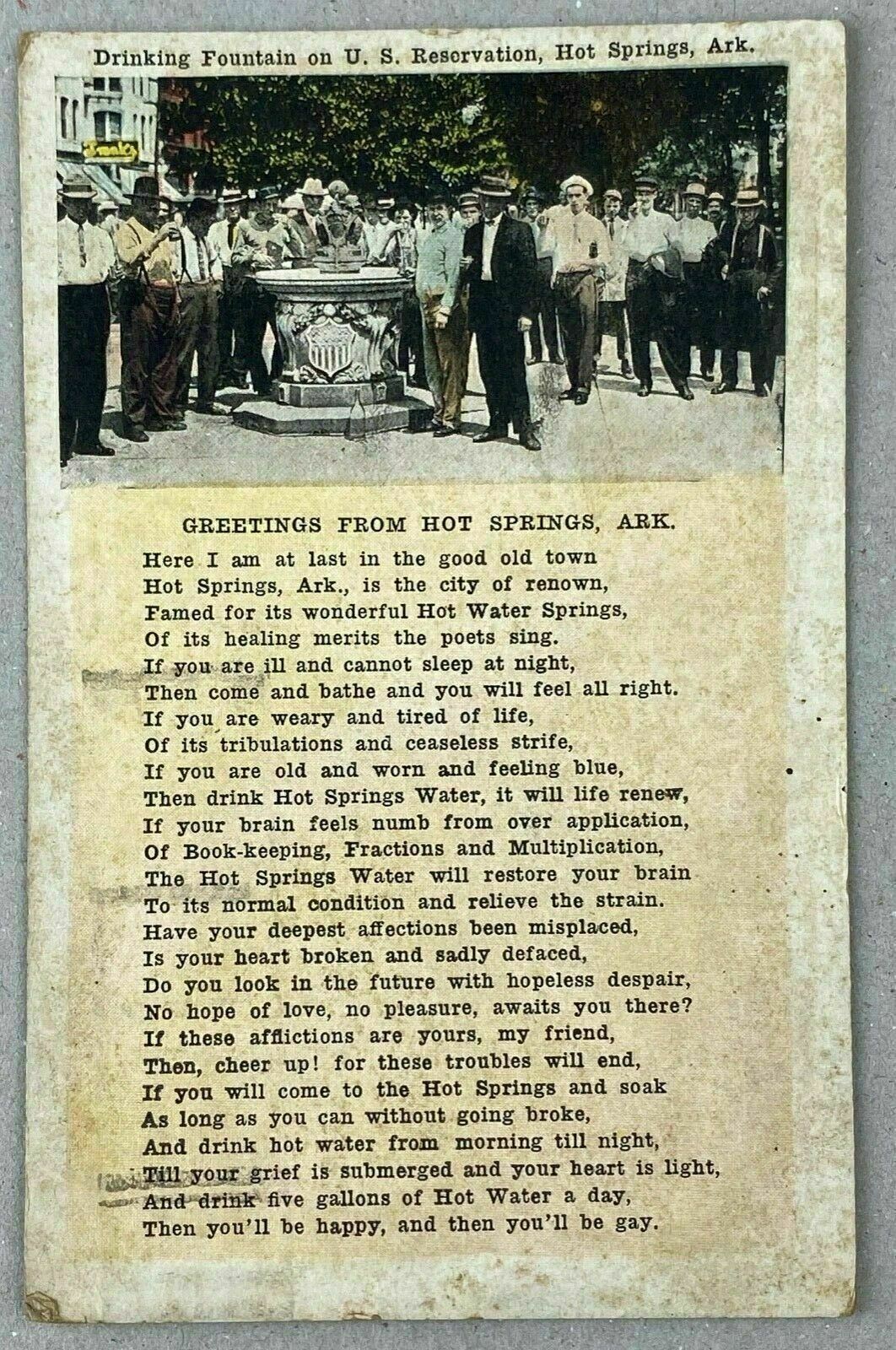 1920 Antique Postcard Drinking Fountain Arkansas