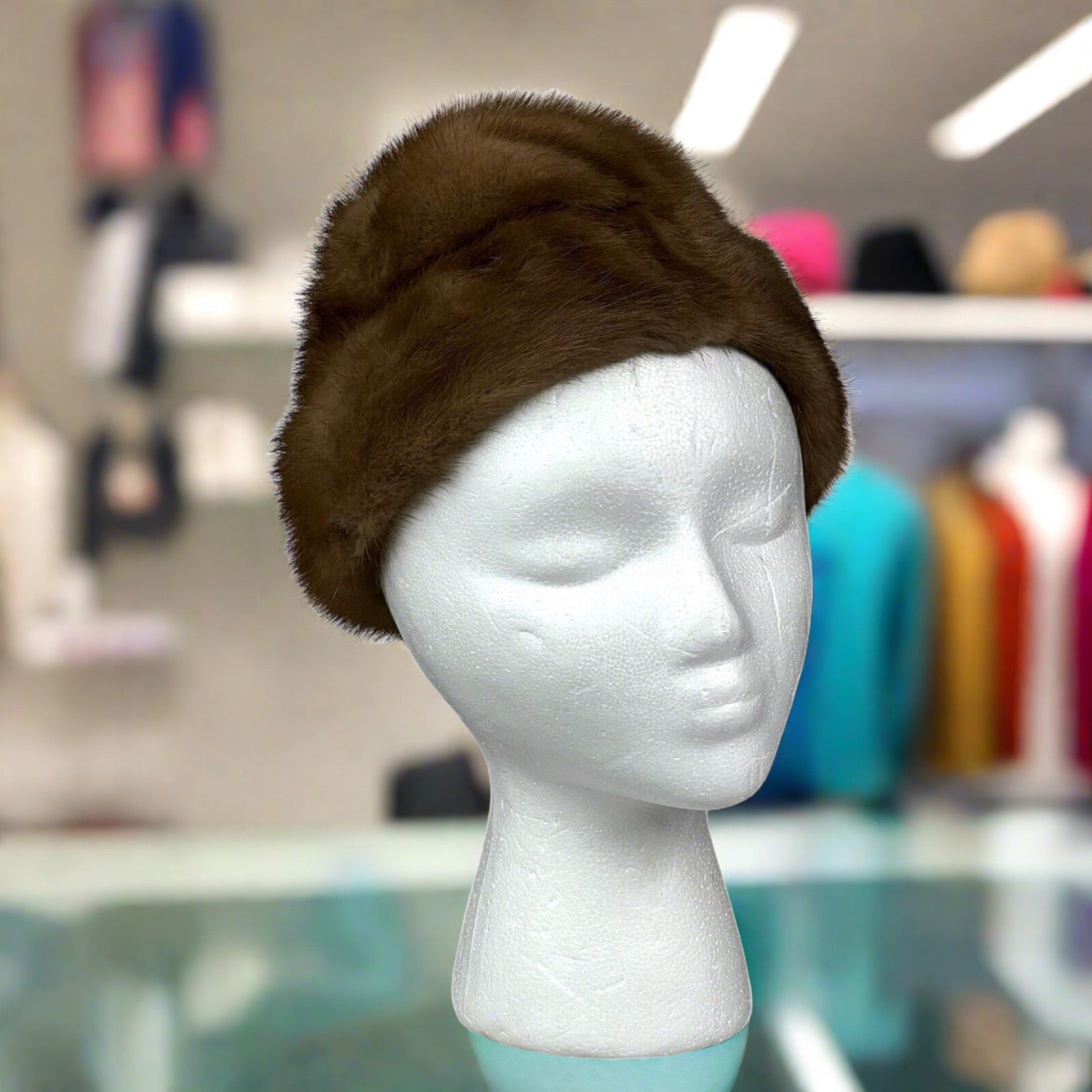 1950's Francios Paris New York Pillbox Brown Mink Hat from Sweden