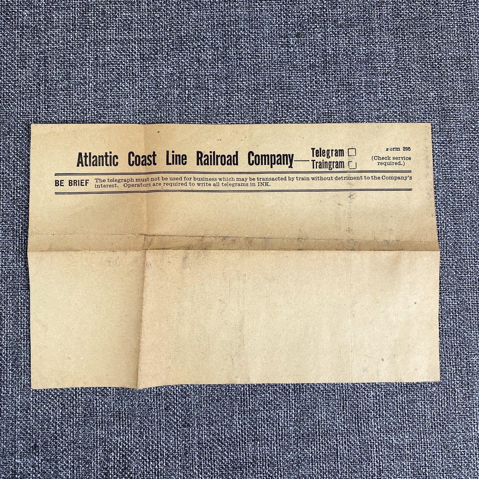 1955 Railroad Atlantic Coast line Railroad Company ACL Original Telegram