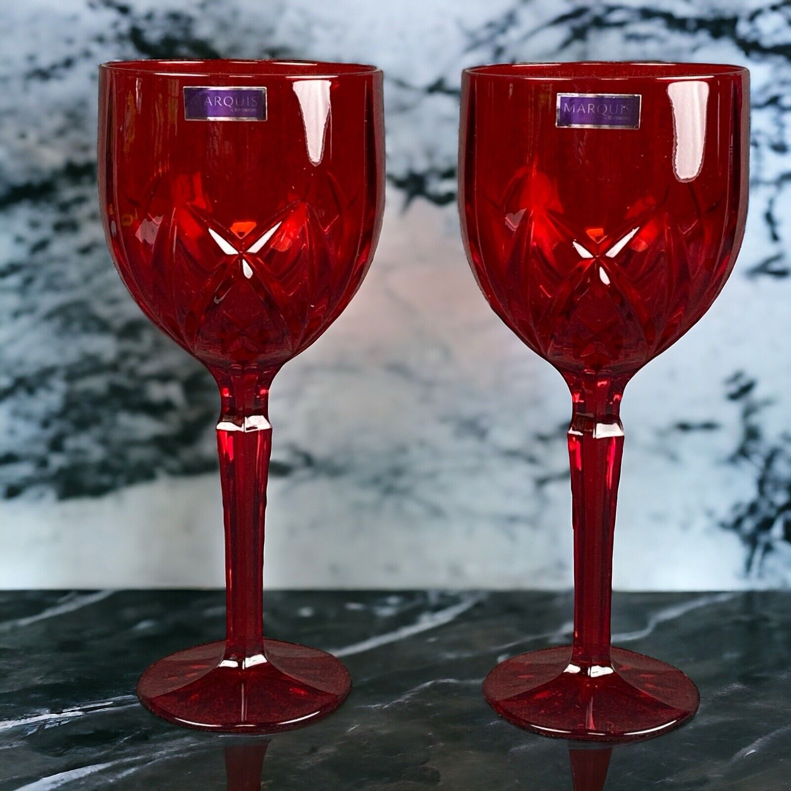 2 (Two) WATERFORD Marquis BROOKSIDE RED Wine Goblets-Signed RETIRED