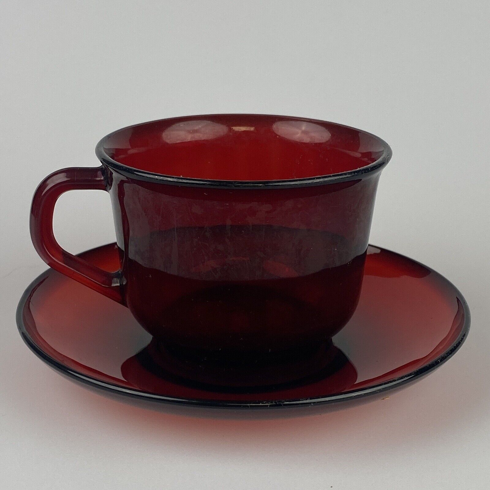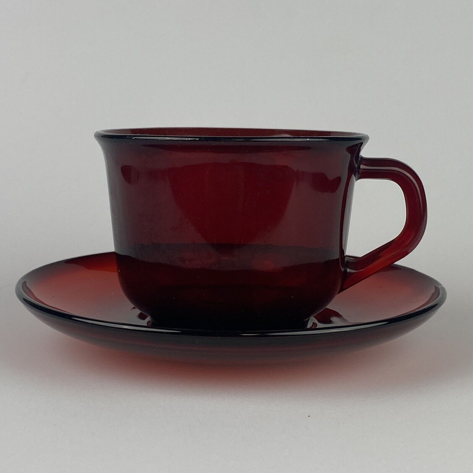 4 Vintage Glcoloc France Ruby Red Glass Mugs Coffee Tea Cups Glassware