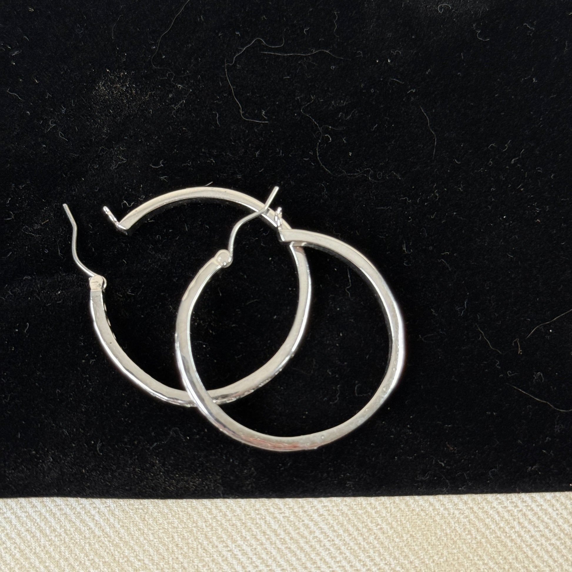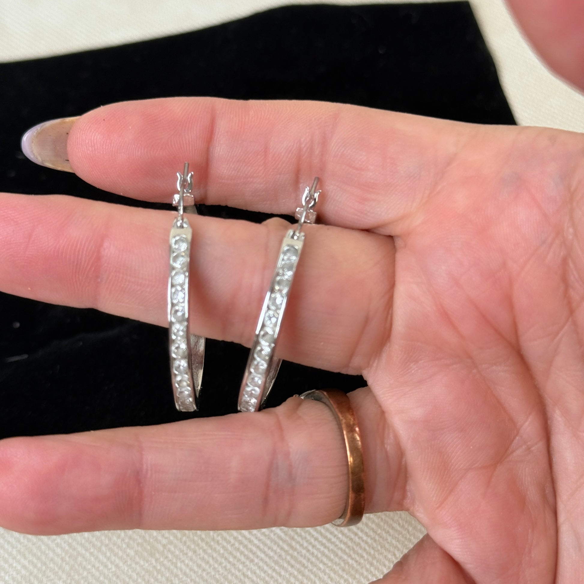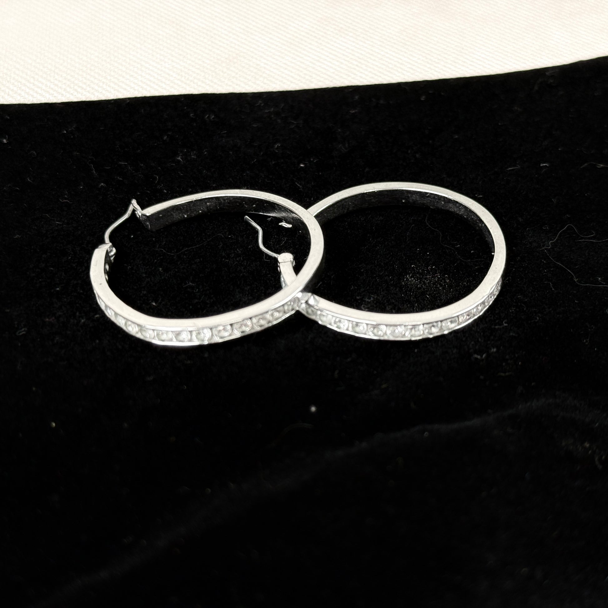 1.5" Silver Color Hoop Earrings with Small Rhinestones