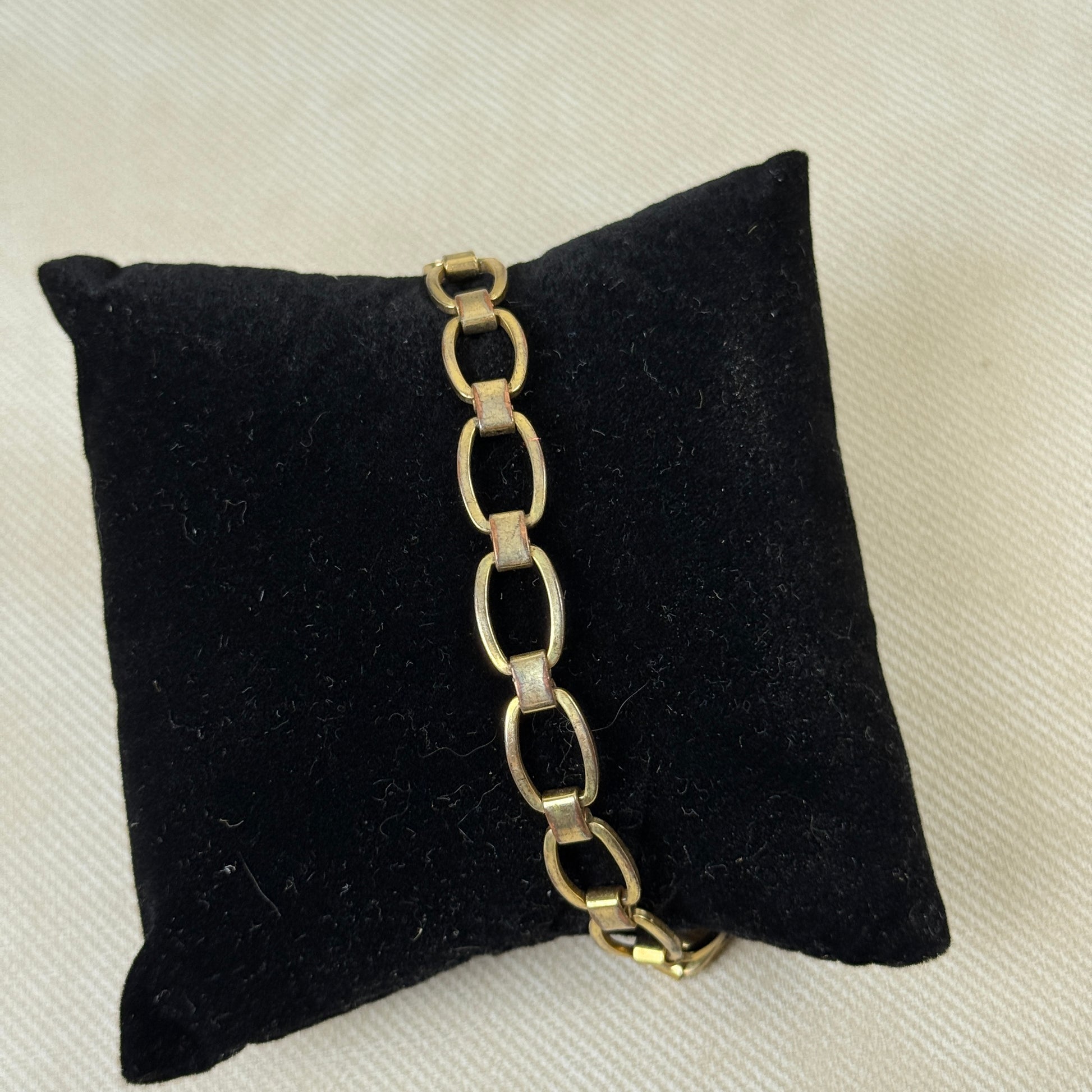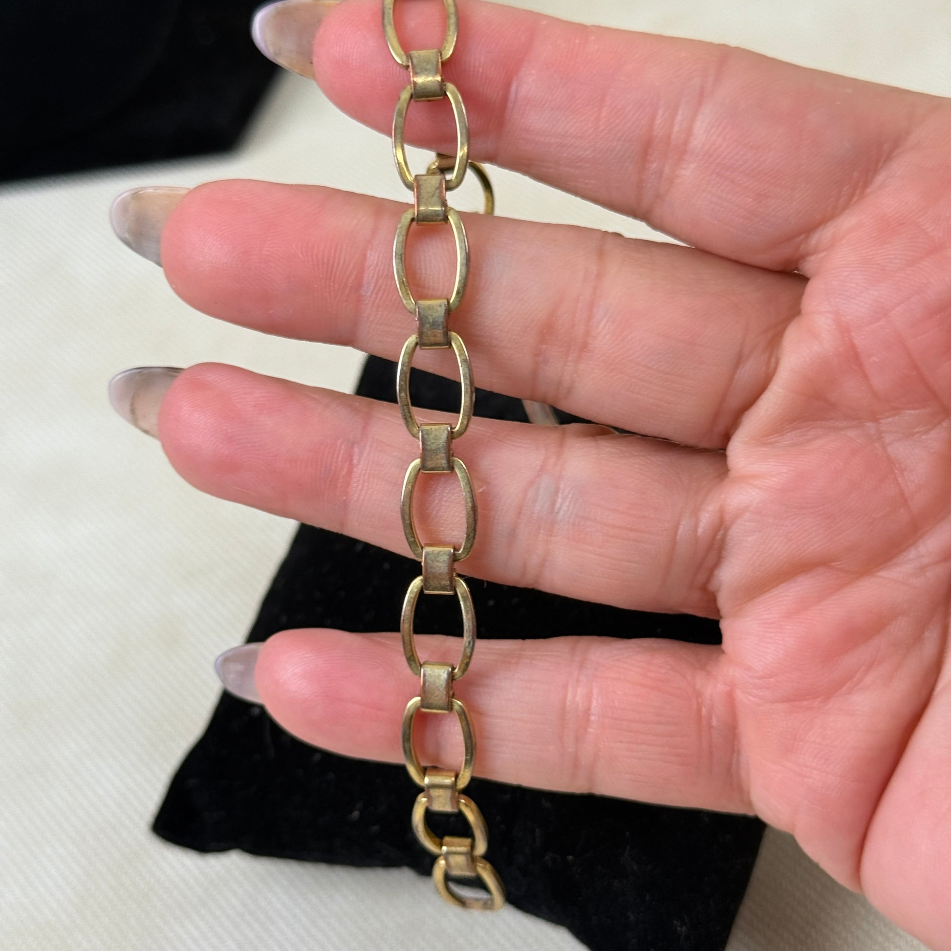7.25" Gold Color Chain Bracelet. Its sleek, polished links add a touch of sophistication and warmth to any outfit. Comfortable fit for all-day wear.
