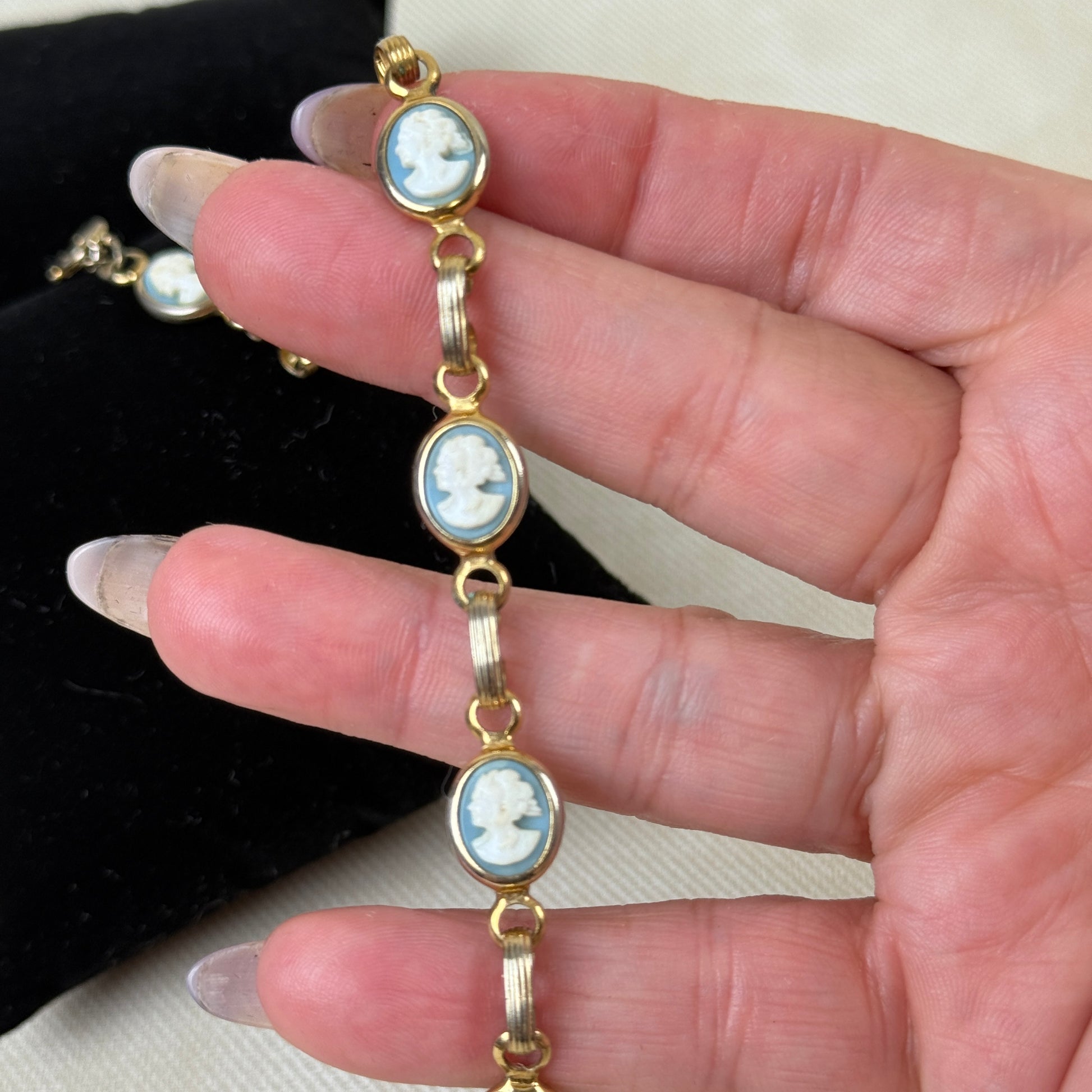 7.5" Cameo Style Bracelet. Its cameo design offers a vintage-inspired look that enhances any ensemble. it a standout piece in your jewelry collection.