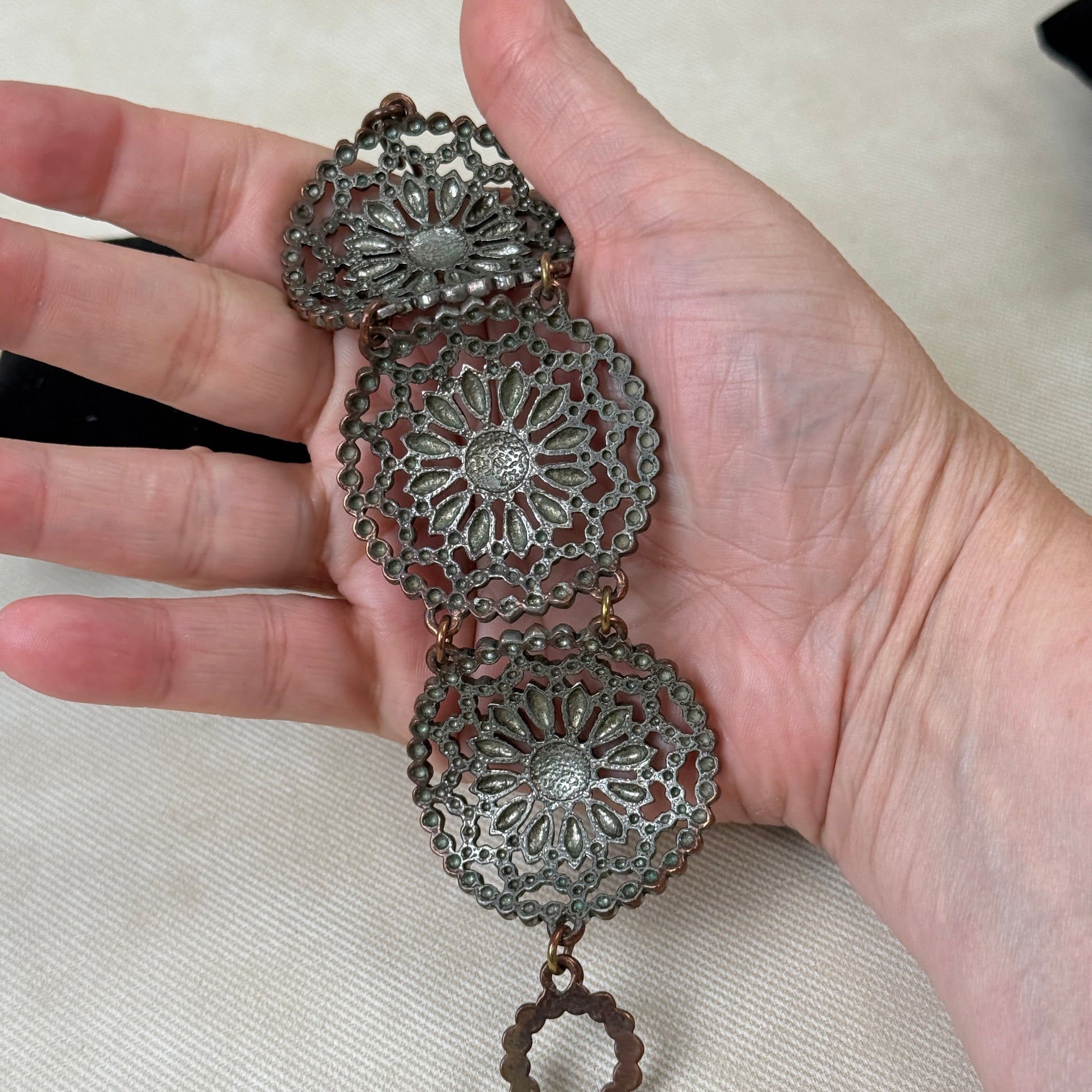 8" Vintage Flower Chain Bracelet, featuring floral links that add timeless charm to any outfit. Its classic design pairs effortlessly with both casual and formal looks, making it a versatile accessory you'll reach for again and again.