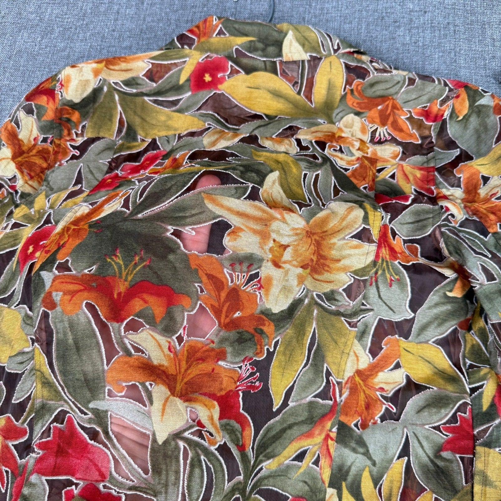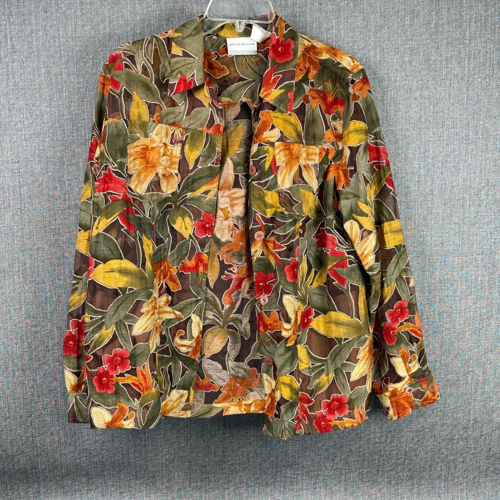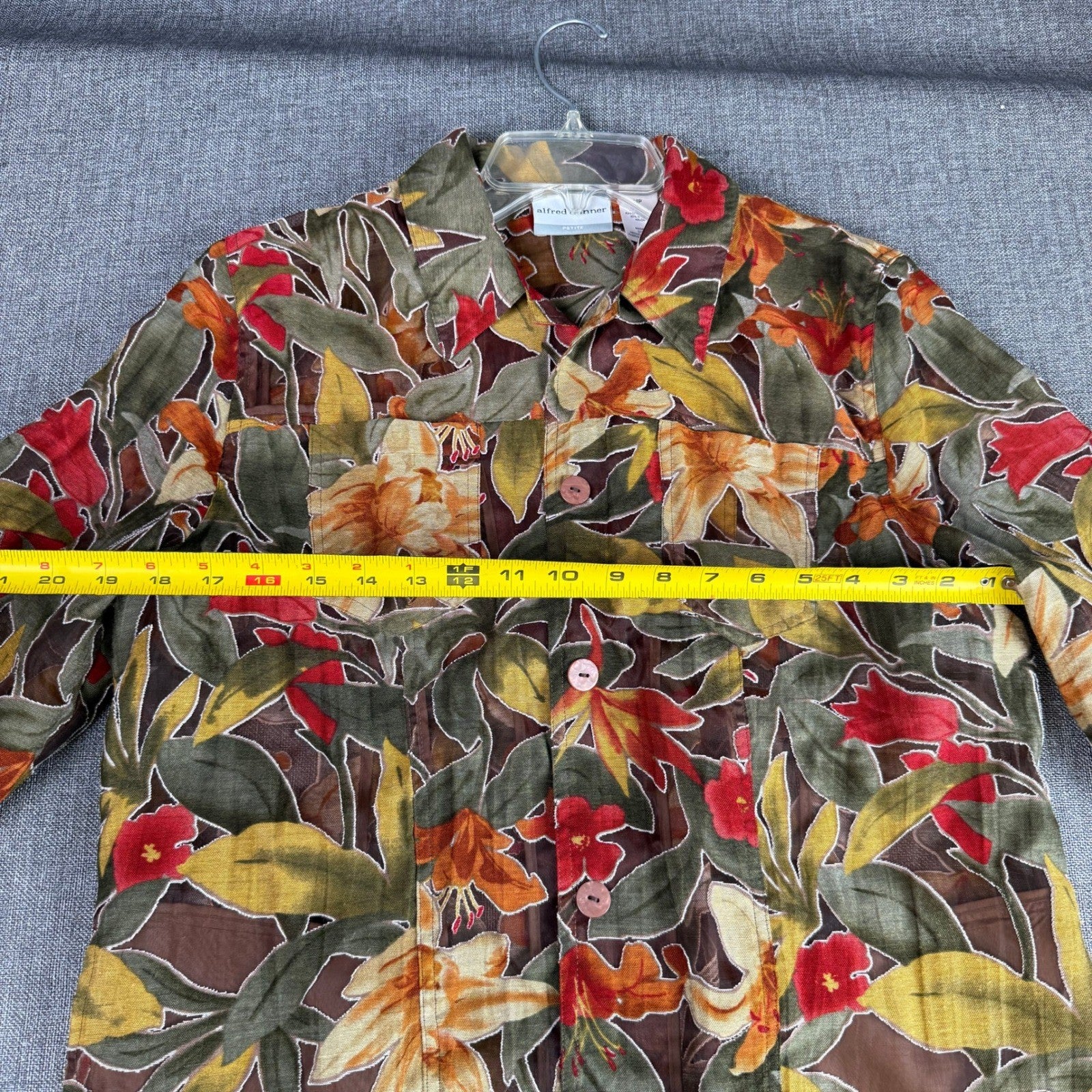 Alfred Dunner 12P Petite Floral Button Down Shirt Top Blouse Green Red