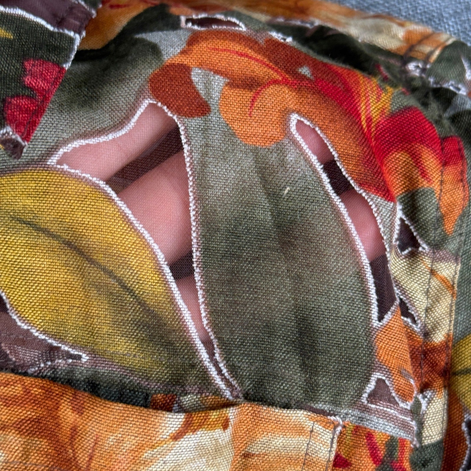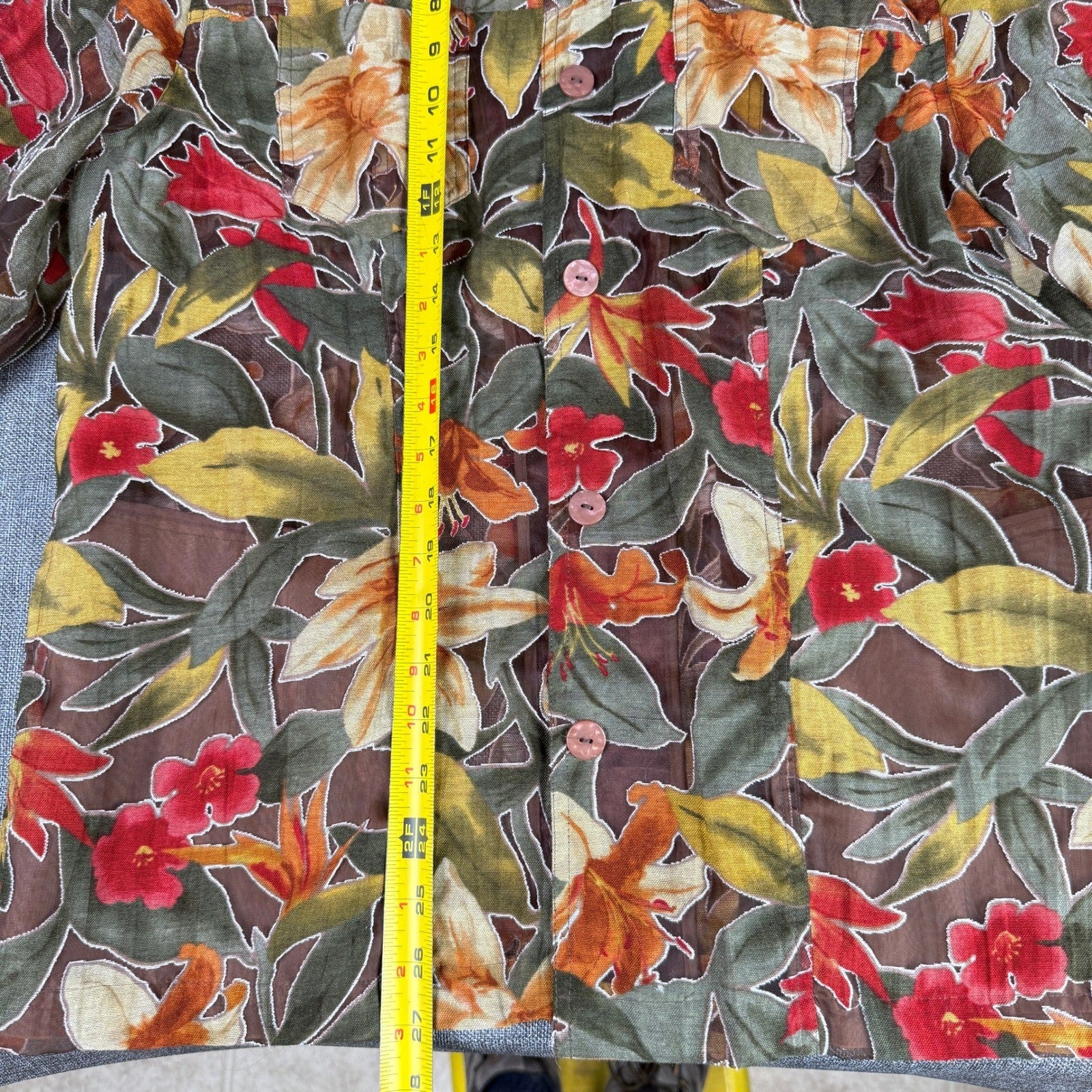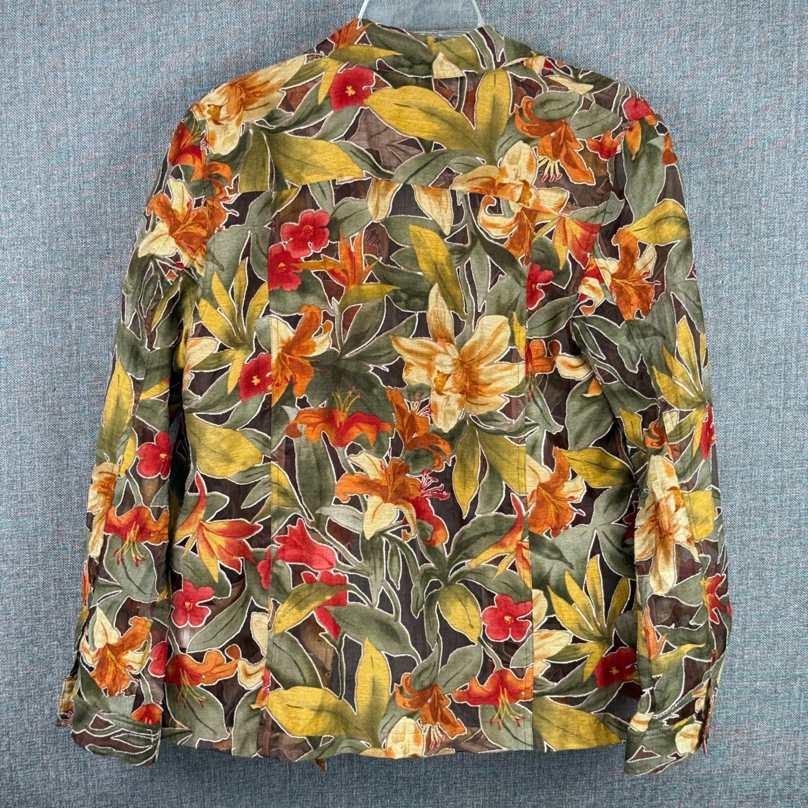 Alfred Dunner 12P Petite Floral Button Down Shirt Top Blouse Green Red