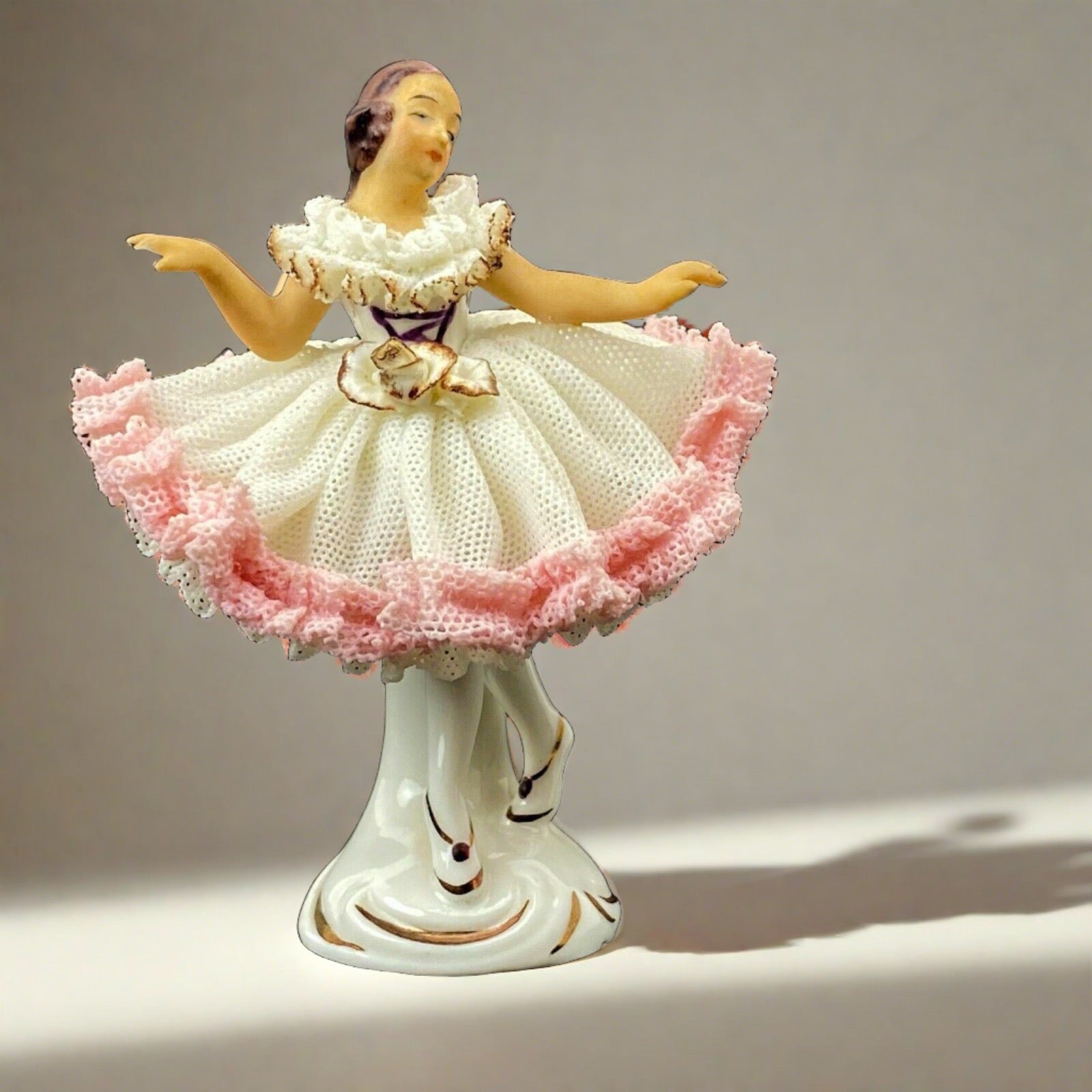 Alka 'Ninette' German Dresden Lace Porcelain Dancer 3.5" Tall
