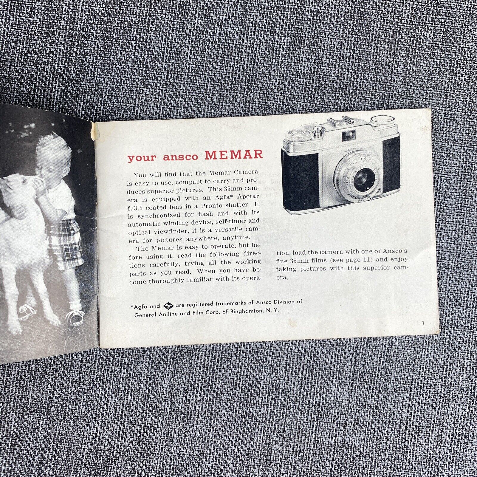 Ansco Memar film camera Original Instruction Manual Vintage