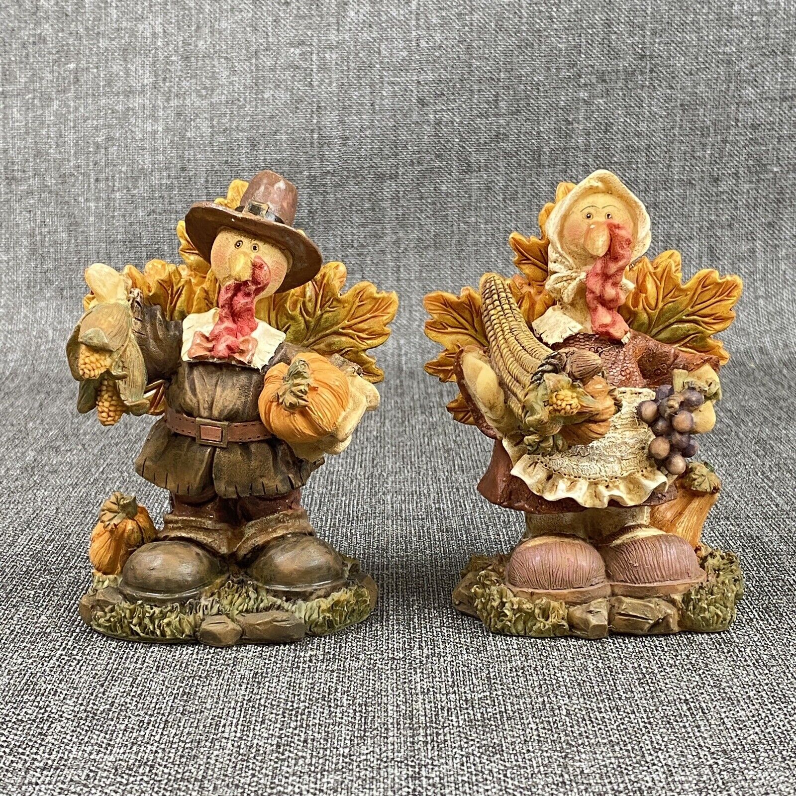 Anthropomorphic Thanksgiving Pilgram Turkeys Figures Girl and Boy (NOS)