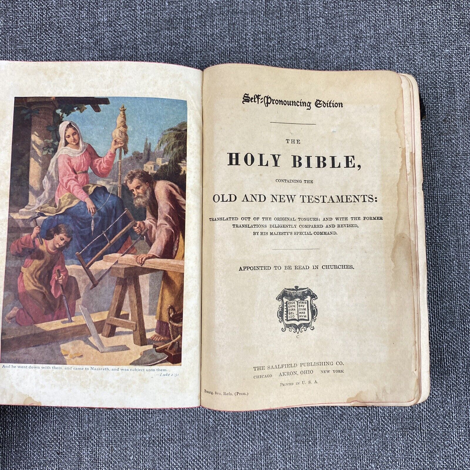 Antique Saalfield Publishing Co Holy Bible Teacher's Self-Pronouncing Edition