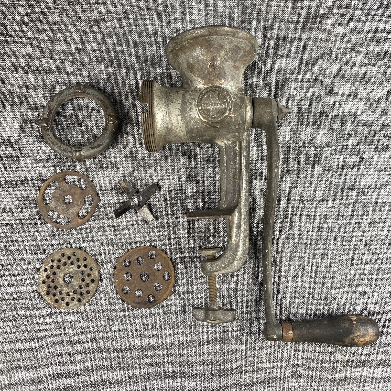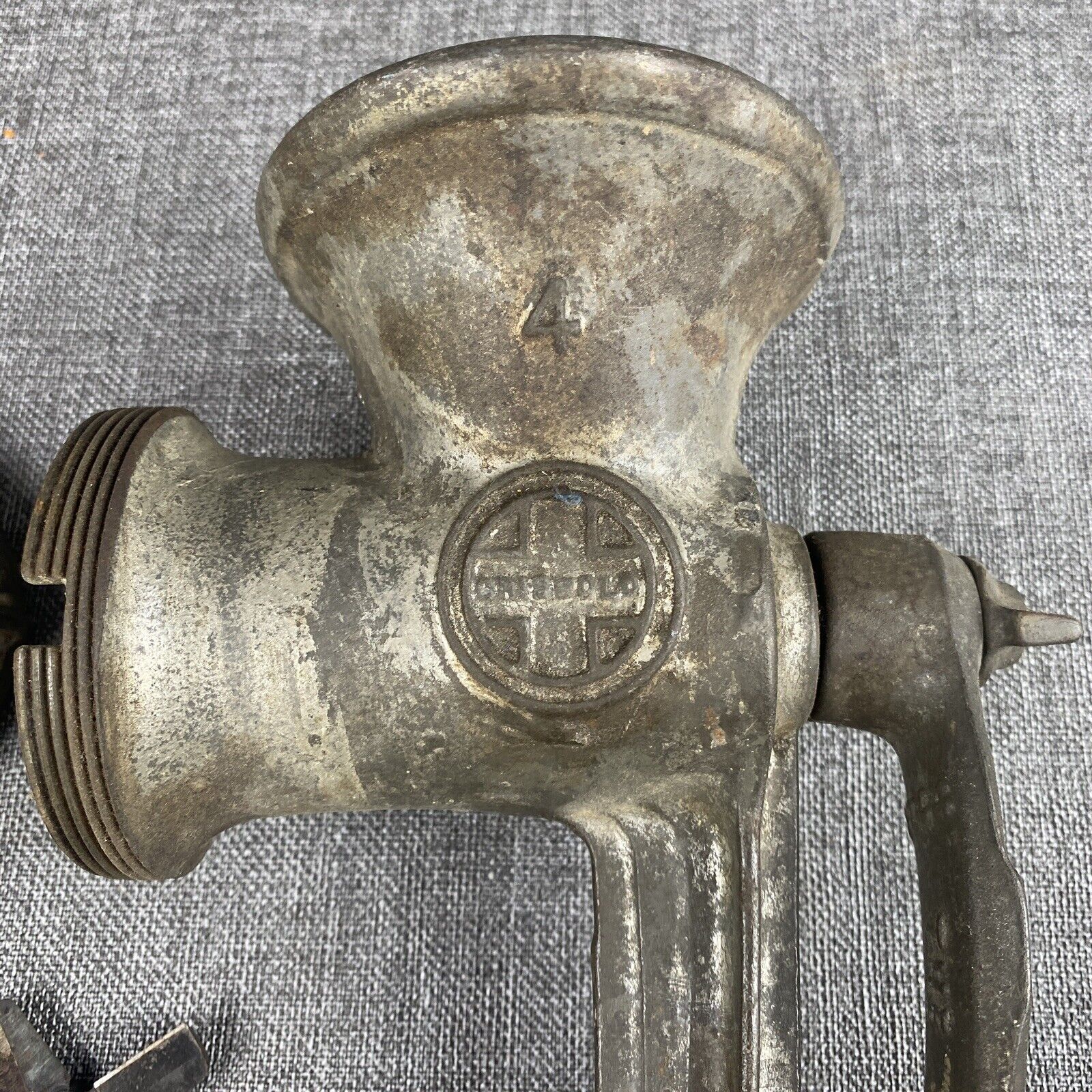 Antique Vintage Meat Grinder Cast Iron #4 Griswold Chopper Erie PA 3 Blades