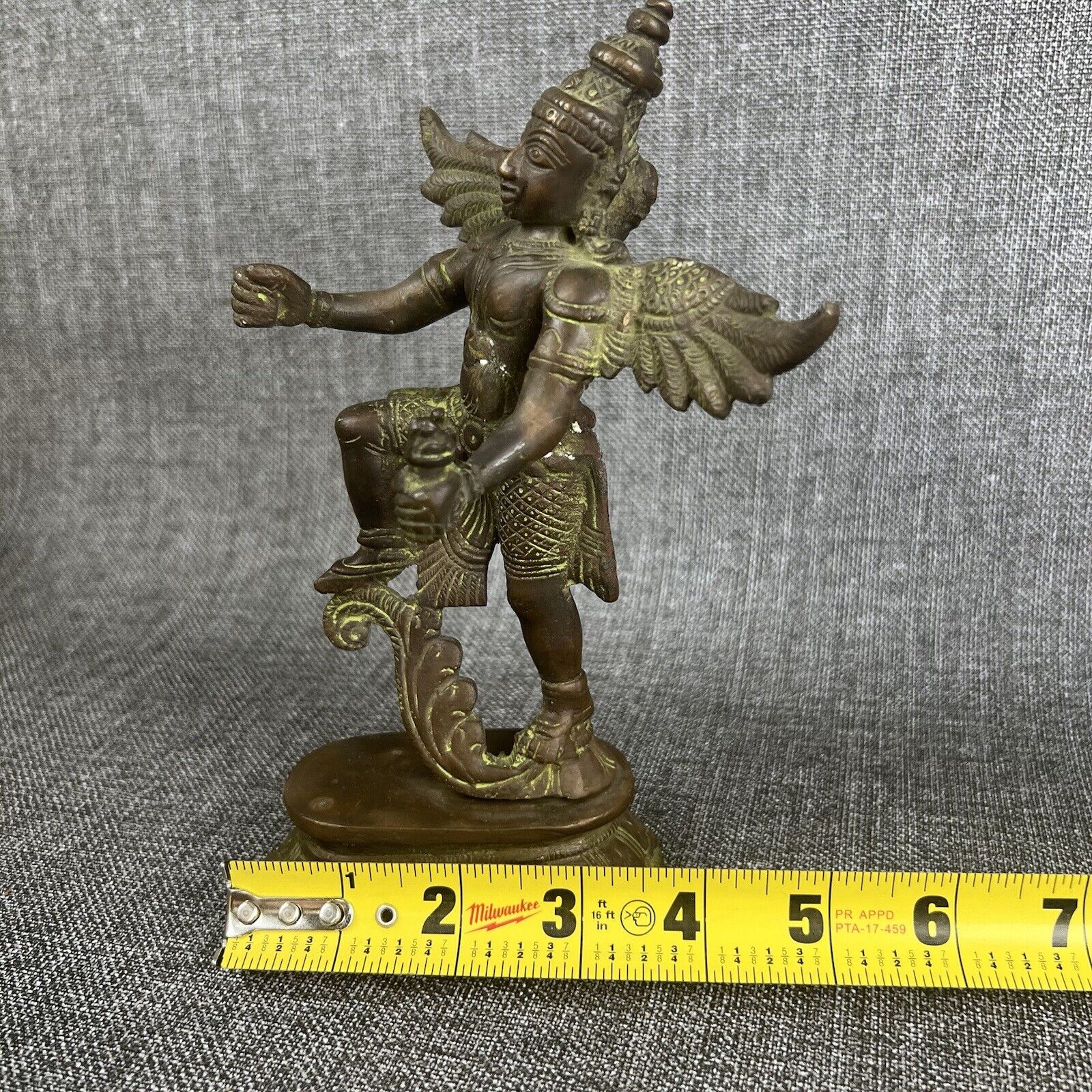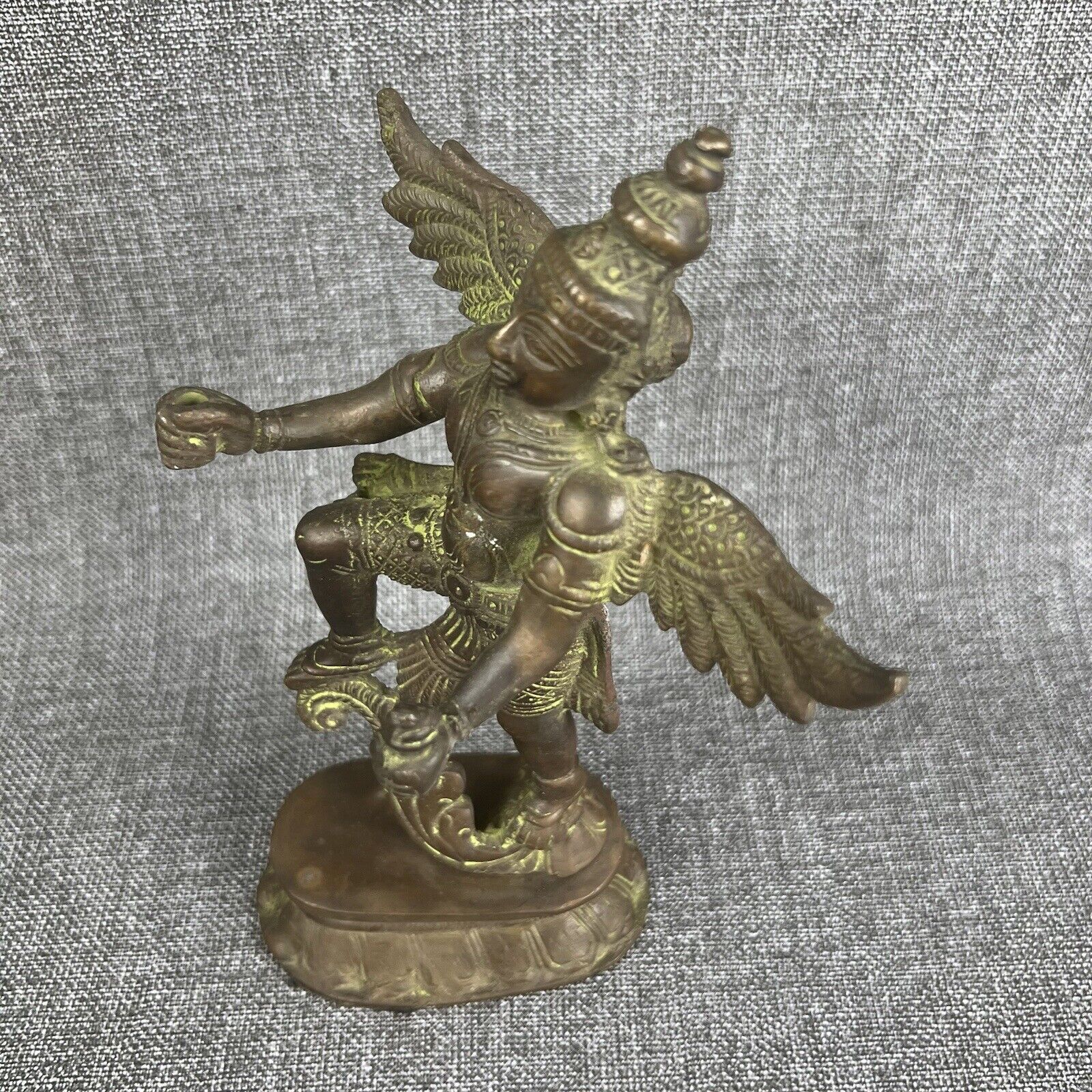Antique Vintage Thai Hindu Lord Vishnu Garuda Wing Bronze Statue (READ) 7.5 inch