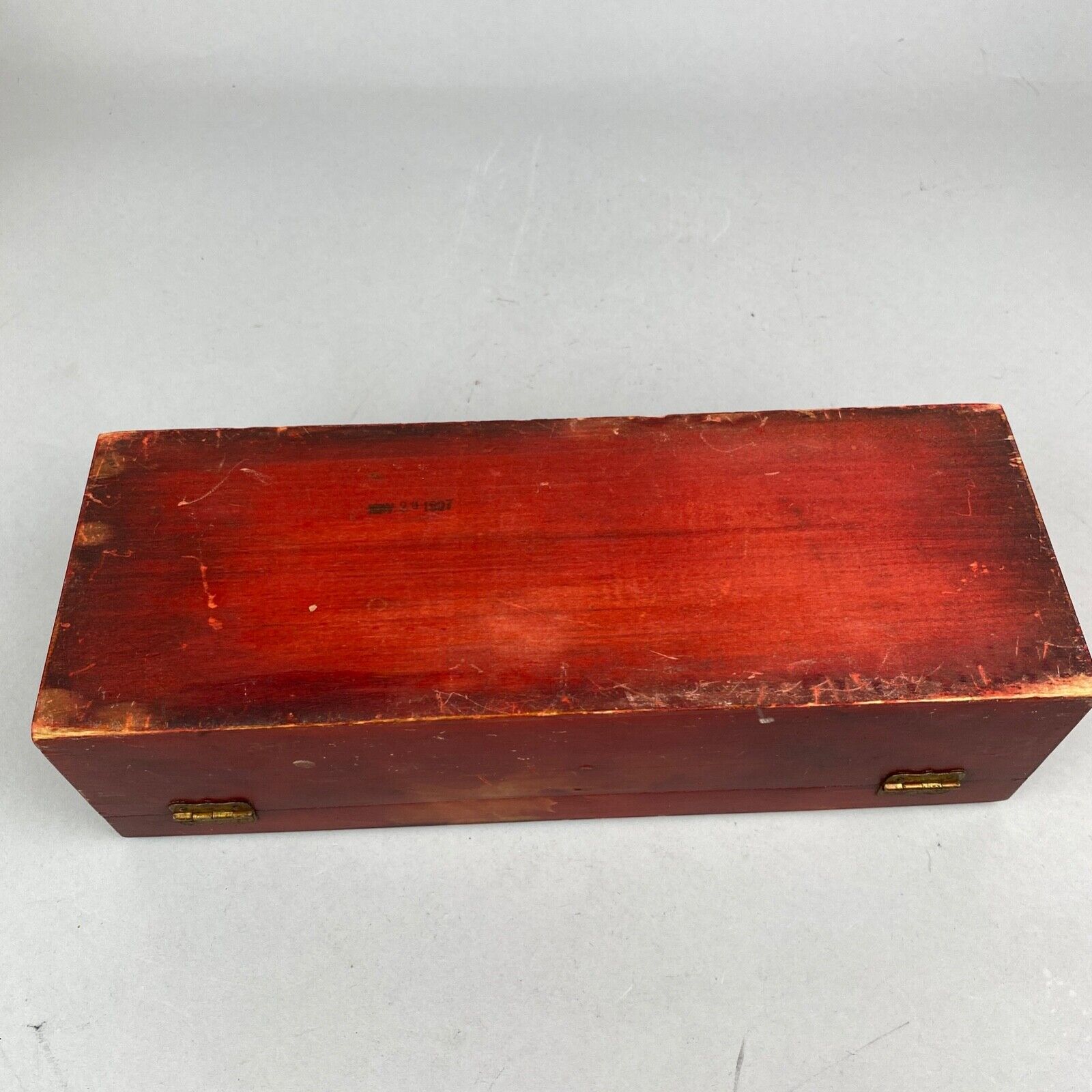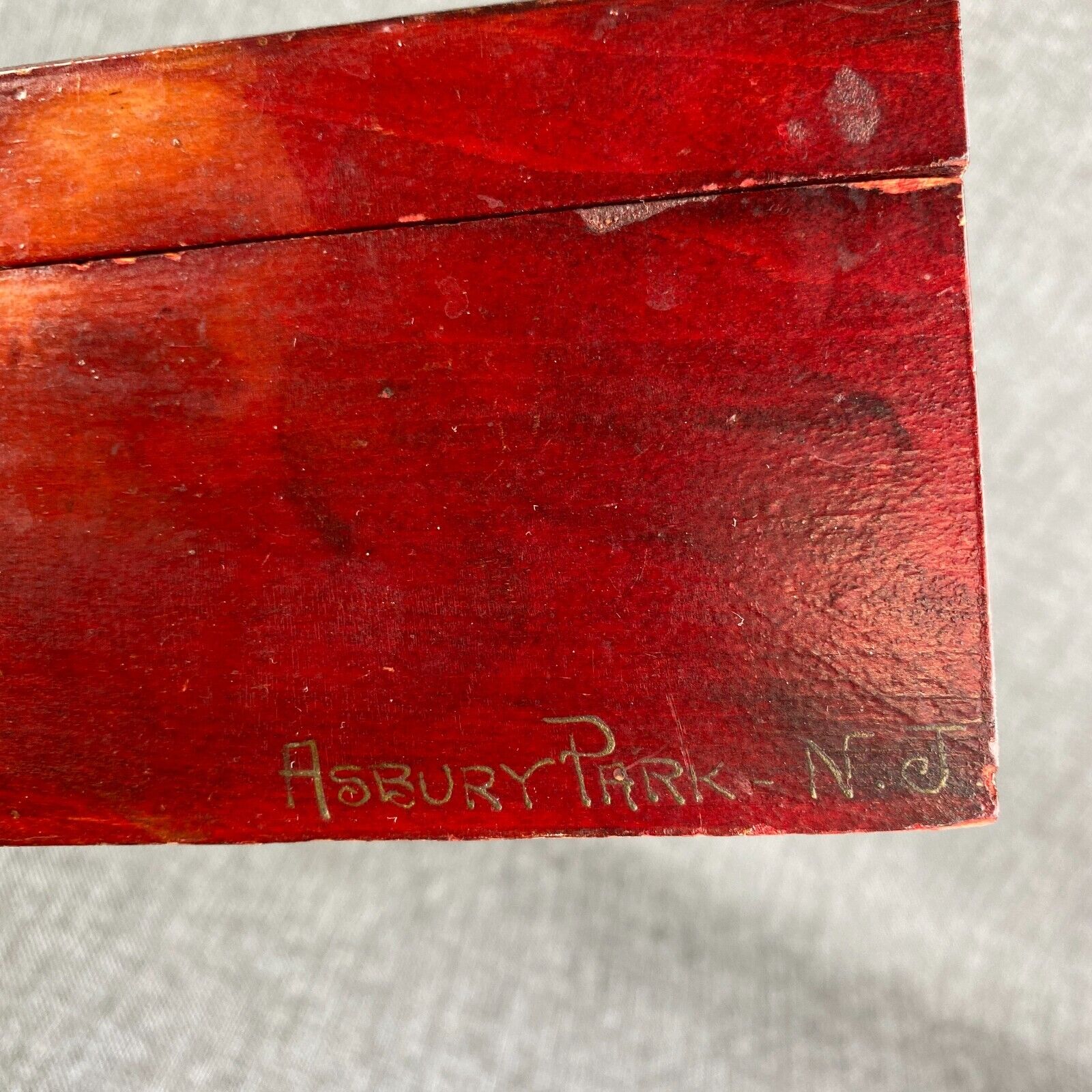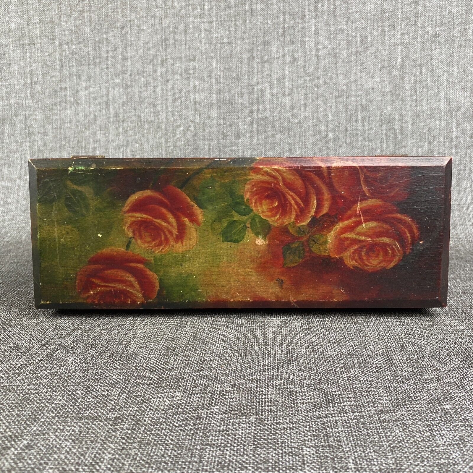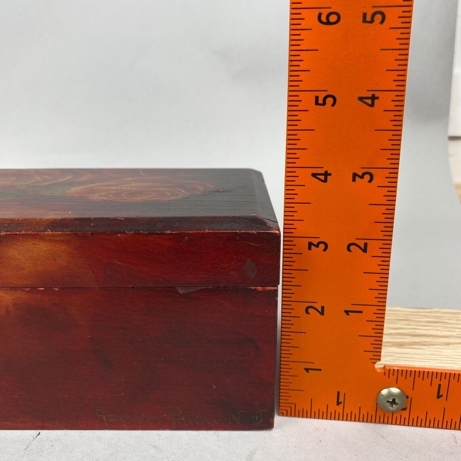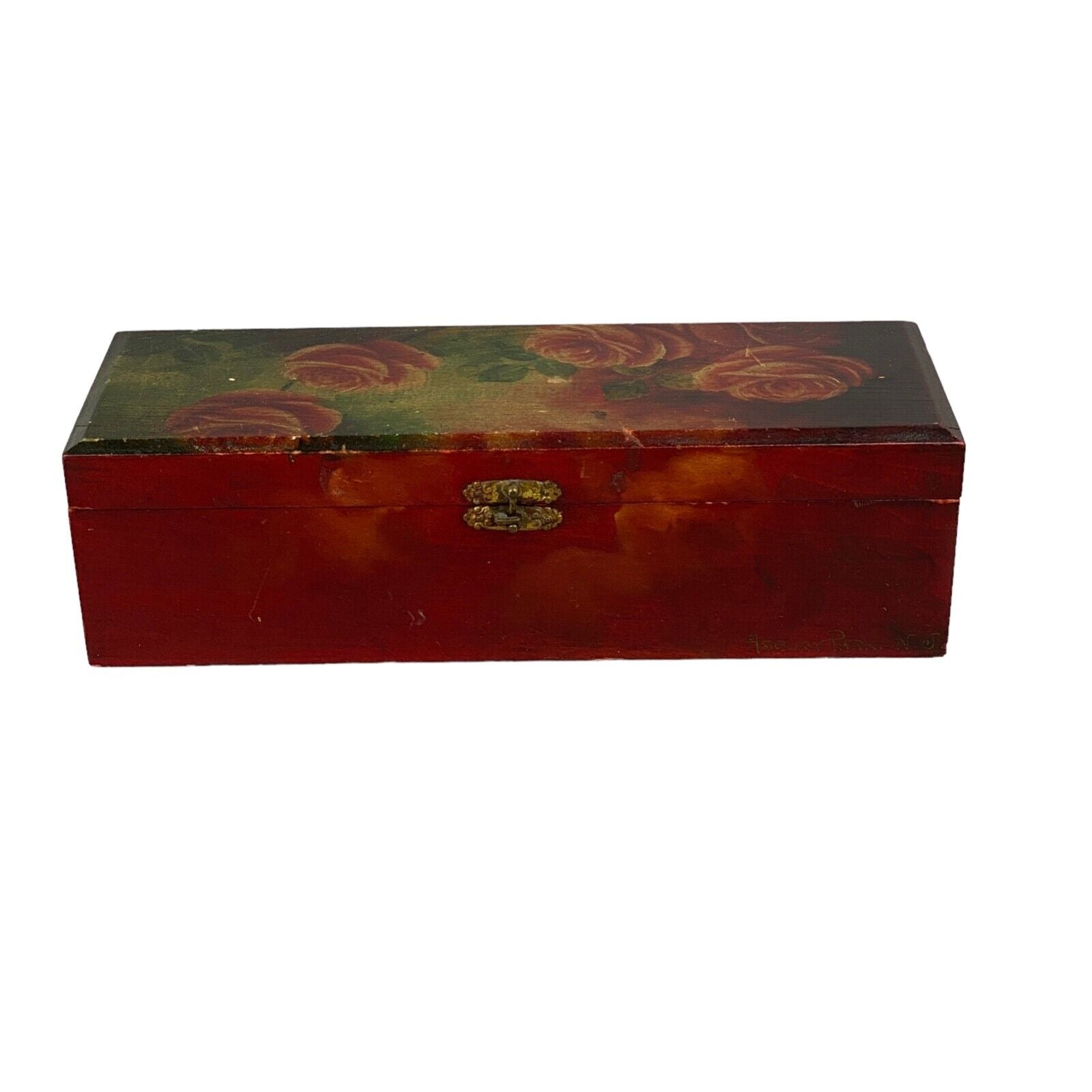 Antique Wood Hinged Jewelry Trinket Storage Letter Chest Hardware Red Paint