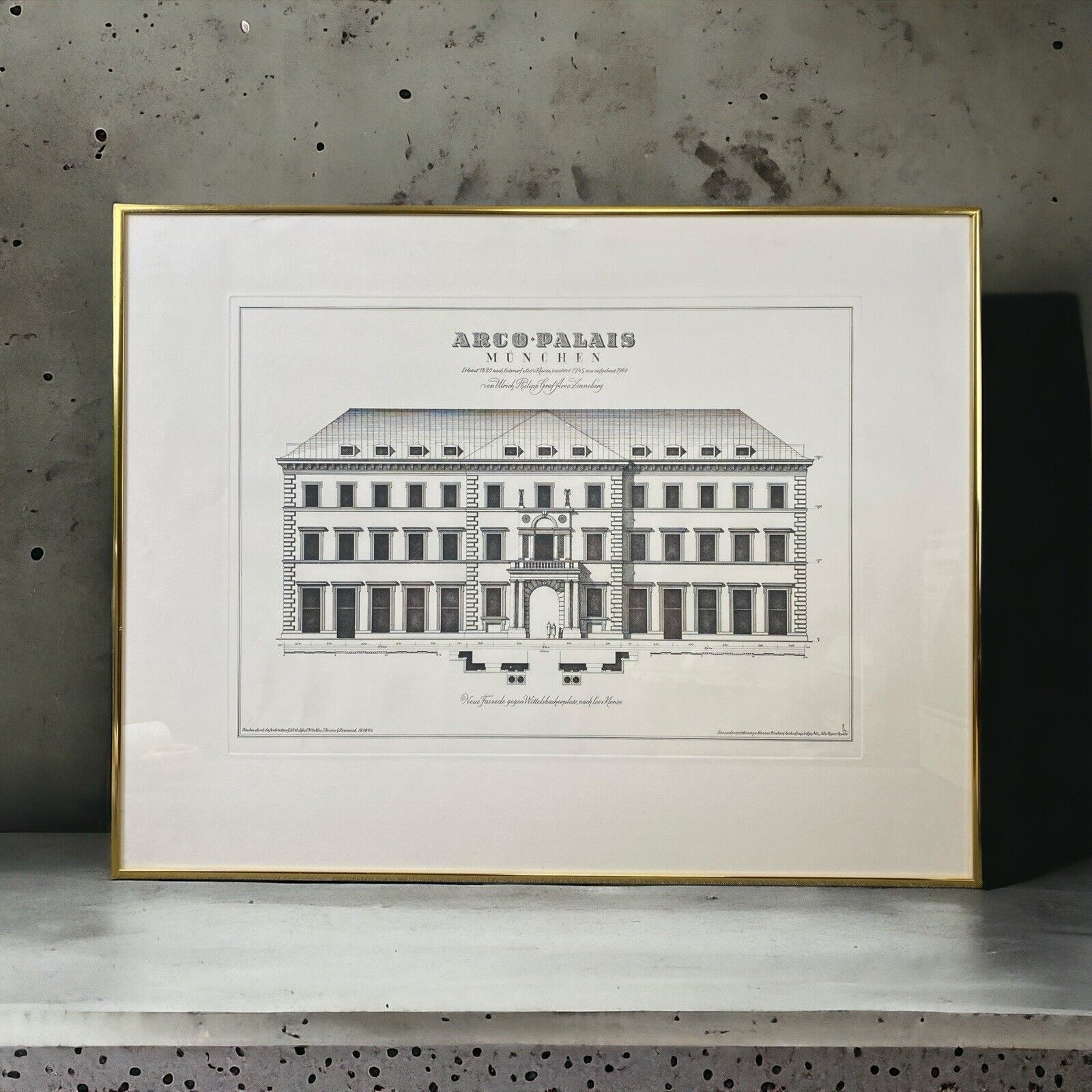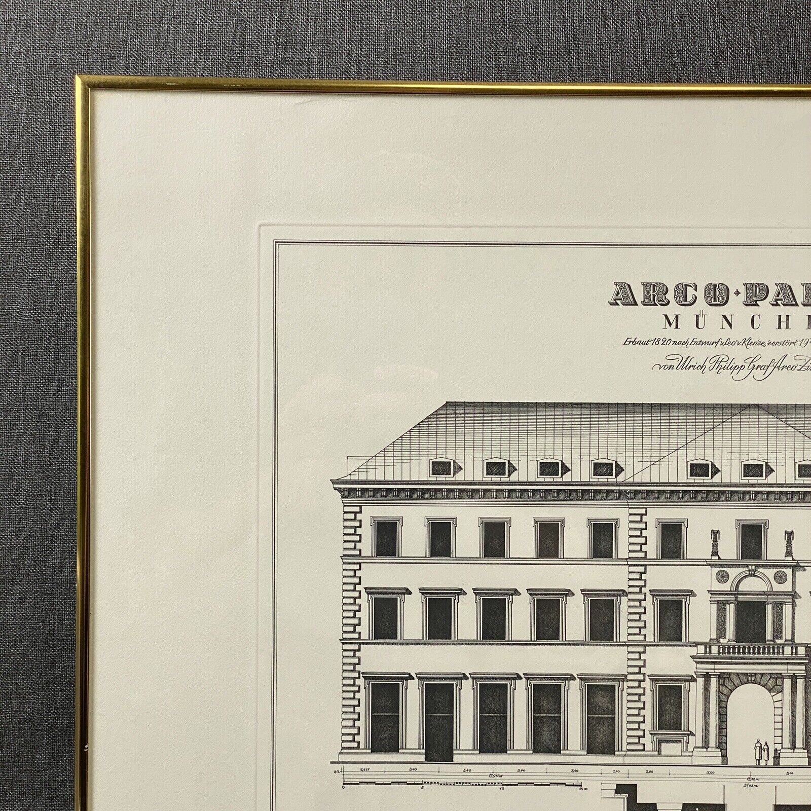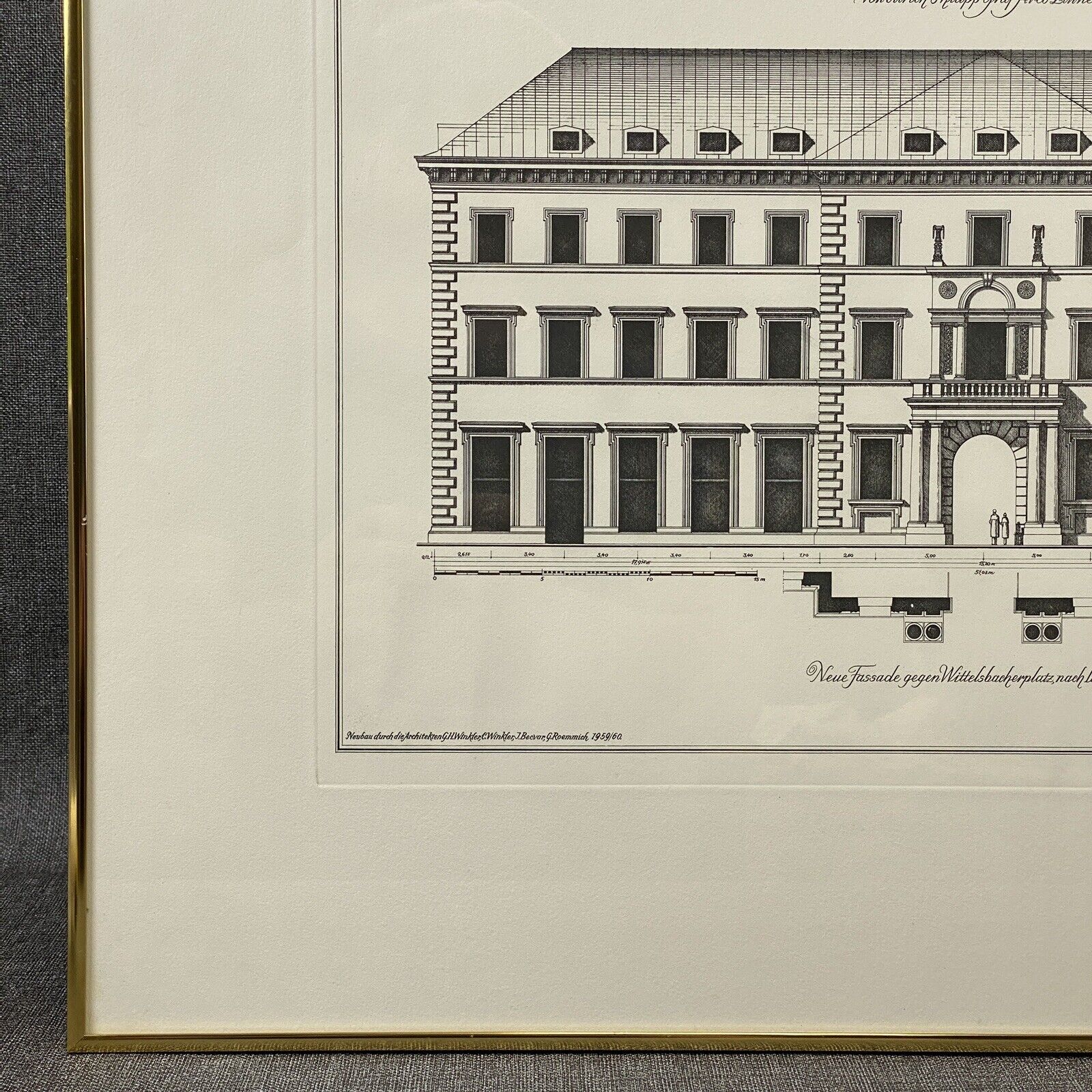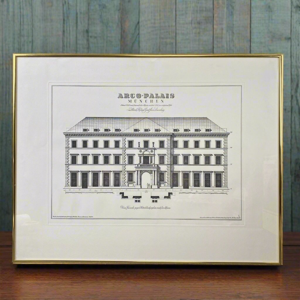 Arco Palais Munich Germany Building Engraving Framed 27"x21"