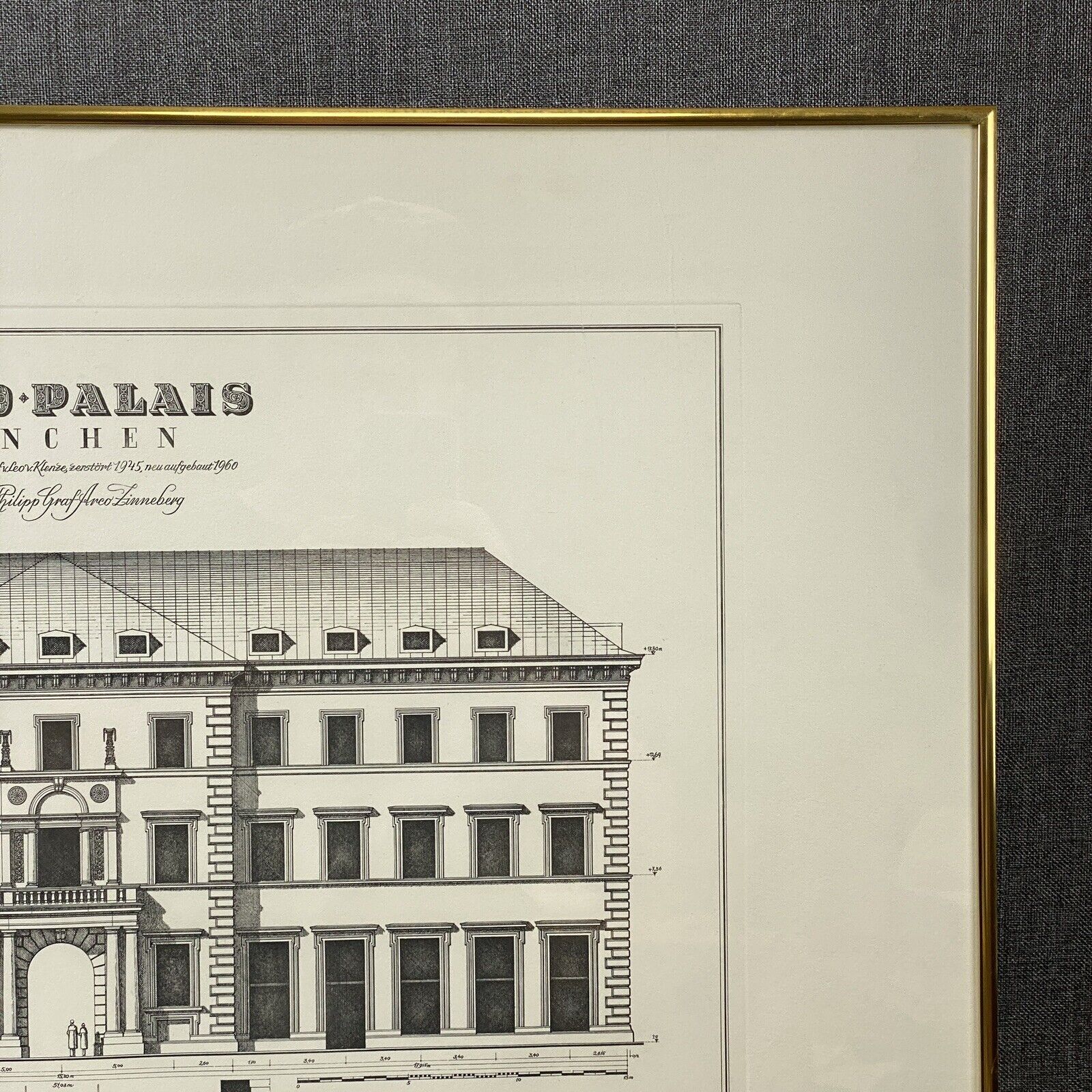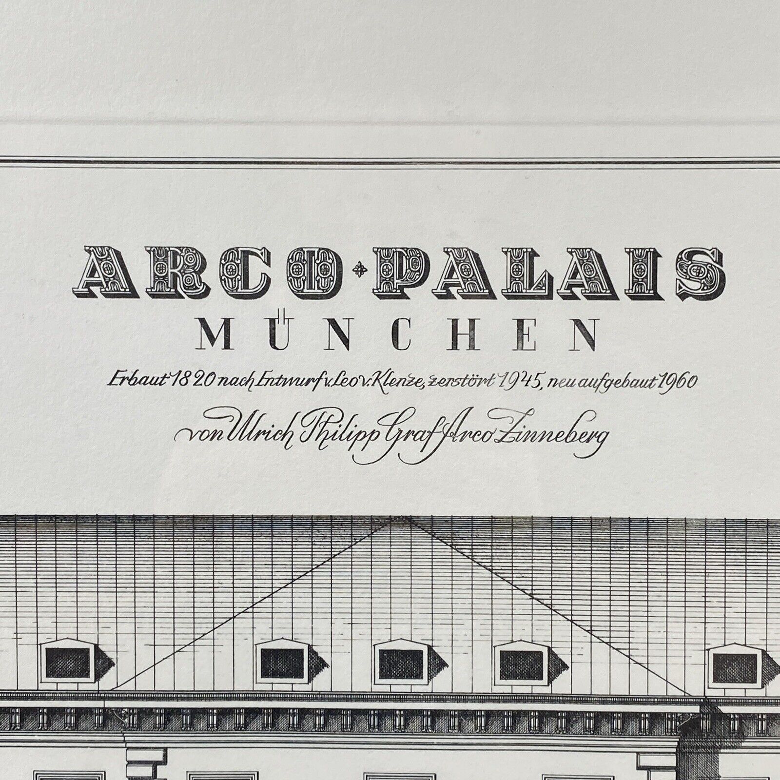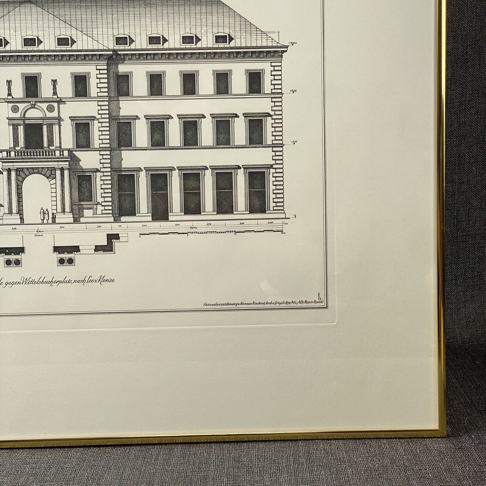 Arco Palais Munich Germany Building Engraving Framed 27"x21"