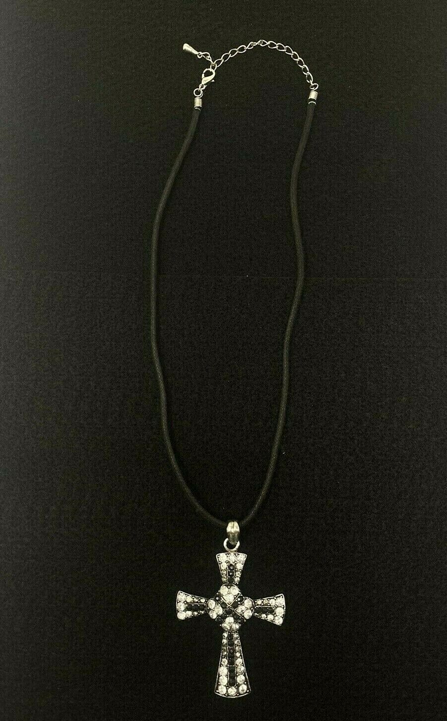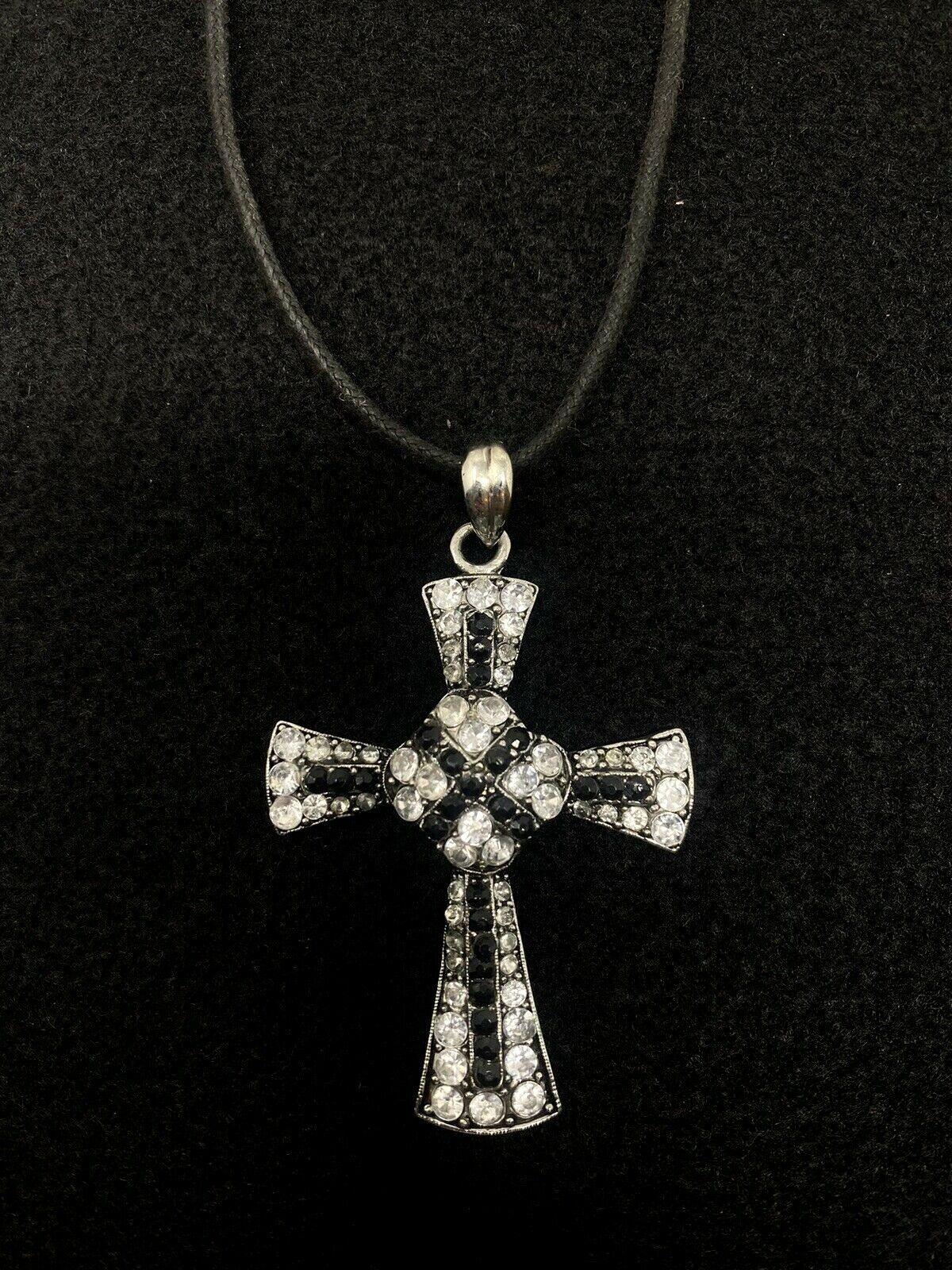 Black and White Style Faux Diamond and Jewel Cross Necklace