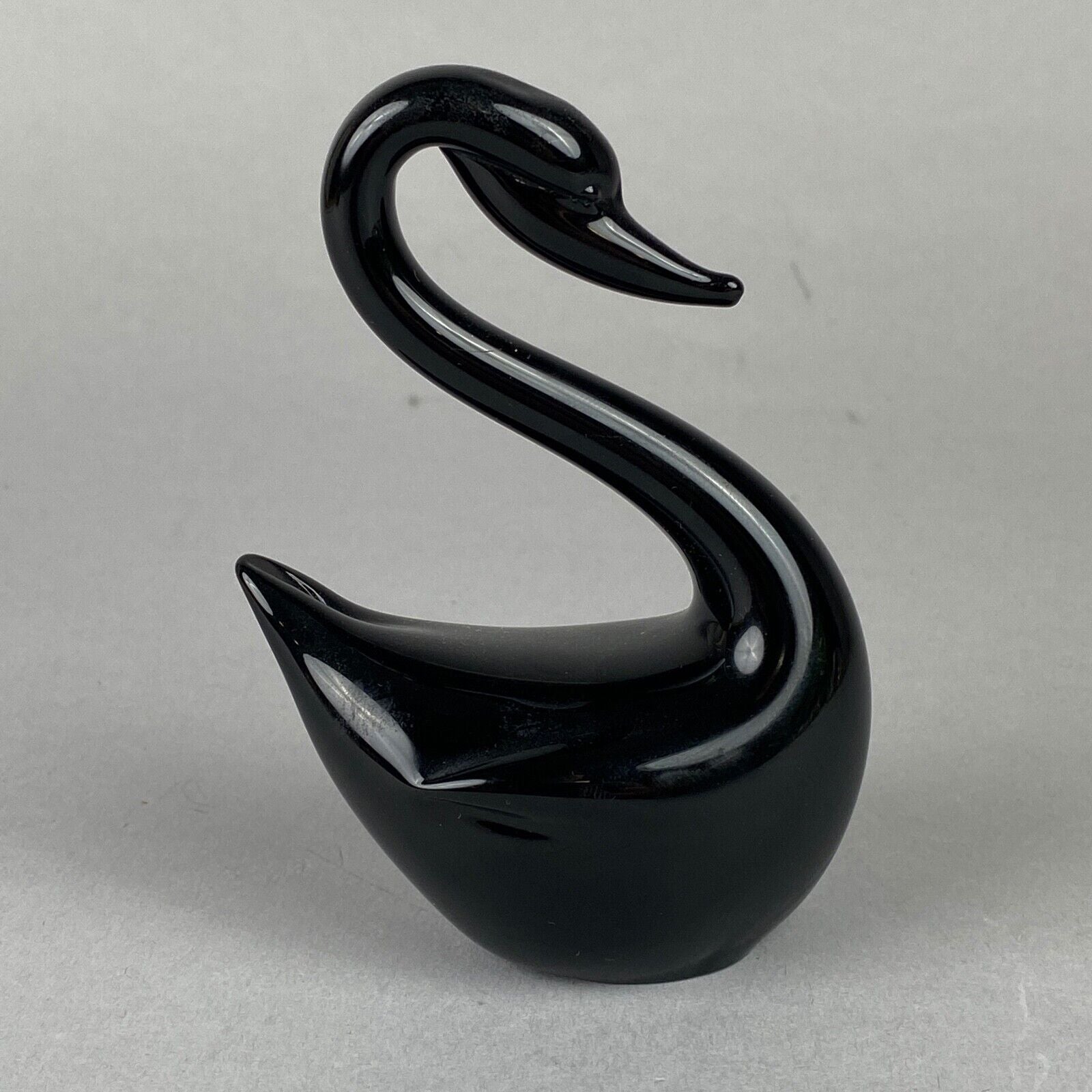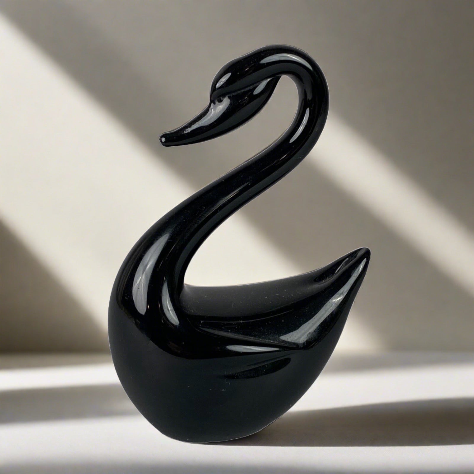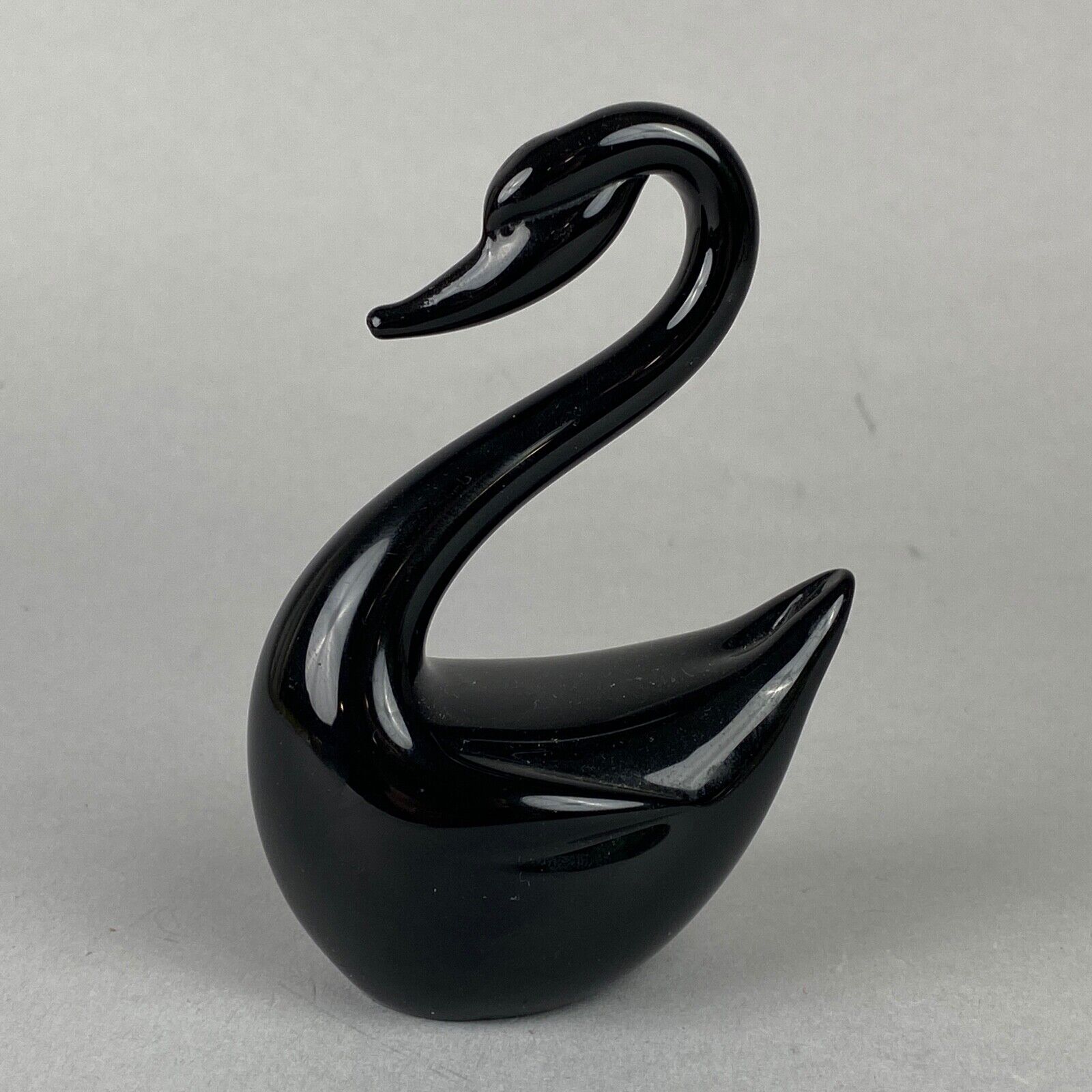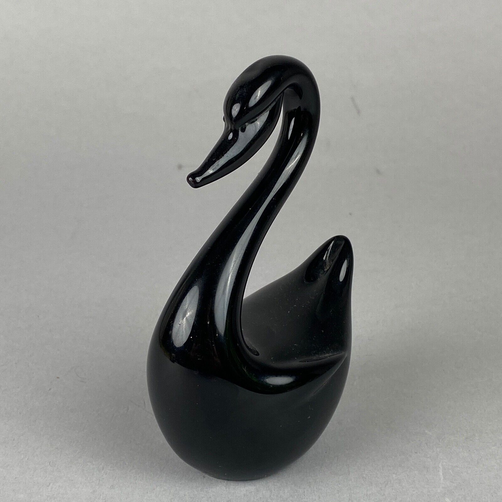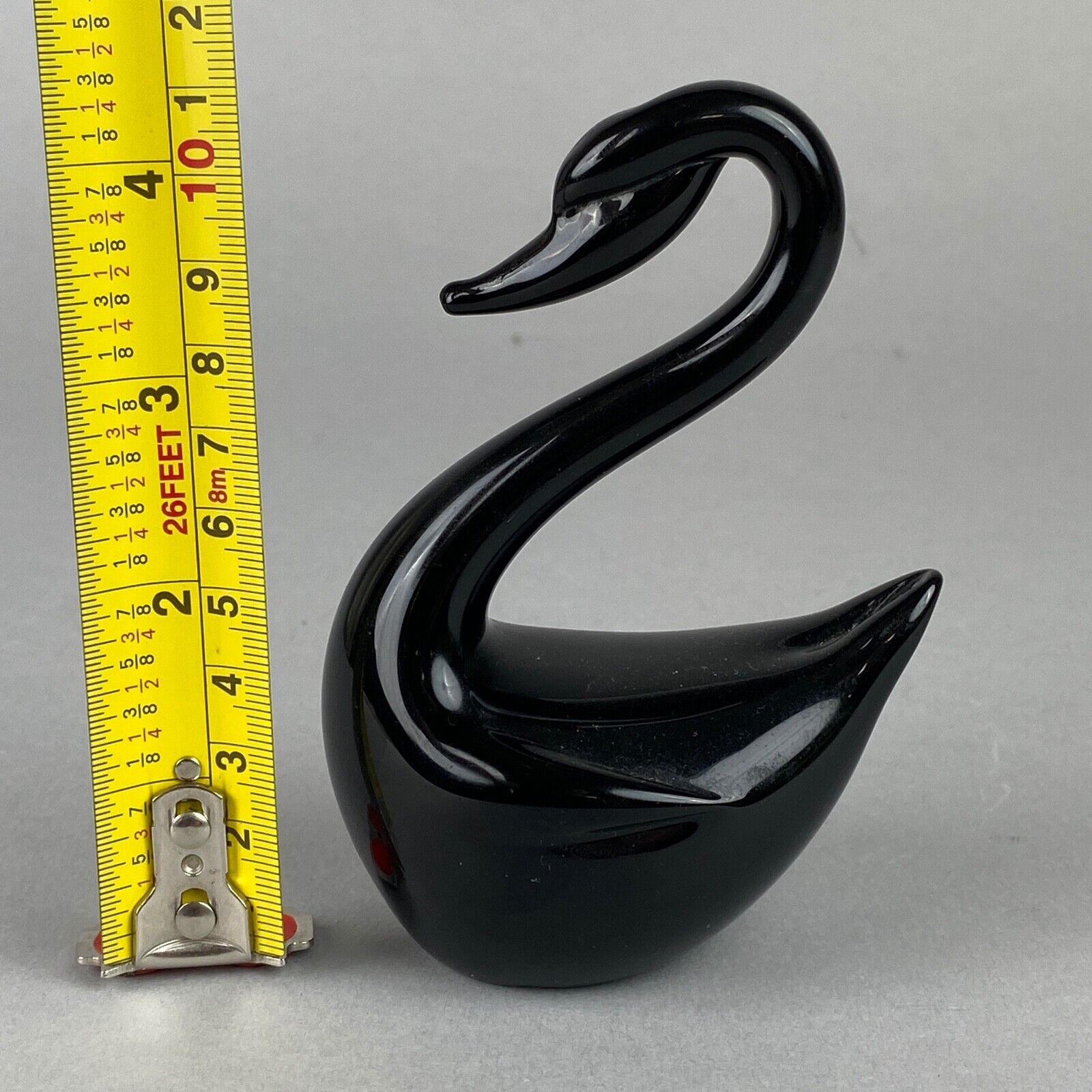 Black Glass Swan Decorative Sculpture, 4" tall,
