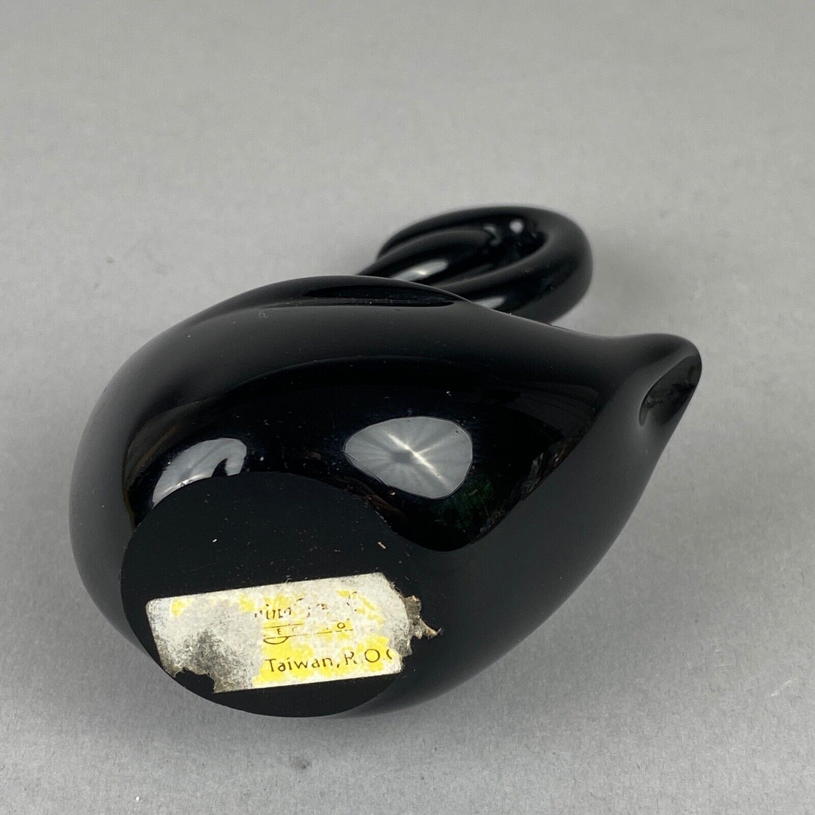 This decorative sculpture features a sleek black glass design and stands at a height of 4 inches. It is preowned and in good condition - visuals are available for further examination.