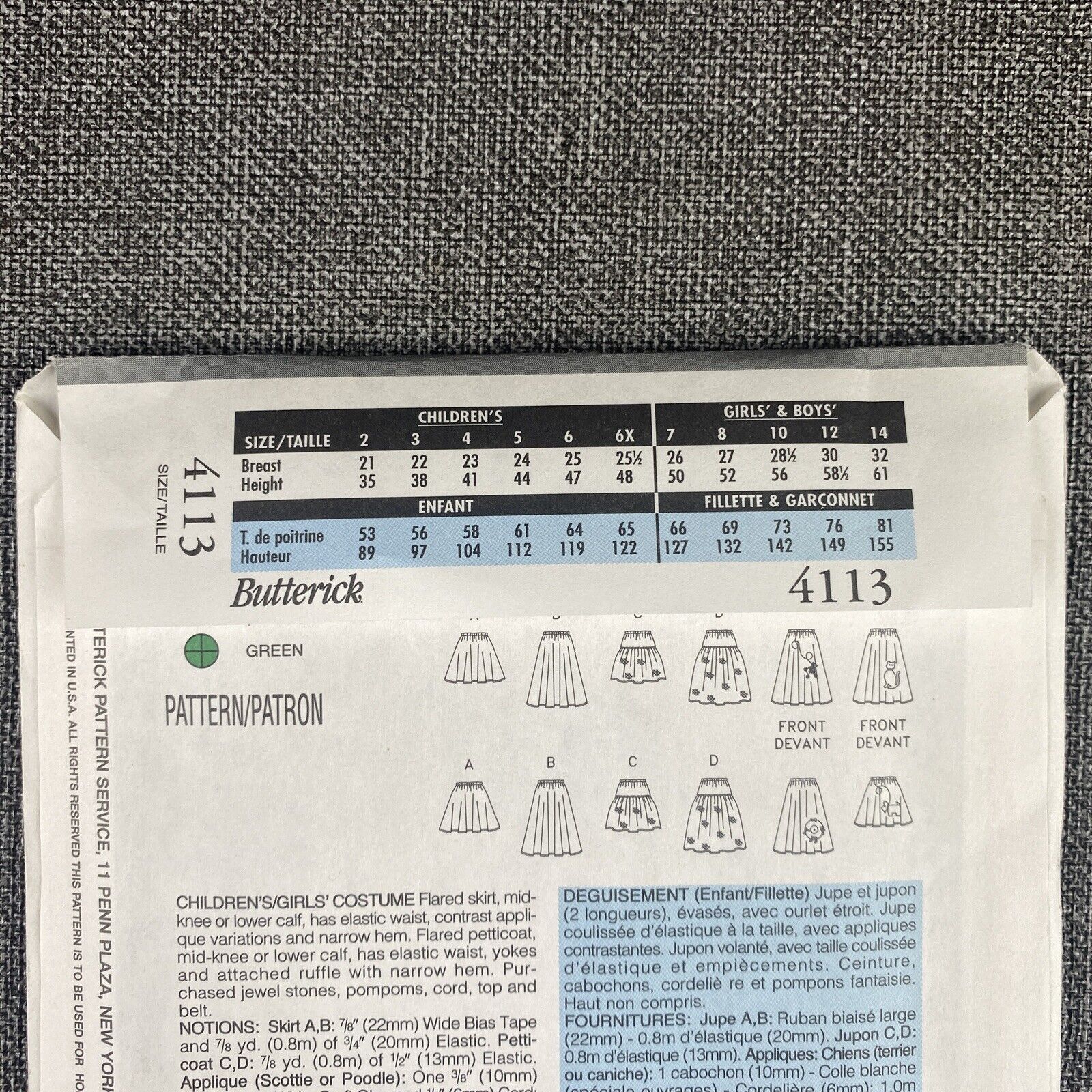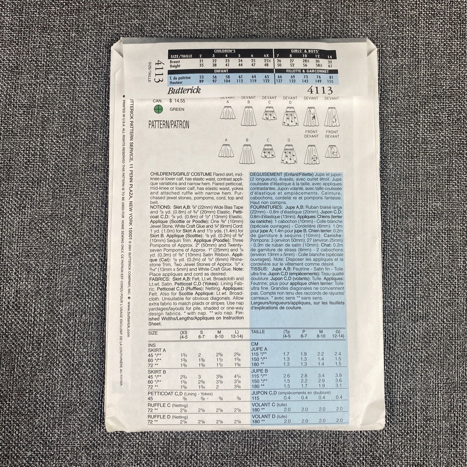 Butterick Pattern 4113 Uncut Childs Retro Poodle Skirt