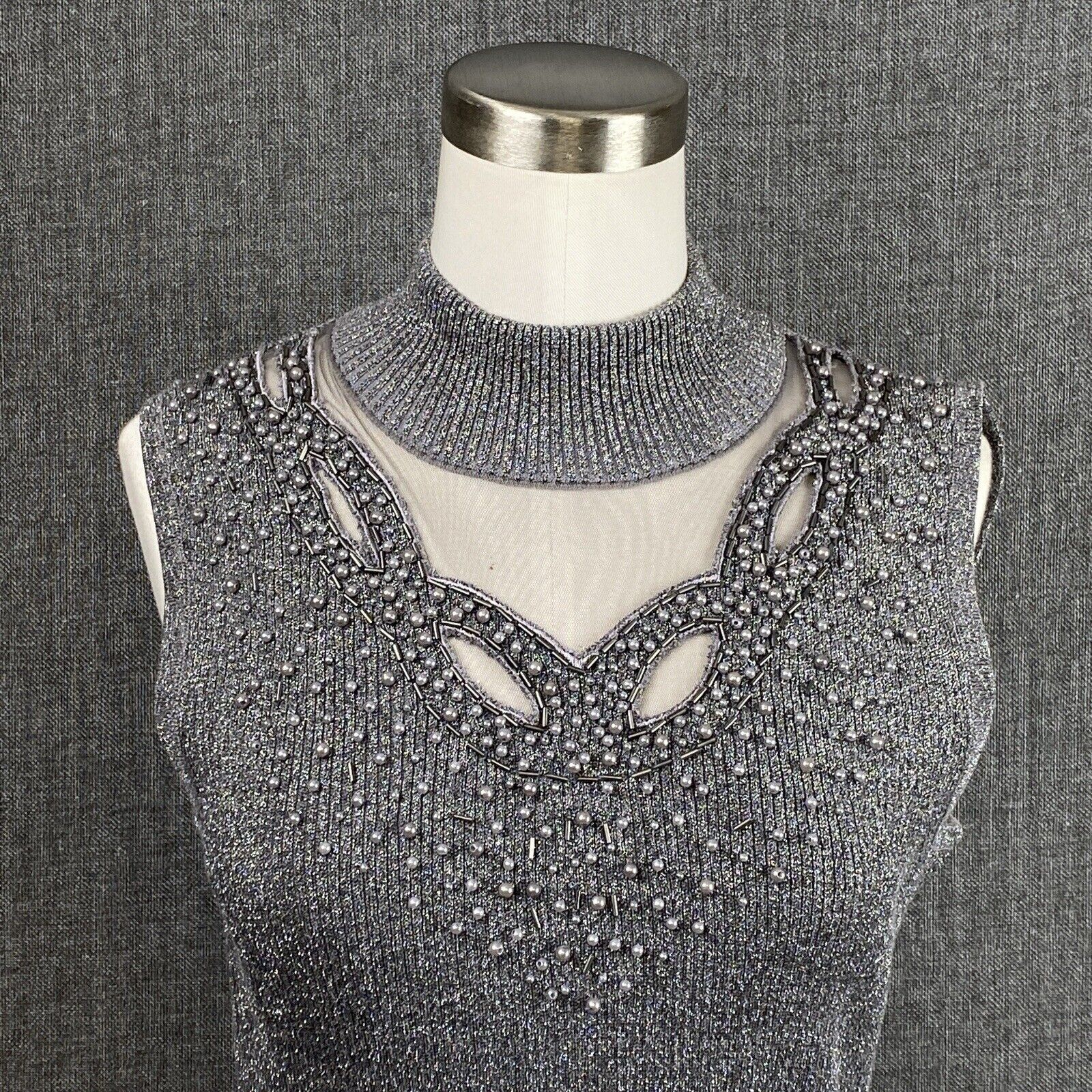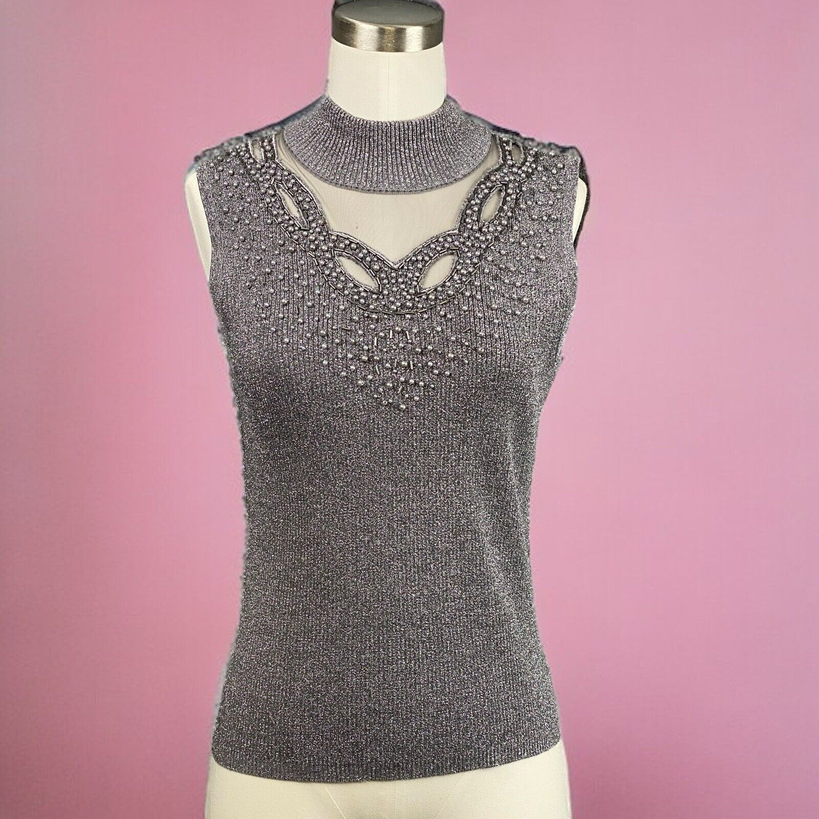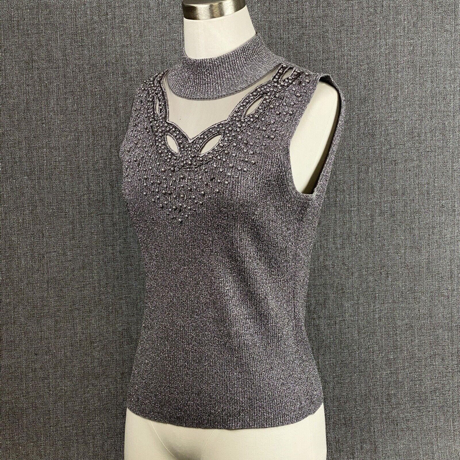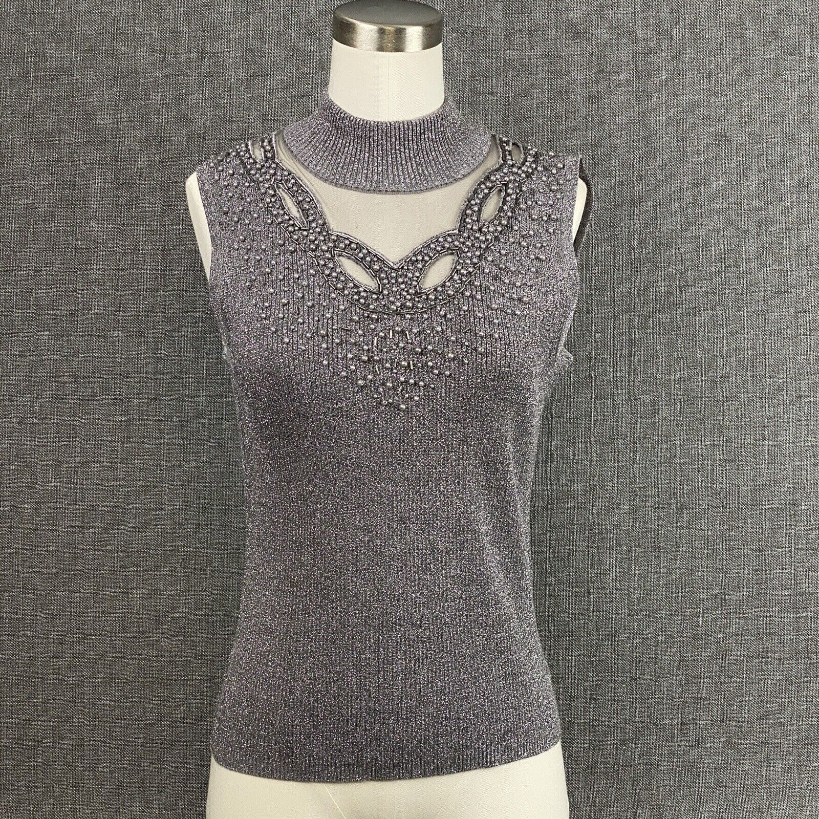 Cable & Gauge Petite Silver Metallic Sleeveless Silk Blend Beaded Size PM