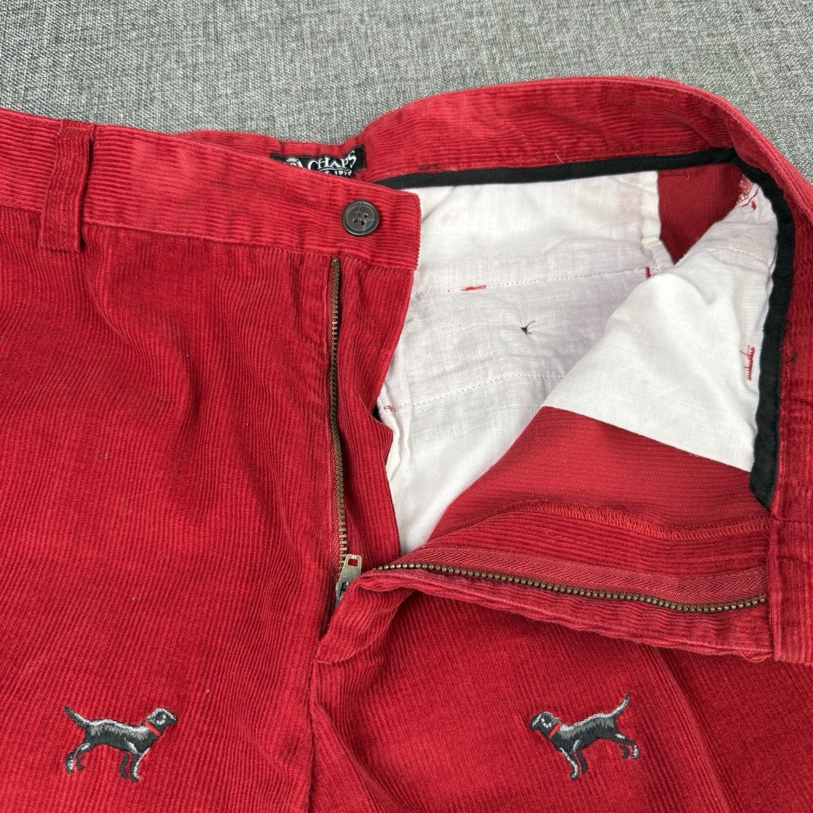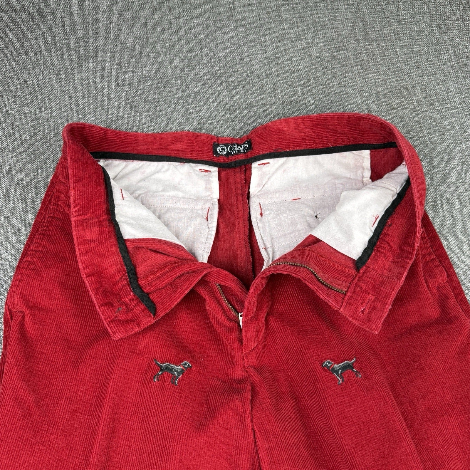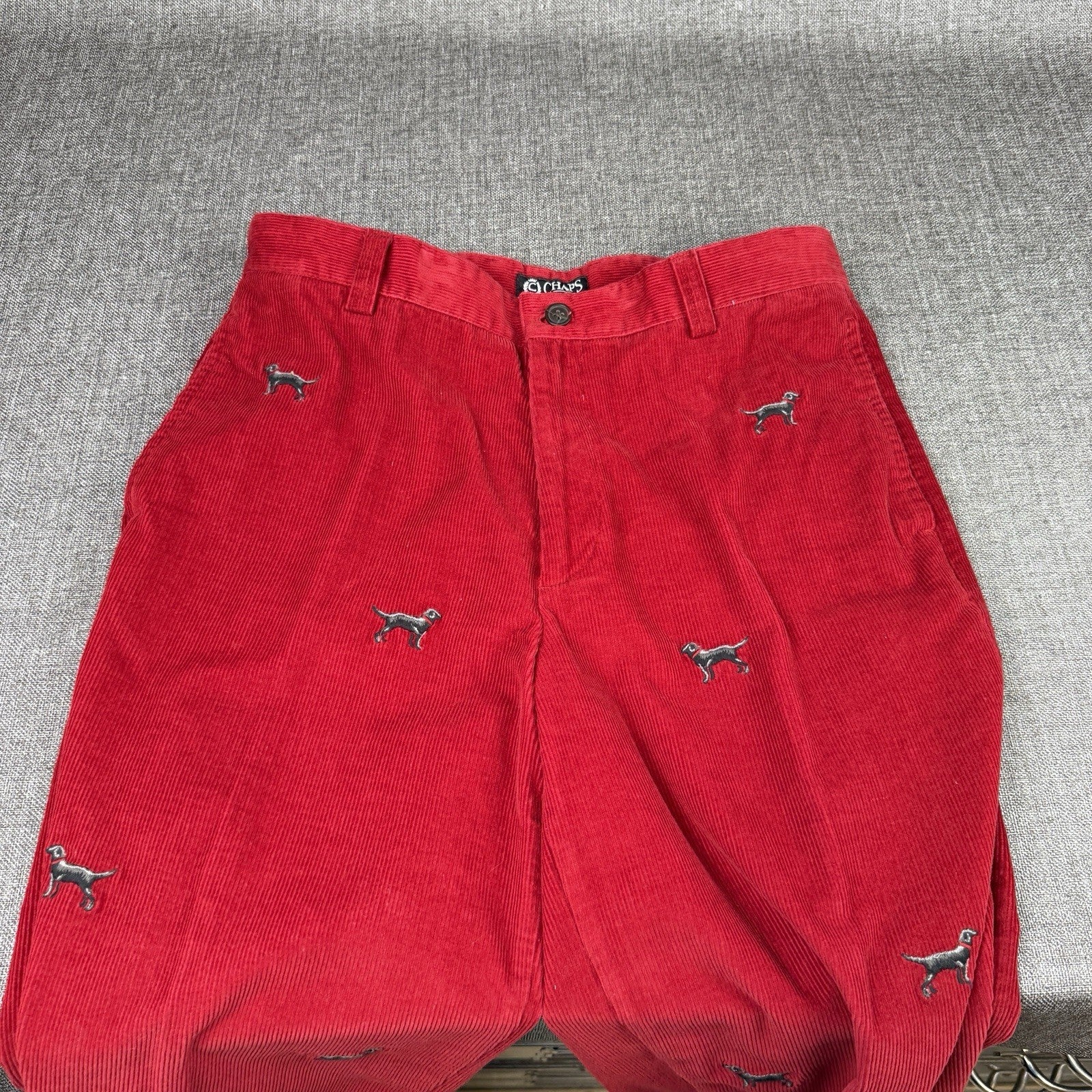 Chaps Ralph Lauren Corduroy Pants Women's 32" x 26" Dog Black Lab Embroidered