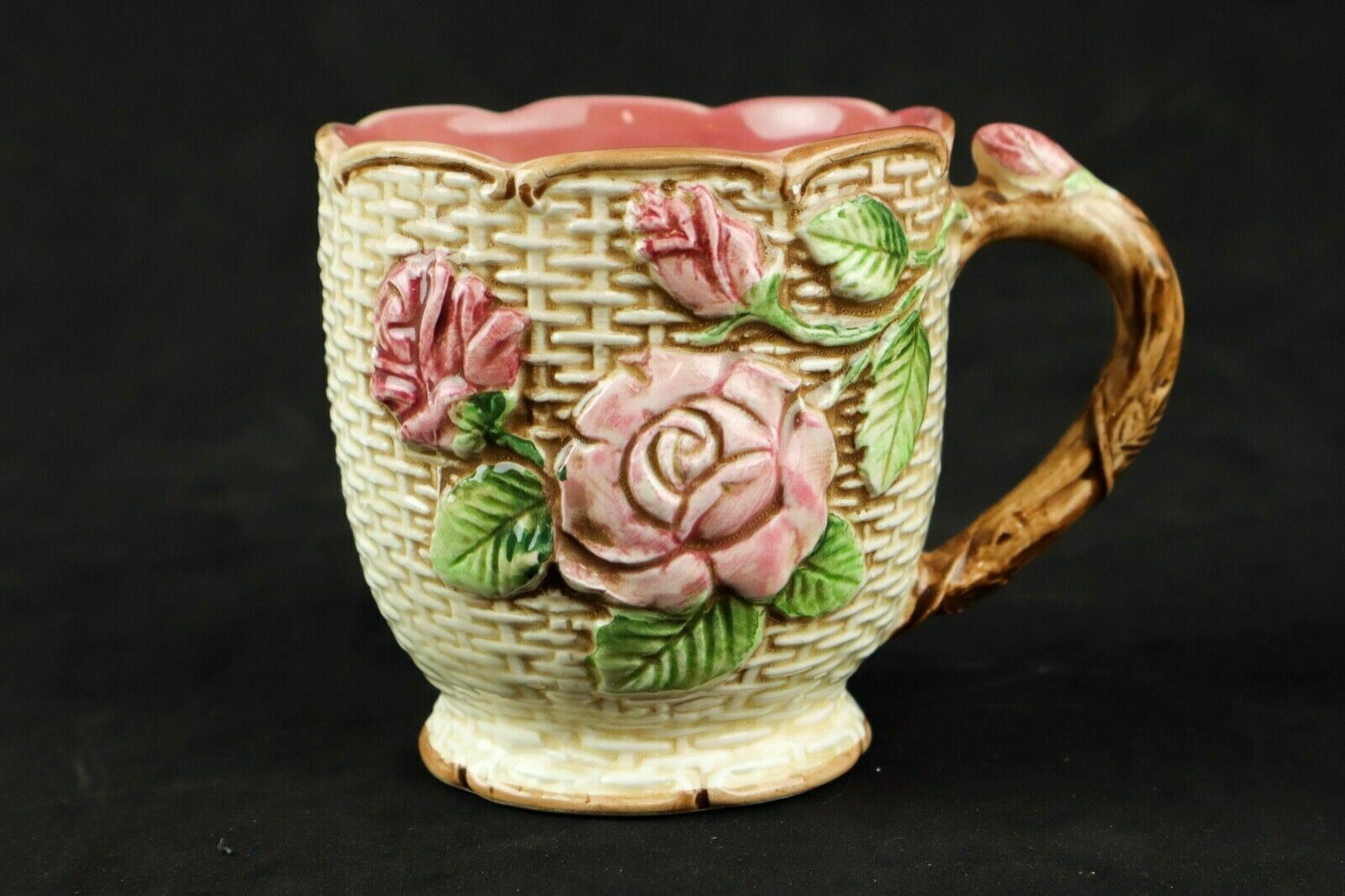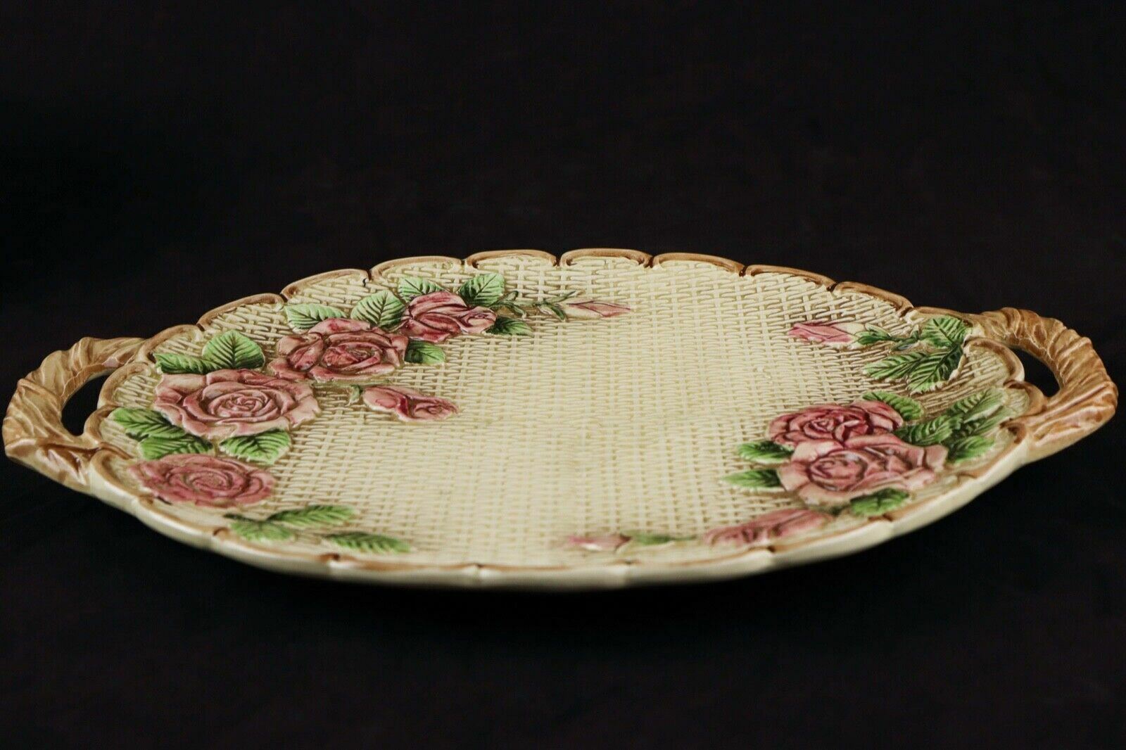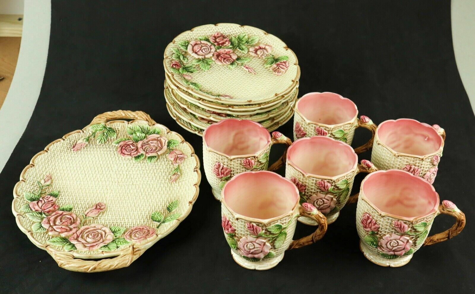 Collectible Majolica Takahashi San Francisco Cups, Dessert Plates &Tray (Flower)