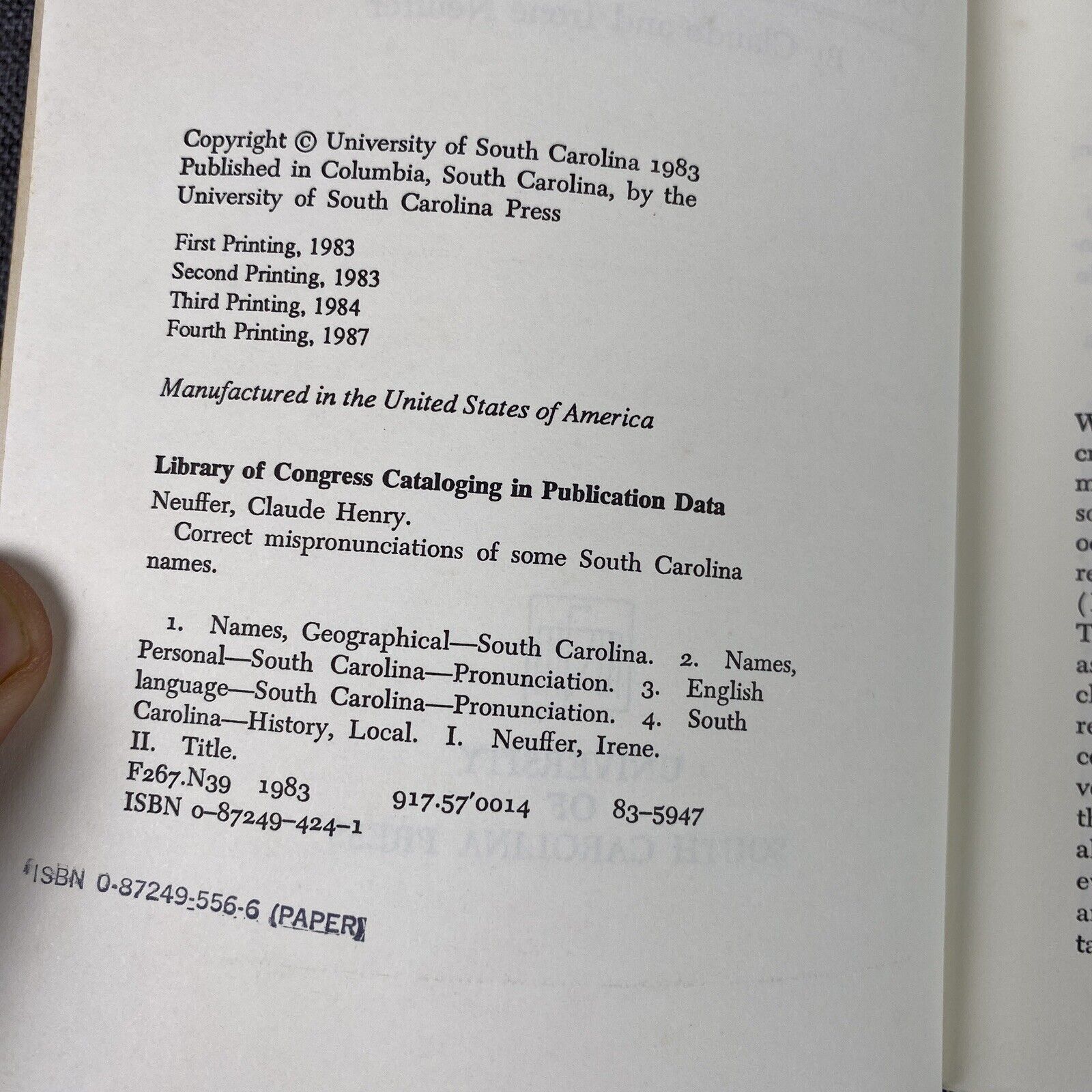 Correct Mispronunciations of Some South Carolina Names Claude And Irene Neuffer