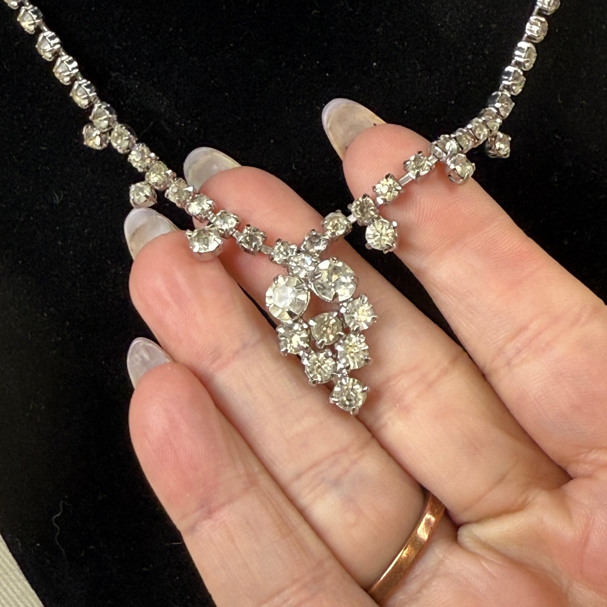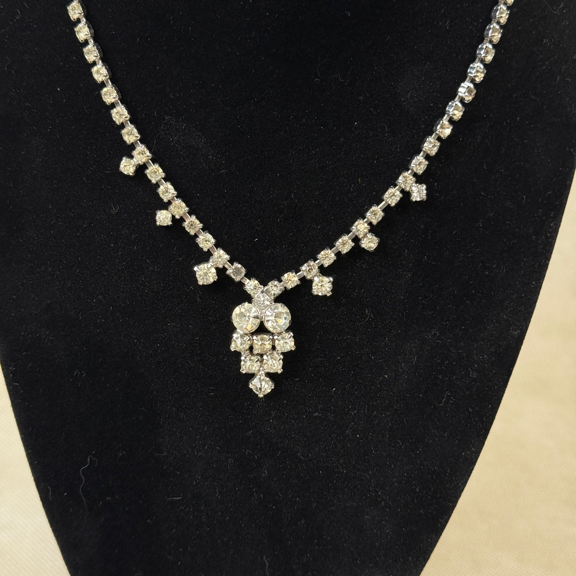 14.5-inch Costume Rhinestone Necklace, designed to add a dazzling touch to any outfit. Its sparkling rhinestones catch the light beautifully, making it perfect for special occasions or everyday glamour. Lightweight and comfortable