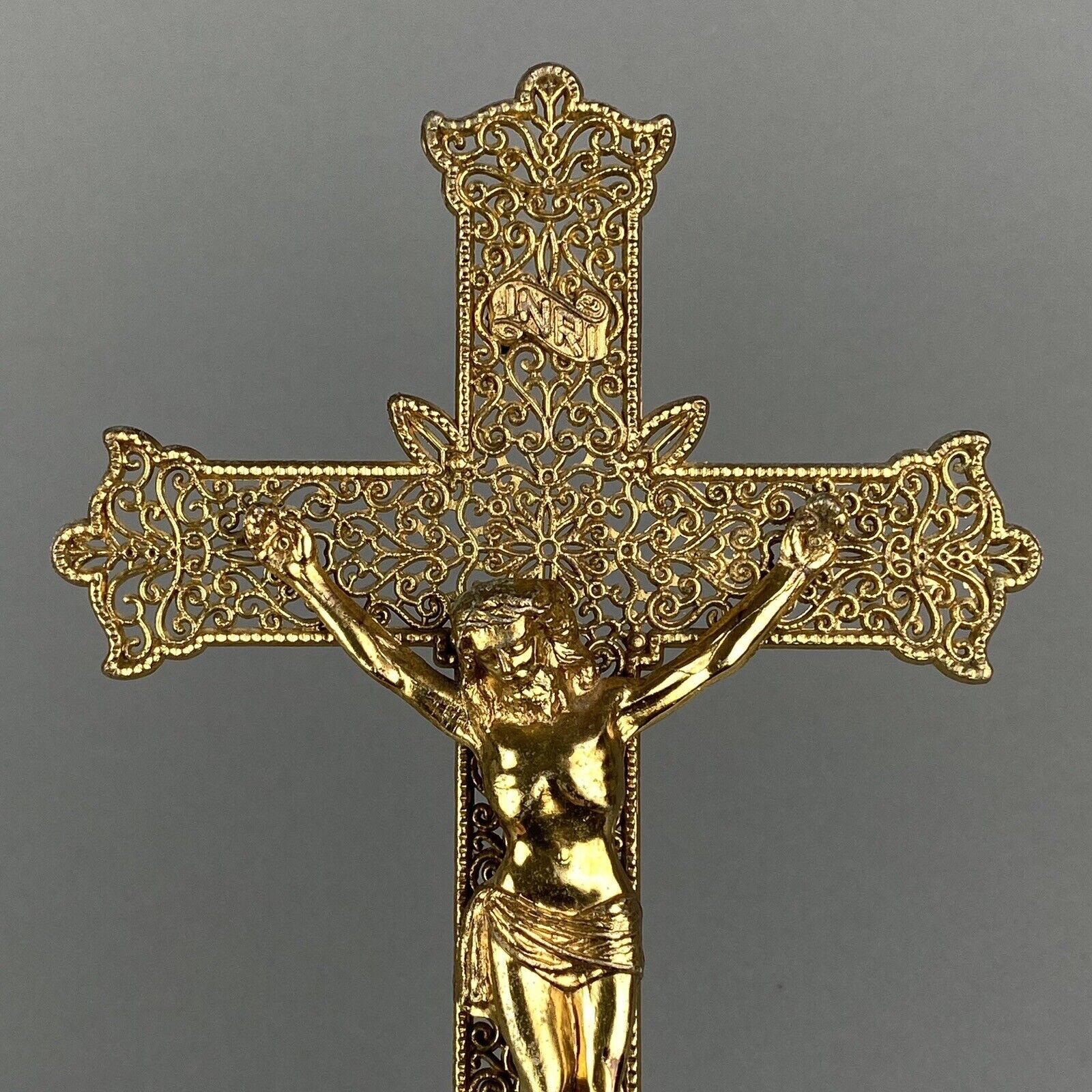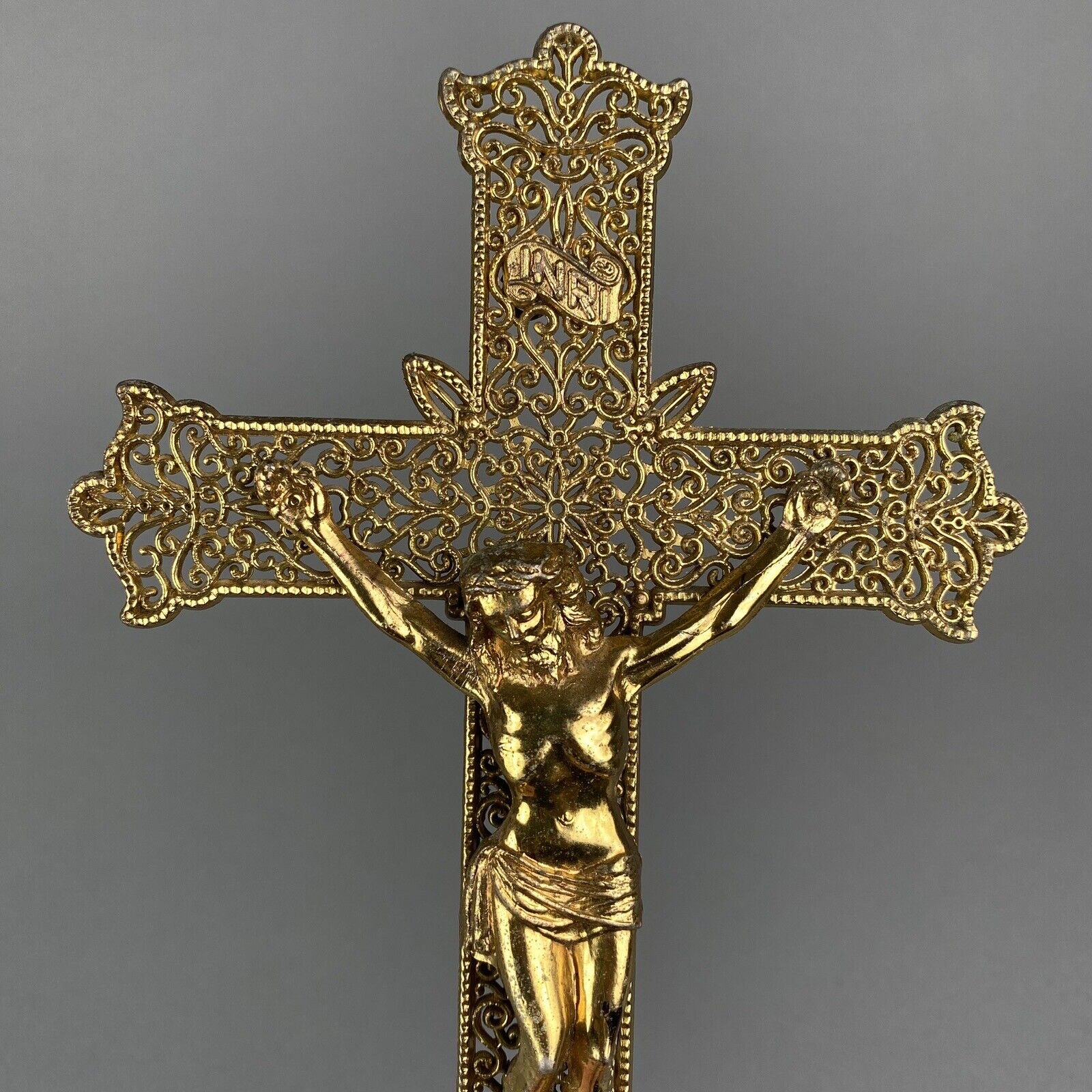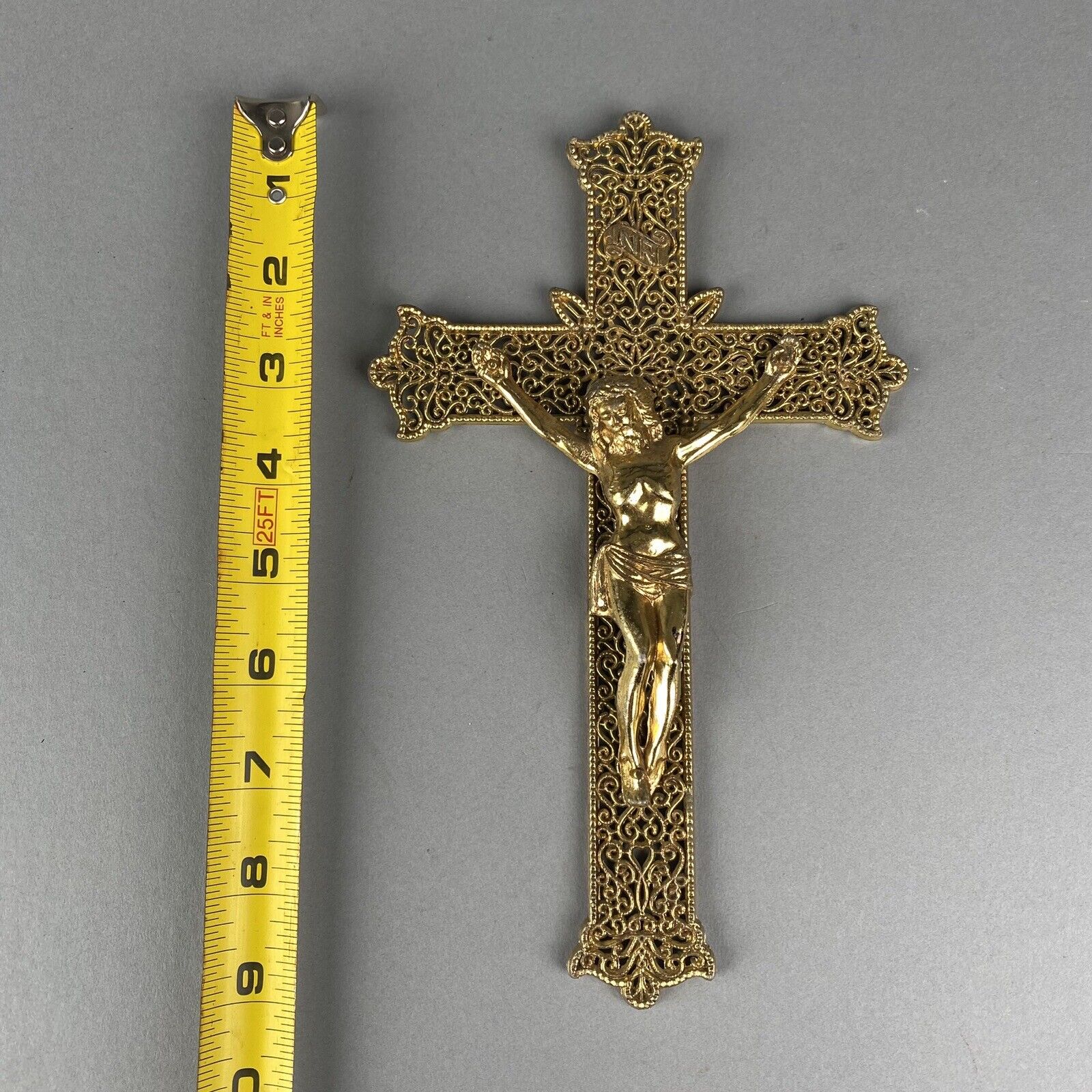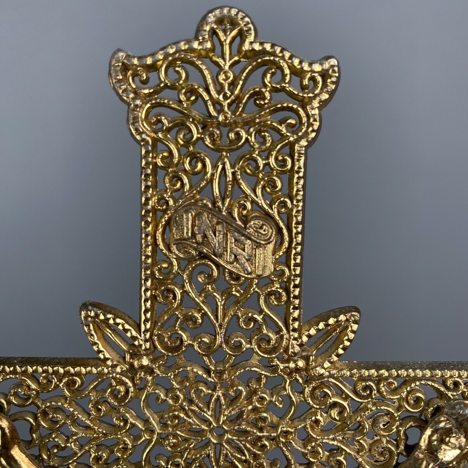 Crucifix Jesus Catholic Cross INRISolid Brass Gold-Tone Filigree Wall Decor 9”