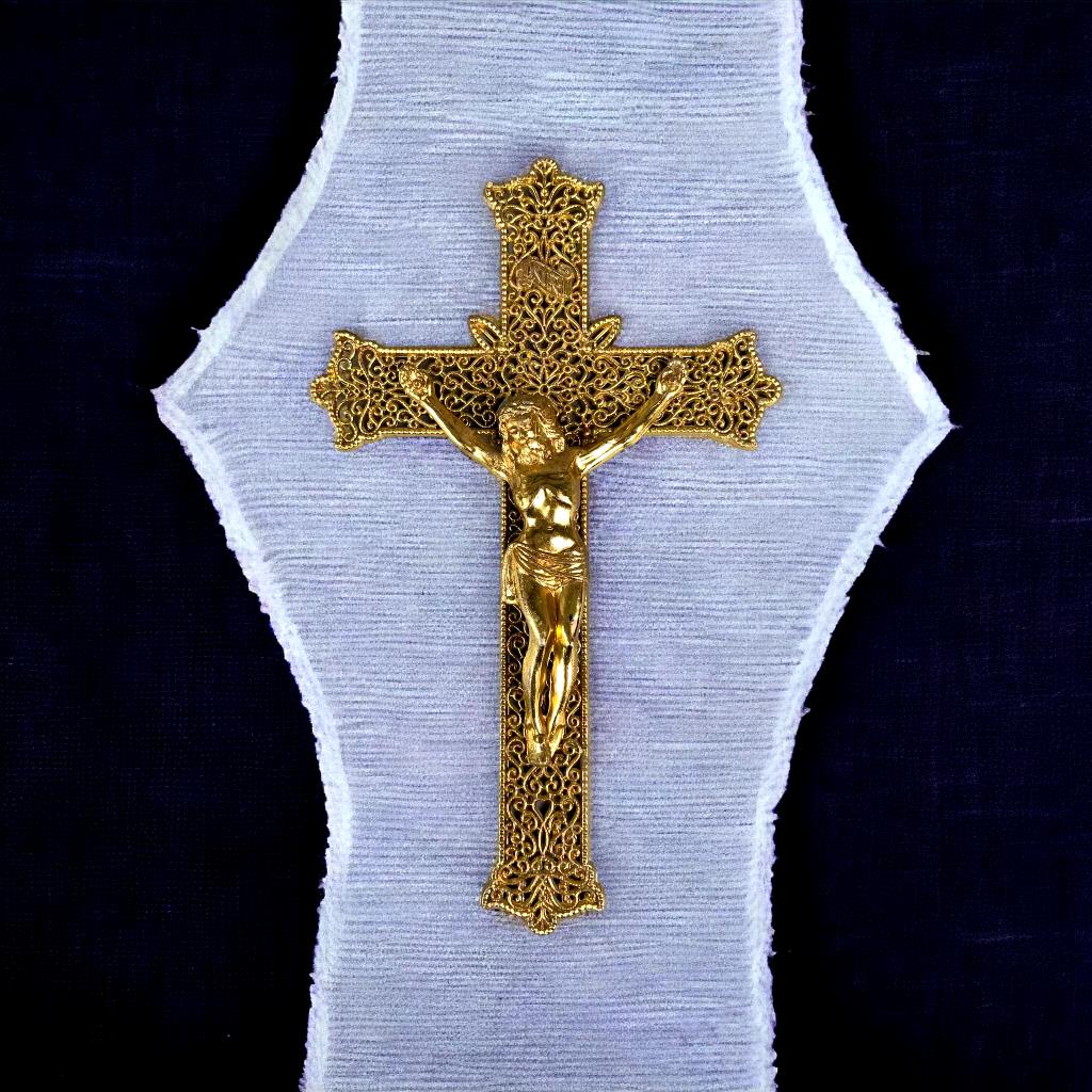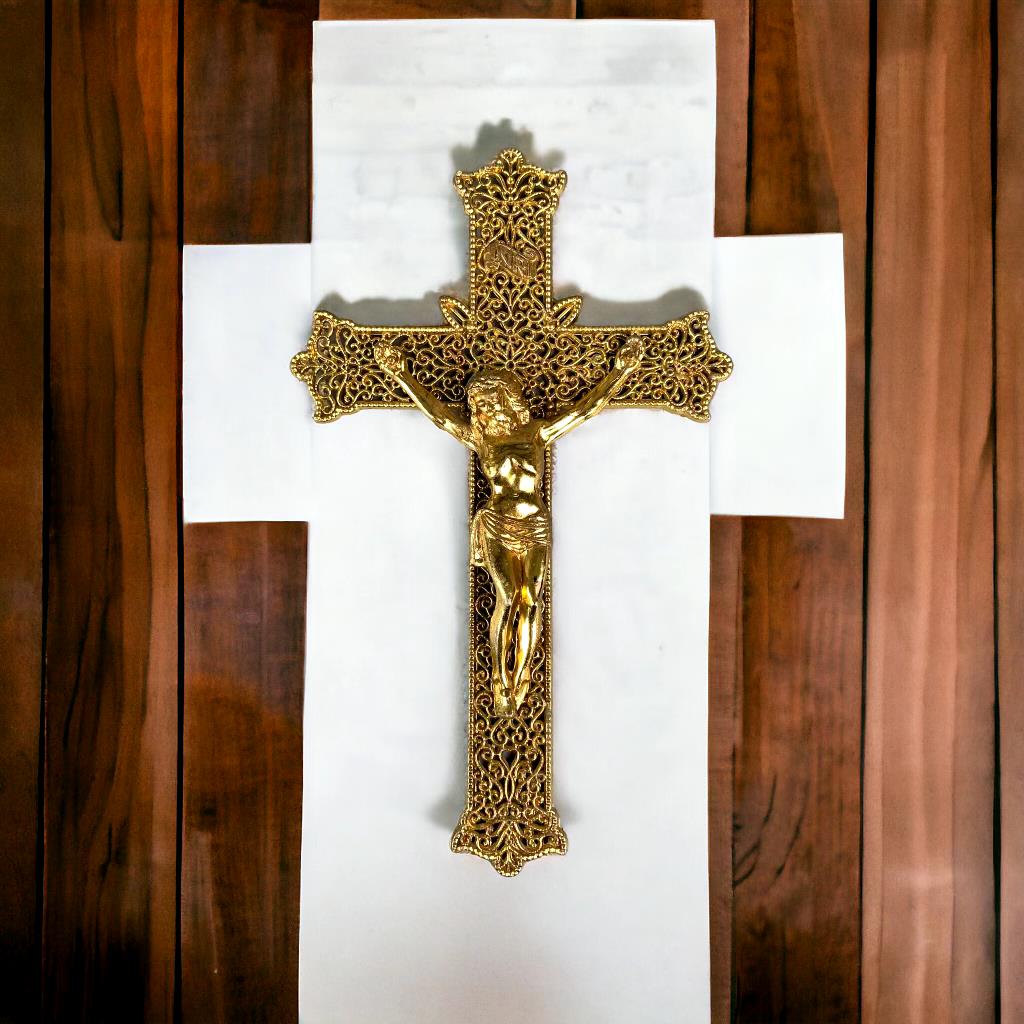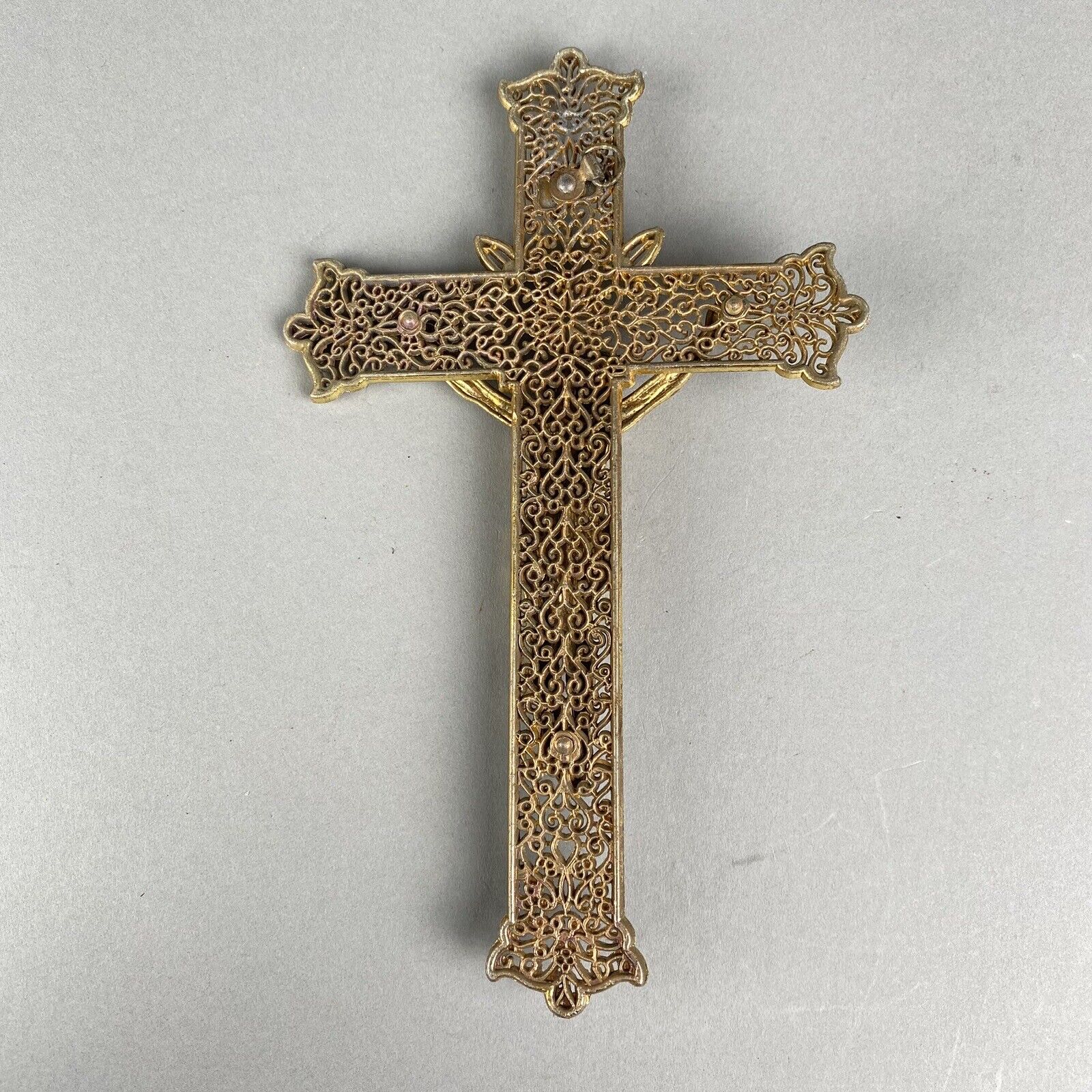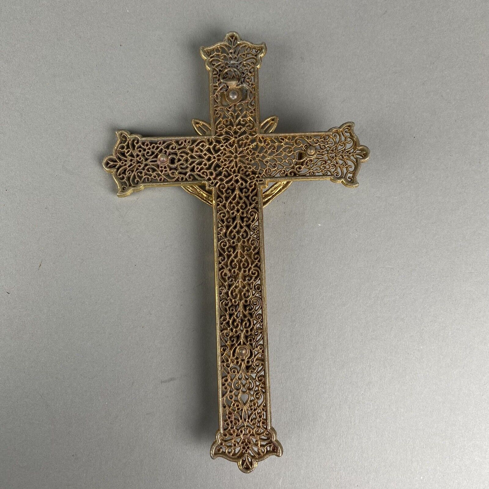 Crucifix Jesus Catholic Cross INRISolid Brass Gold-Tone Filigree Wall Decor 9”