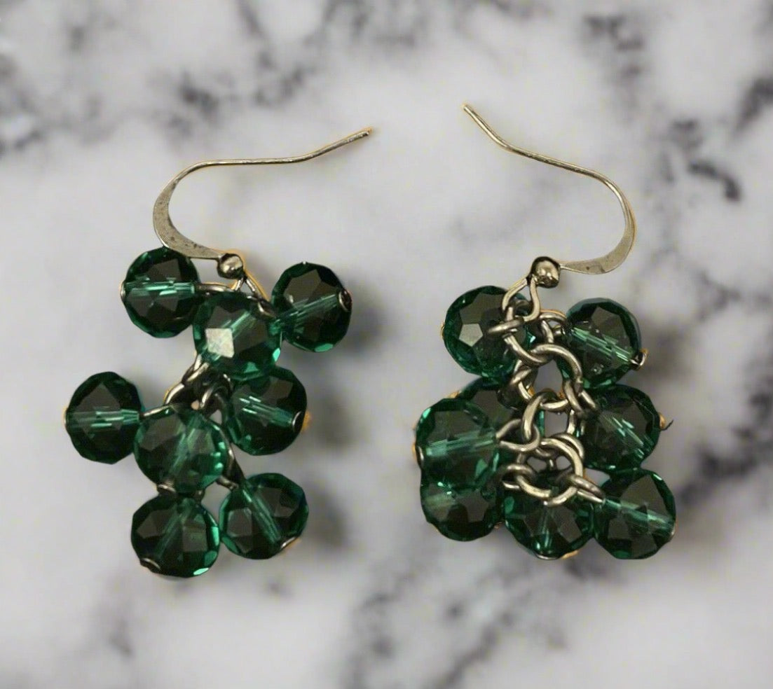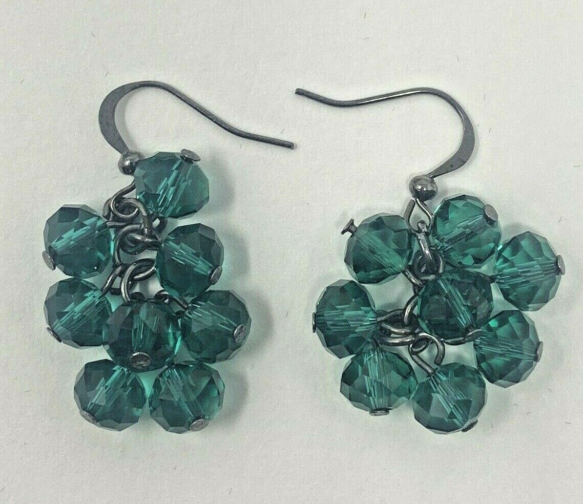 Faceted Saucer Teal Beaded Dangle / Drop Earrings
