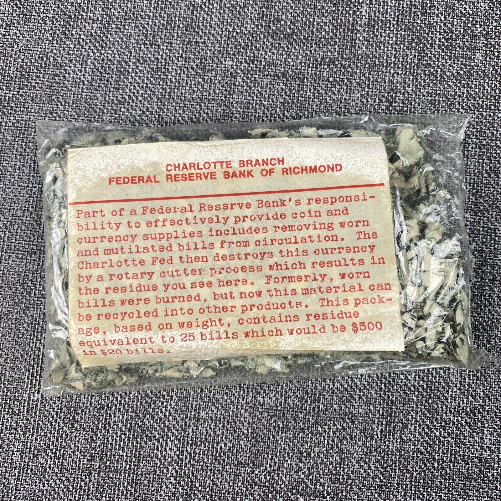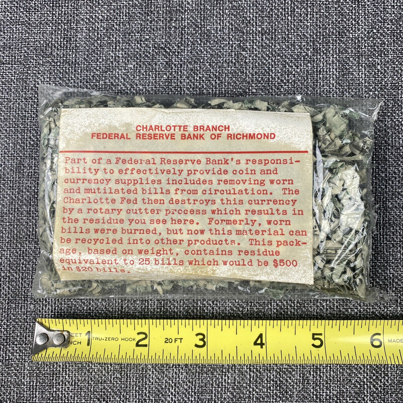 Federal Reserve Bank of Richmond Charlotte NC Branch Real Shredded Currency