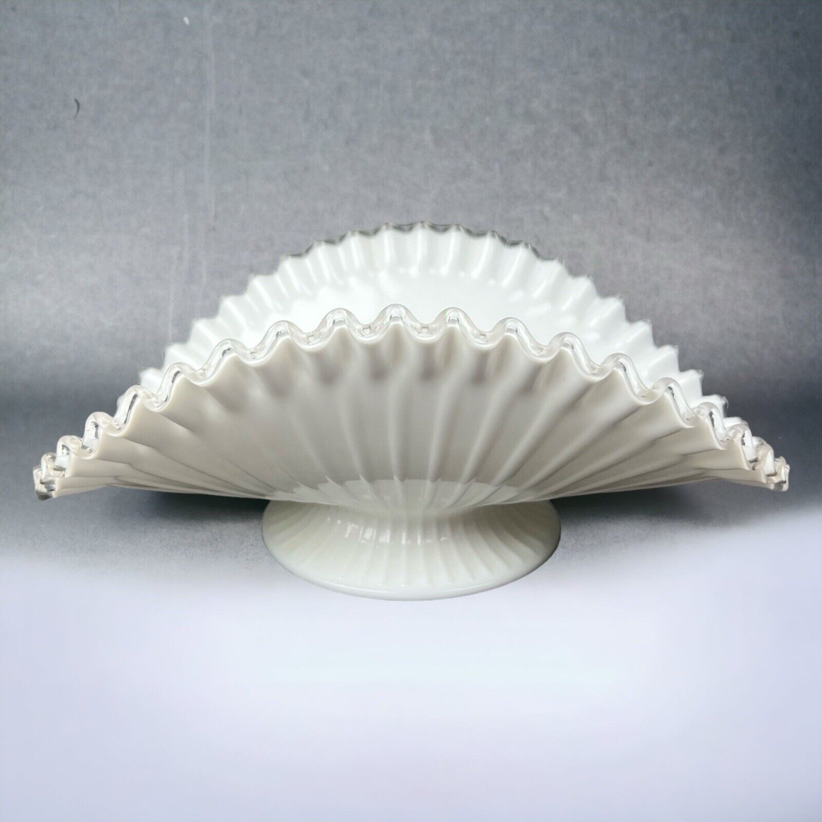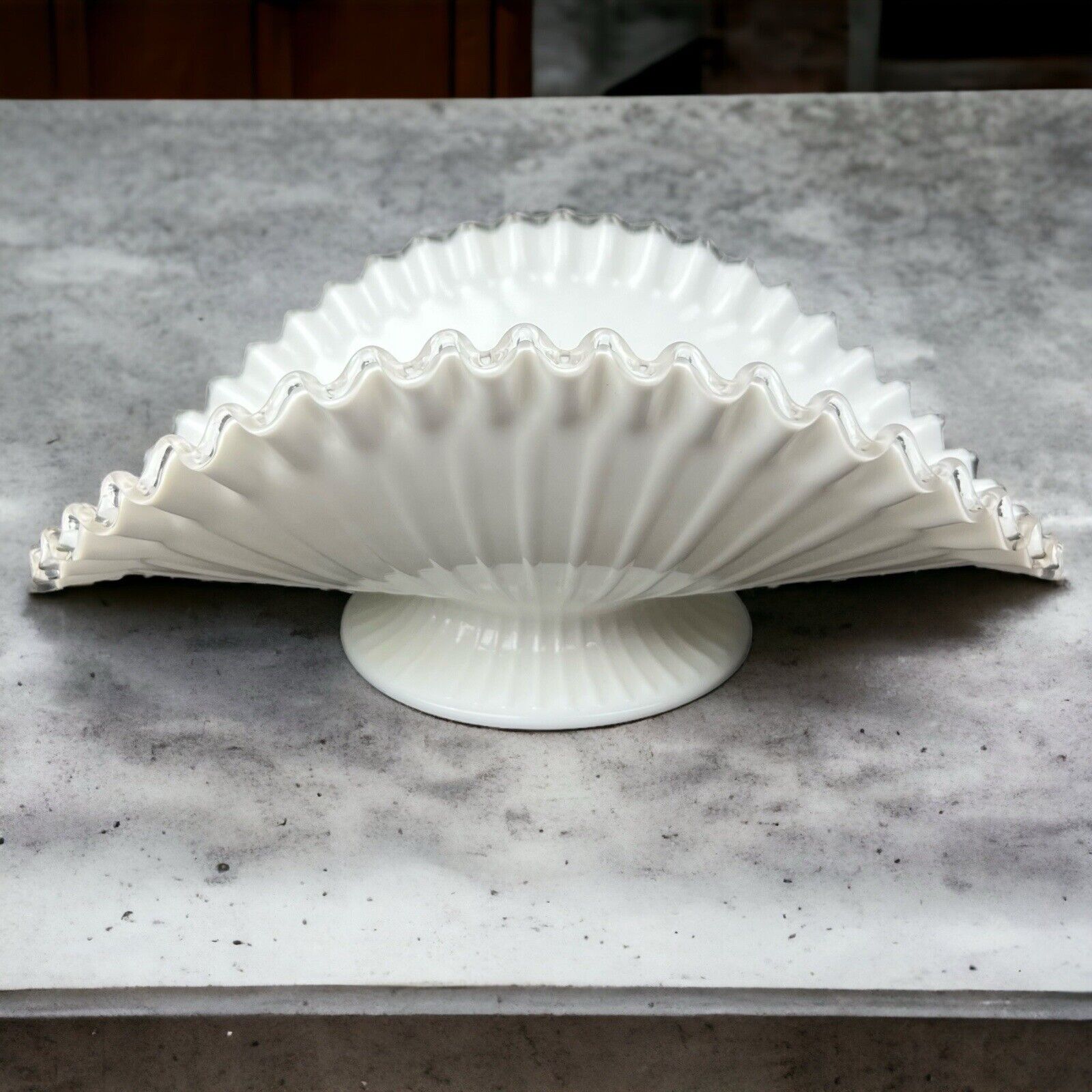 Fenton Milk Glass Ruffled Edge Serving Bowl 12"