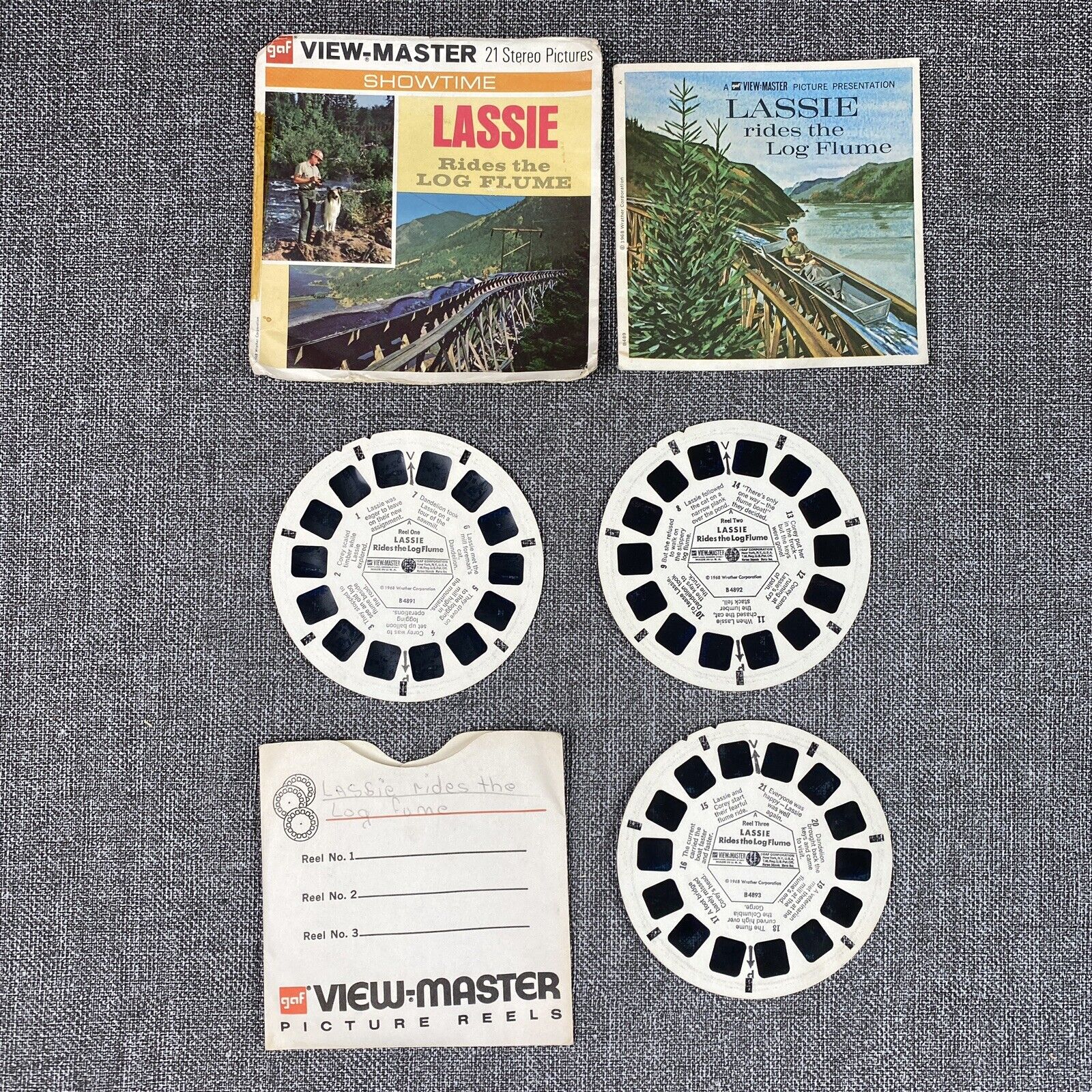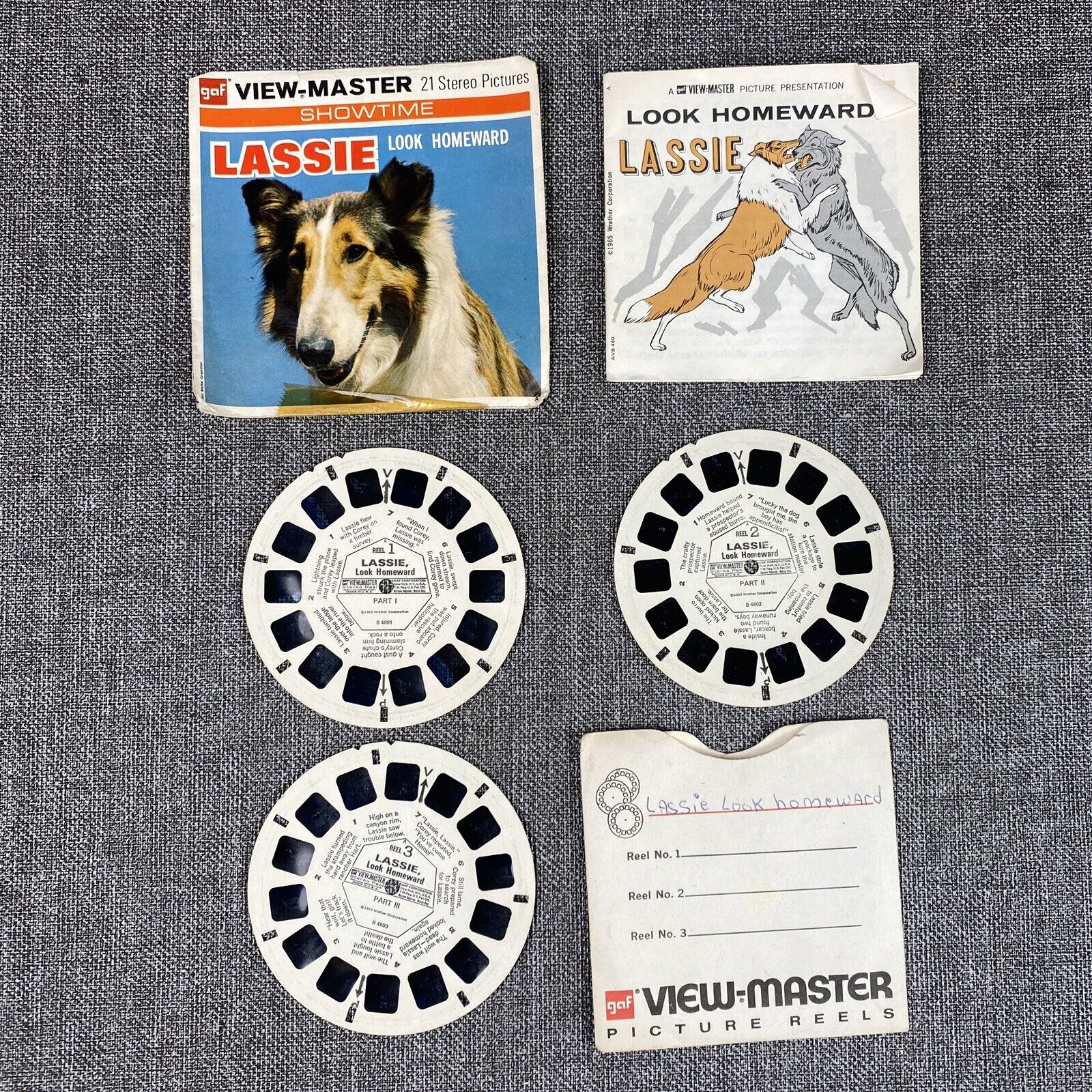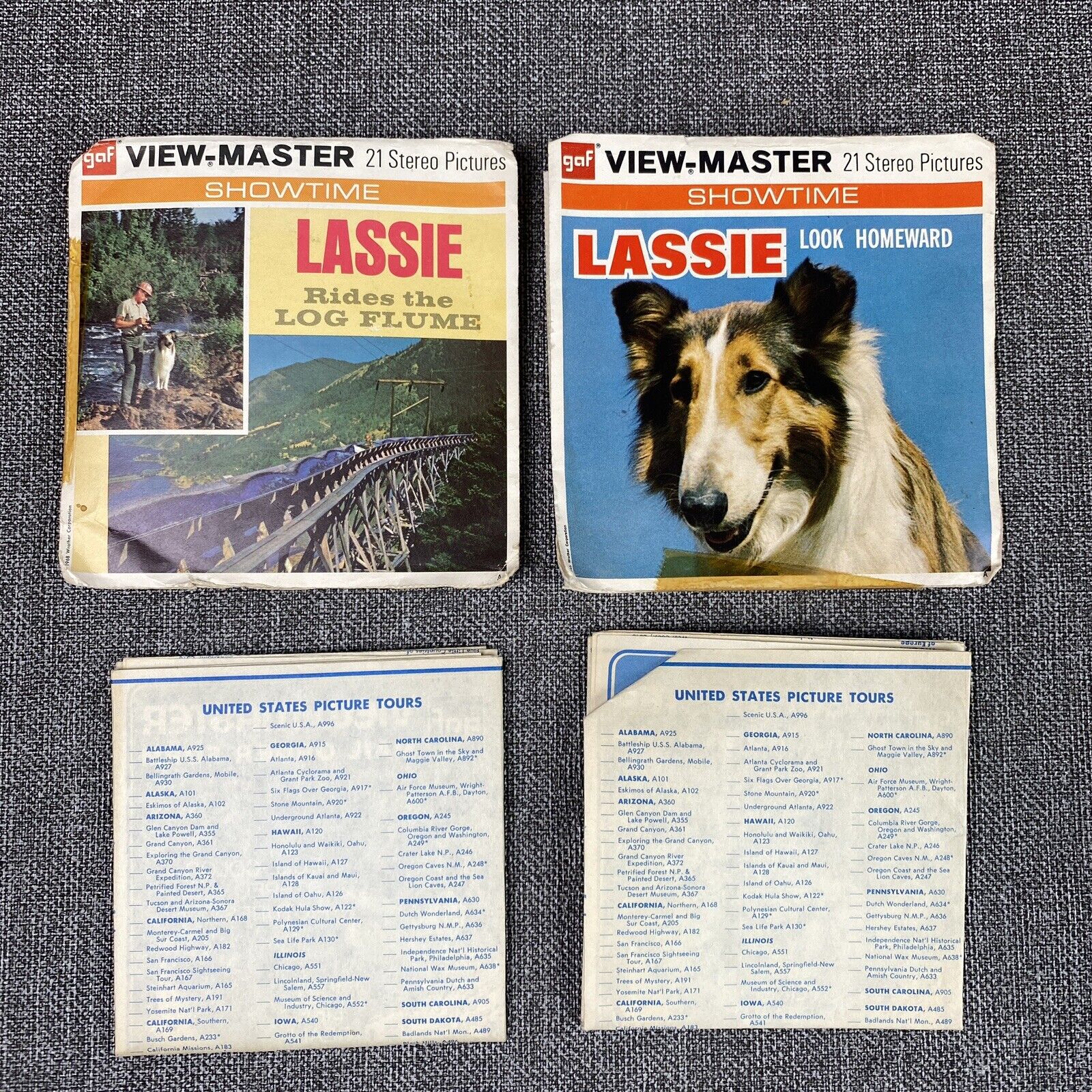 GAF View-Master Reel Packet 1968 Lassie Rides The Log Flume Look Homeward