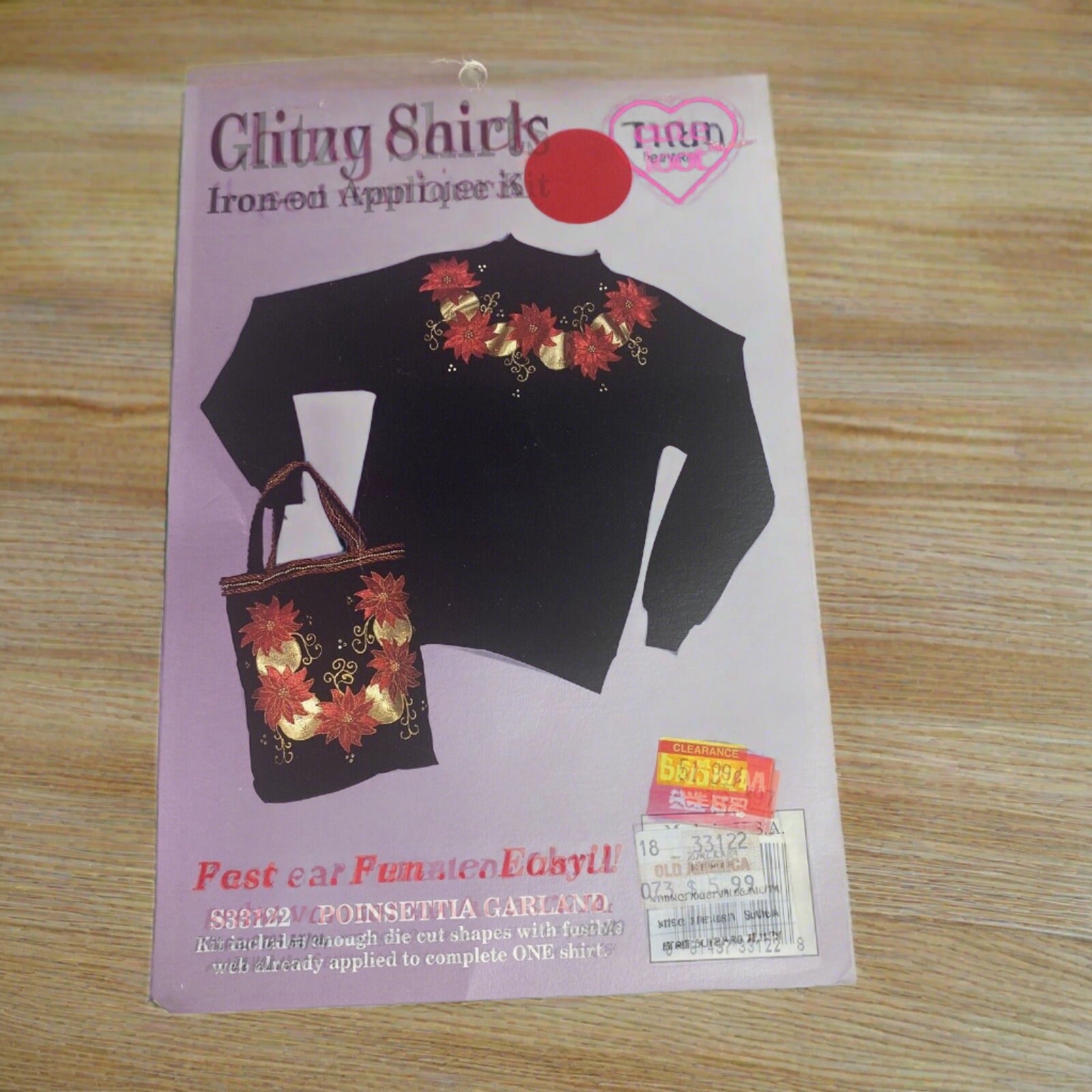 Glitzy Shirts Iron On Applique Kit, Poinsettia Garland