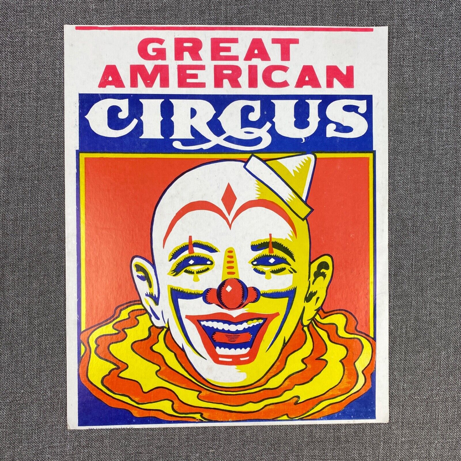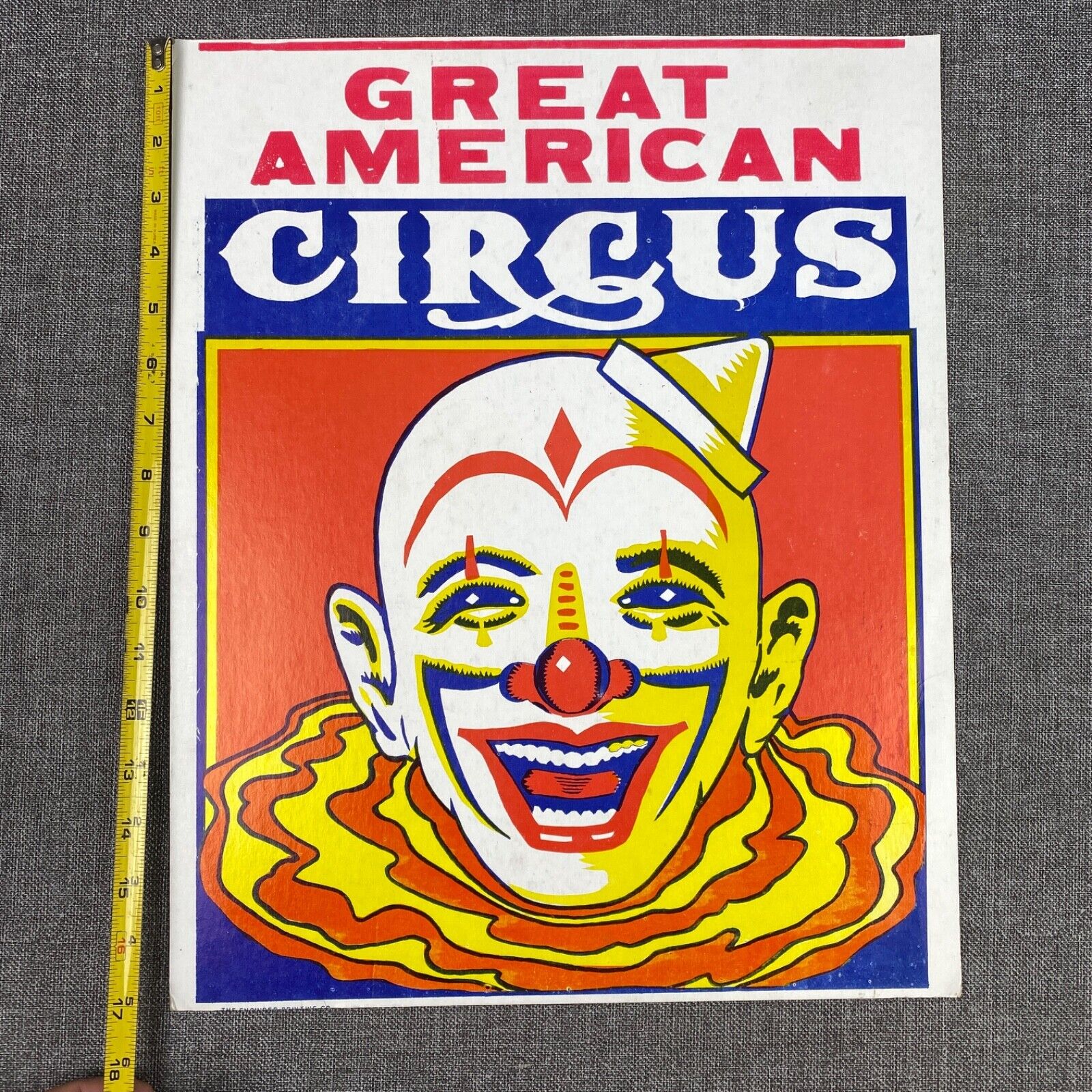 Great American Circus Vintage Cardboard Poster 17" Tall x 14" Wide