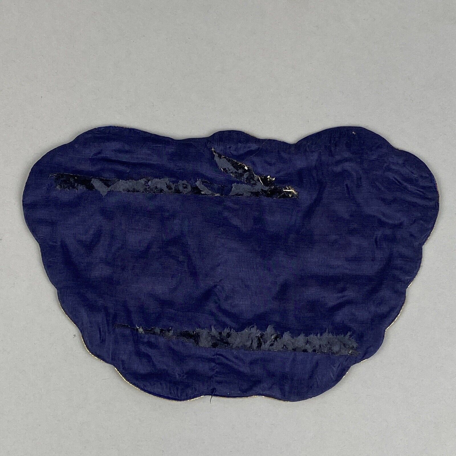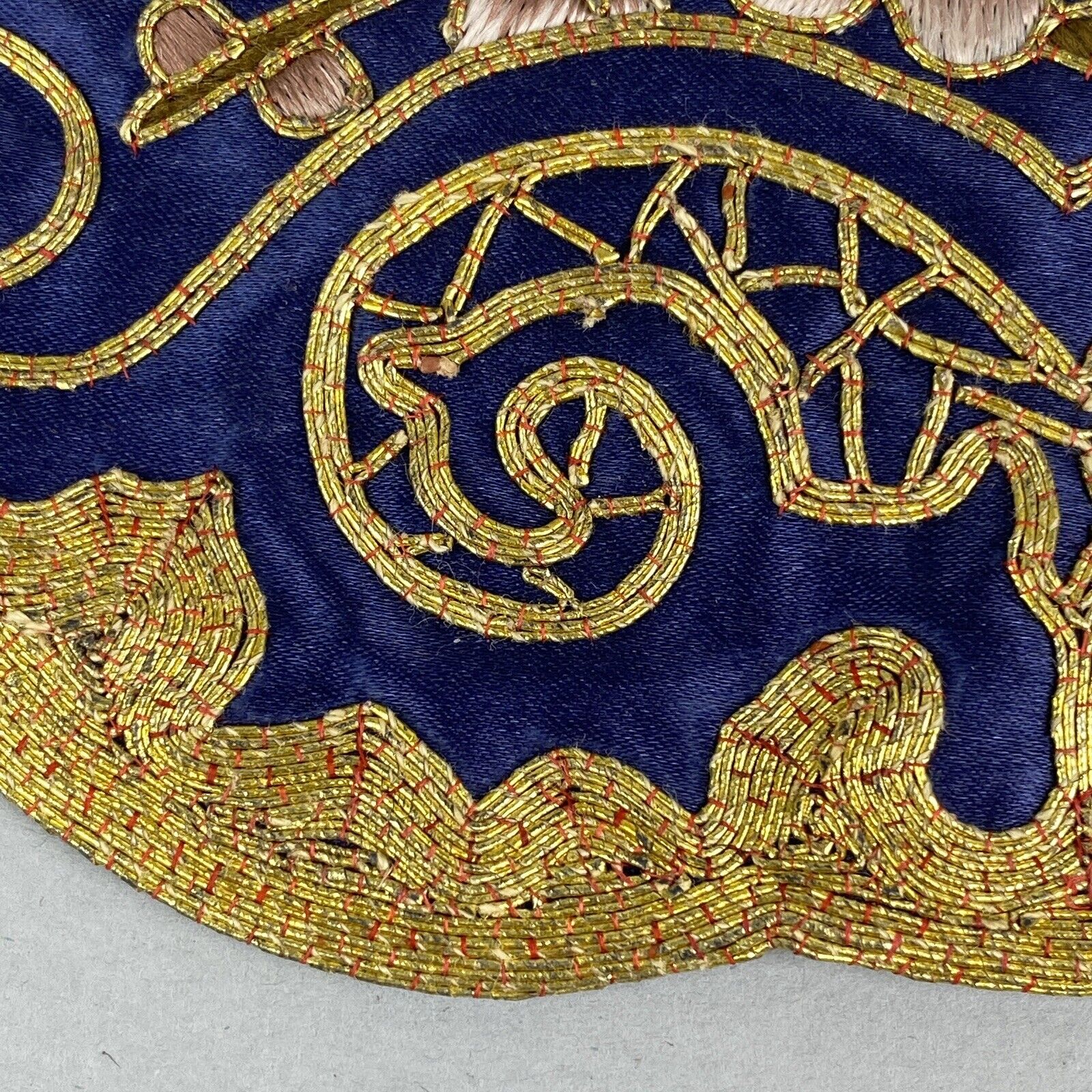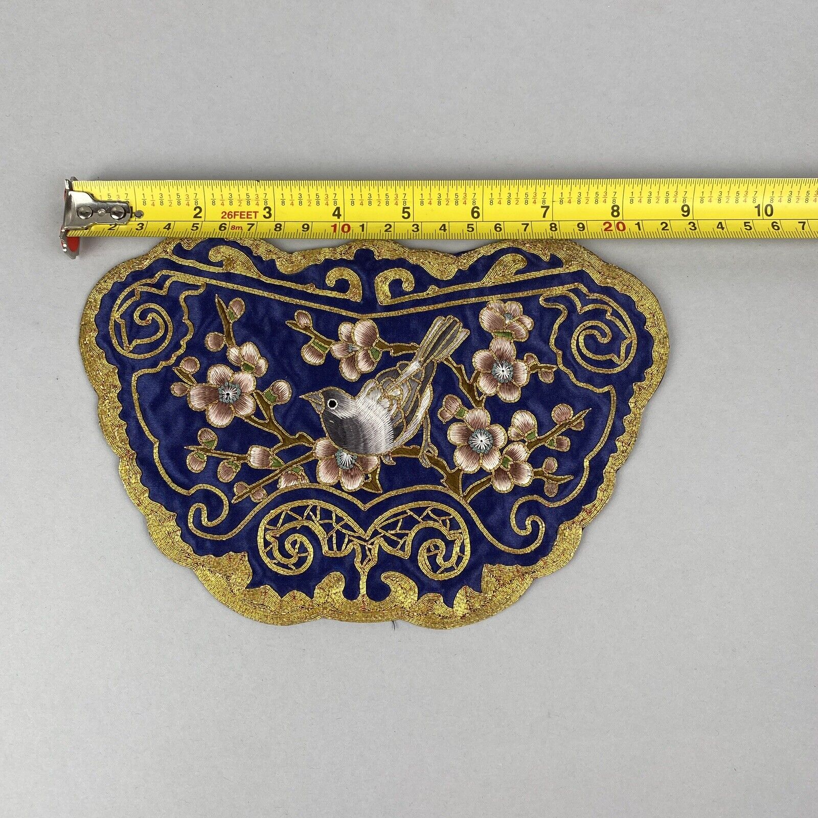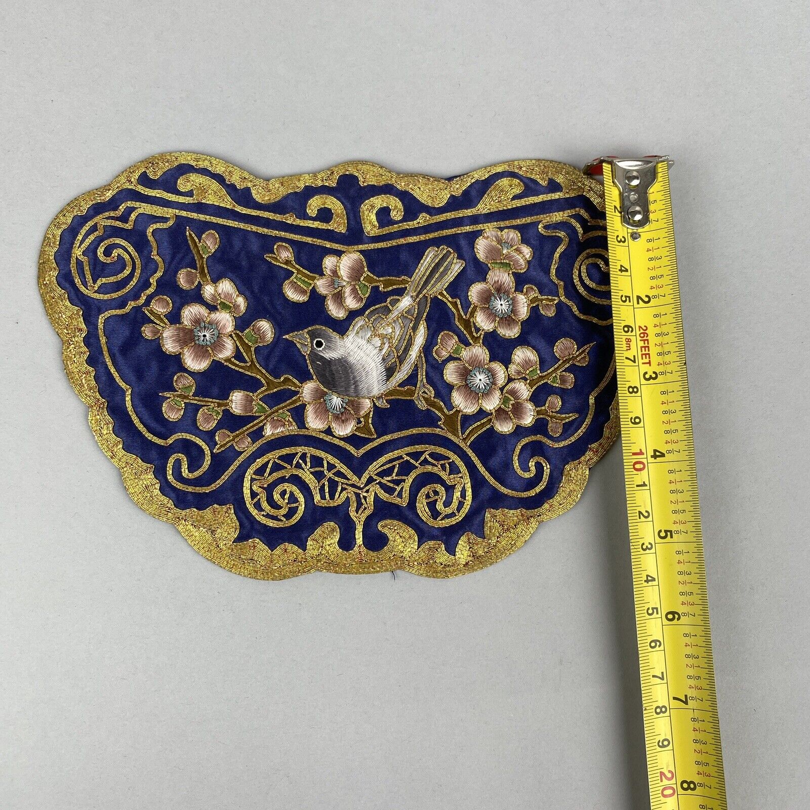 Hand Embroidered Silk Scalloped Blue Background with Bird (READ)
