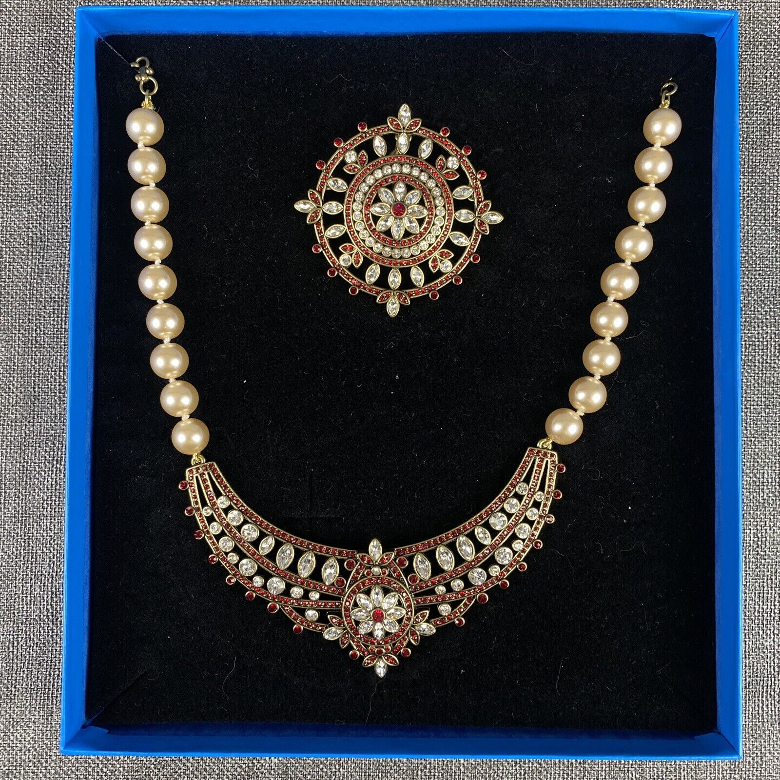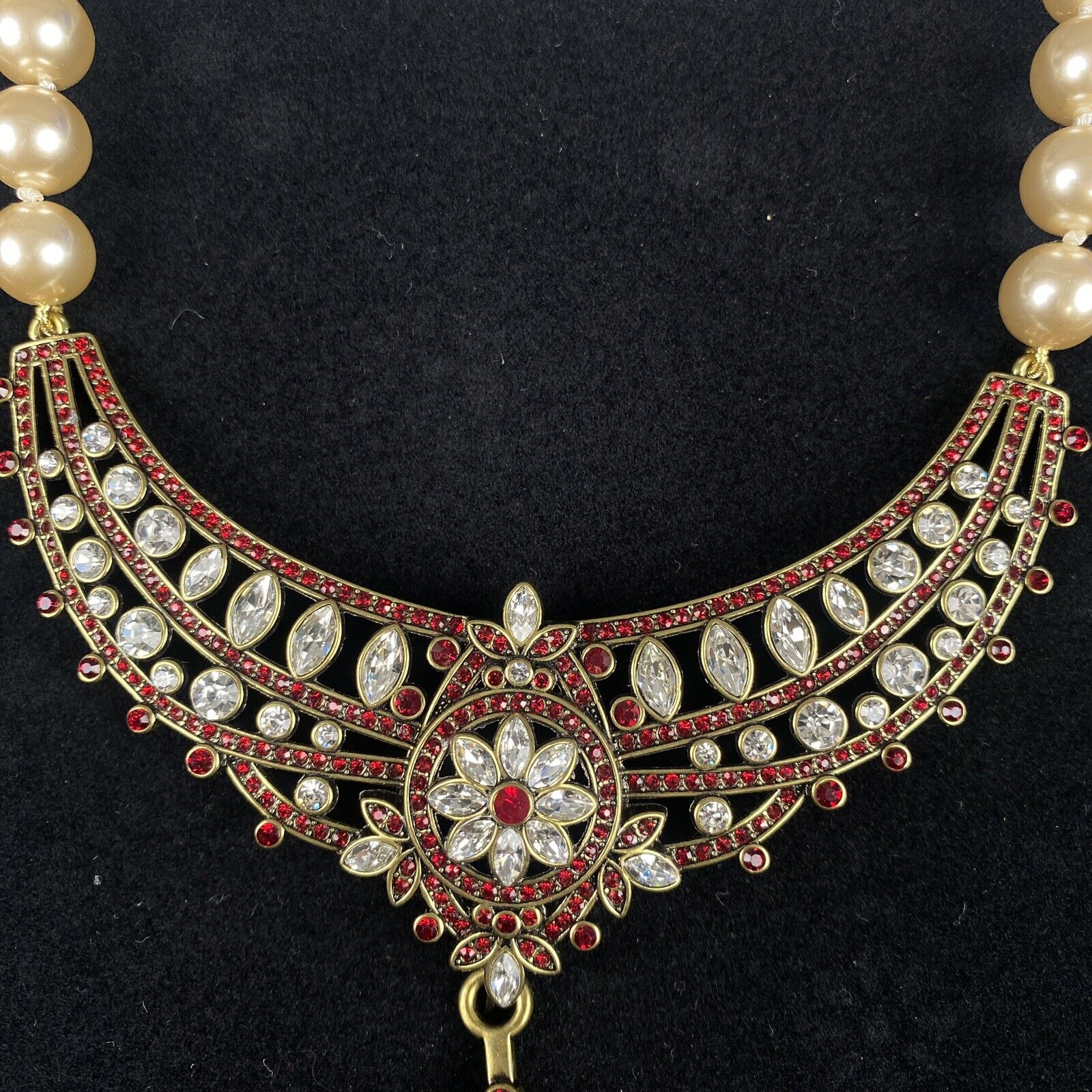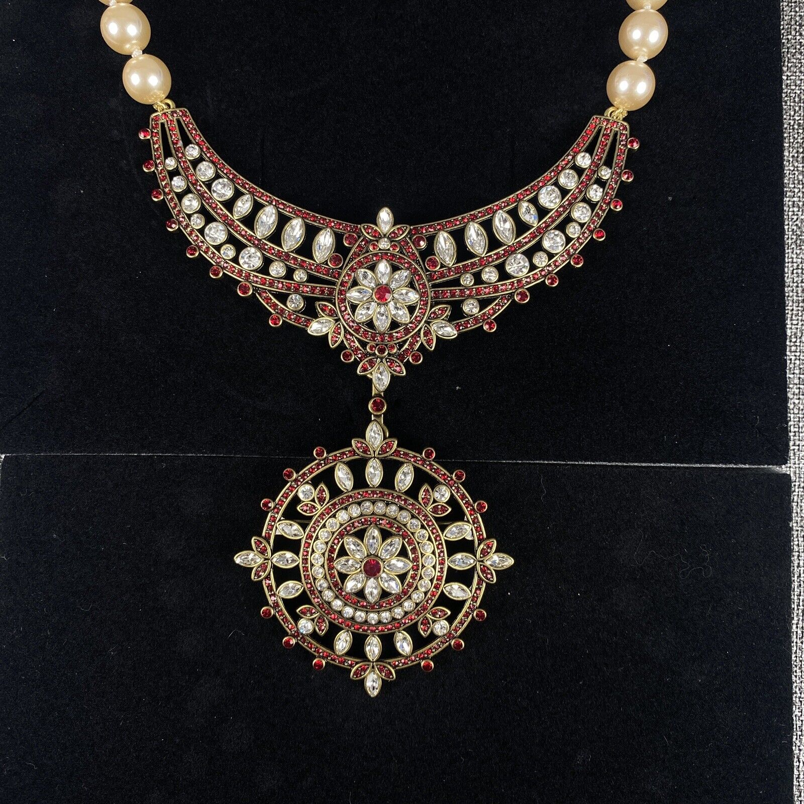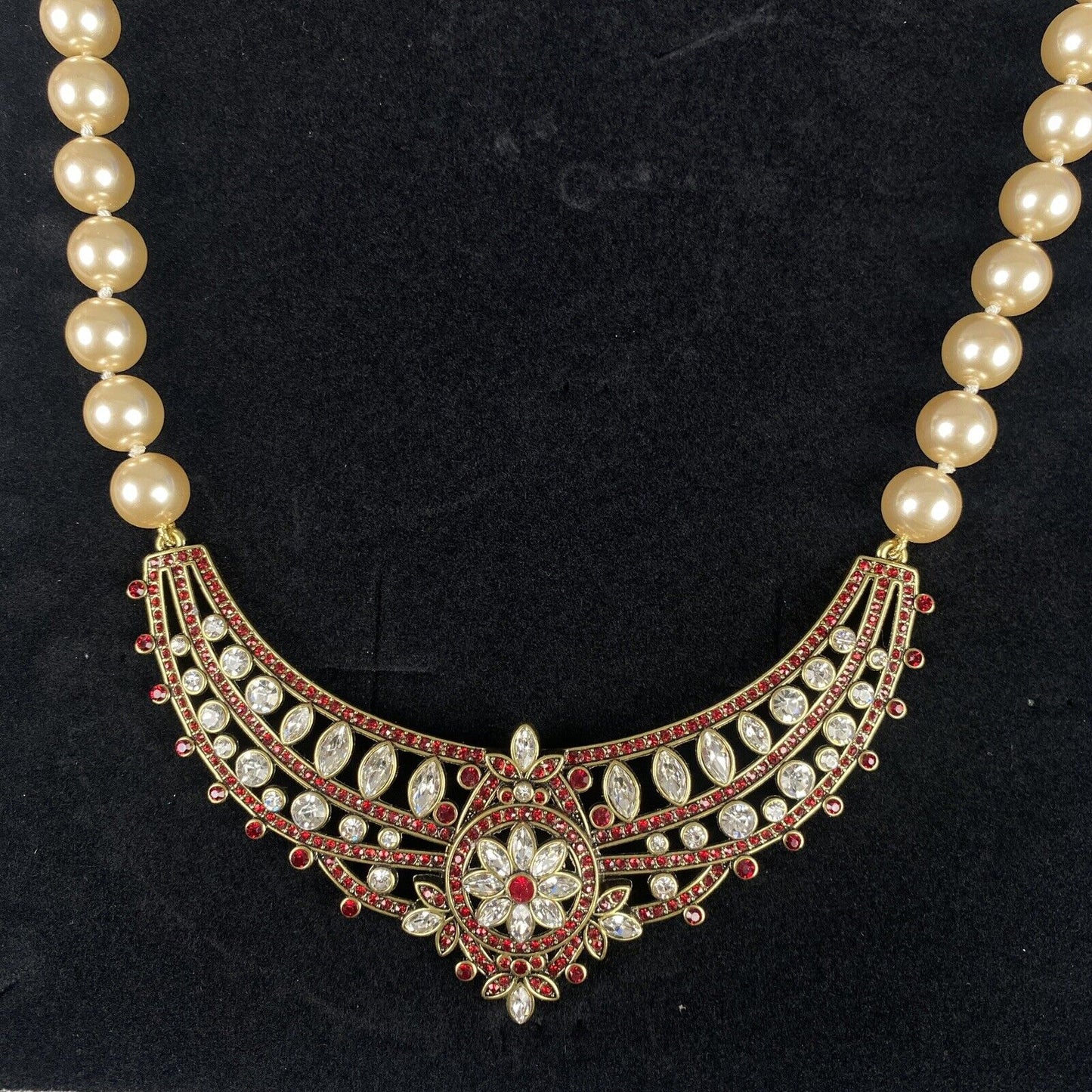 Heidi Daus French Twist Cluster Crystal Removable Pendant Brooch Pearl Necklace
