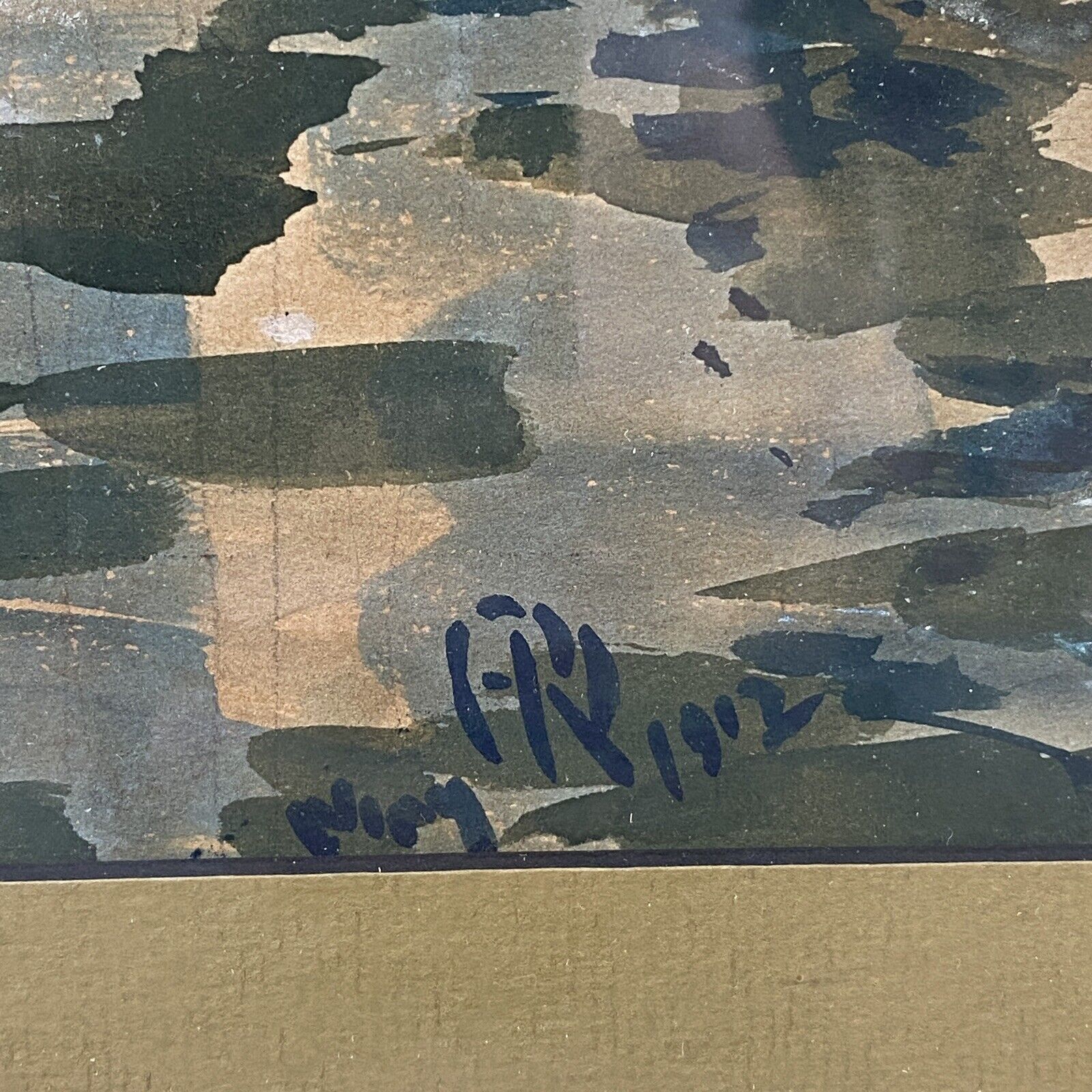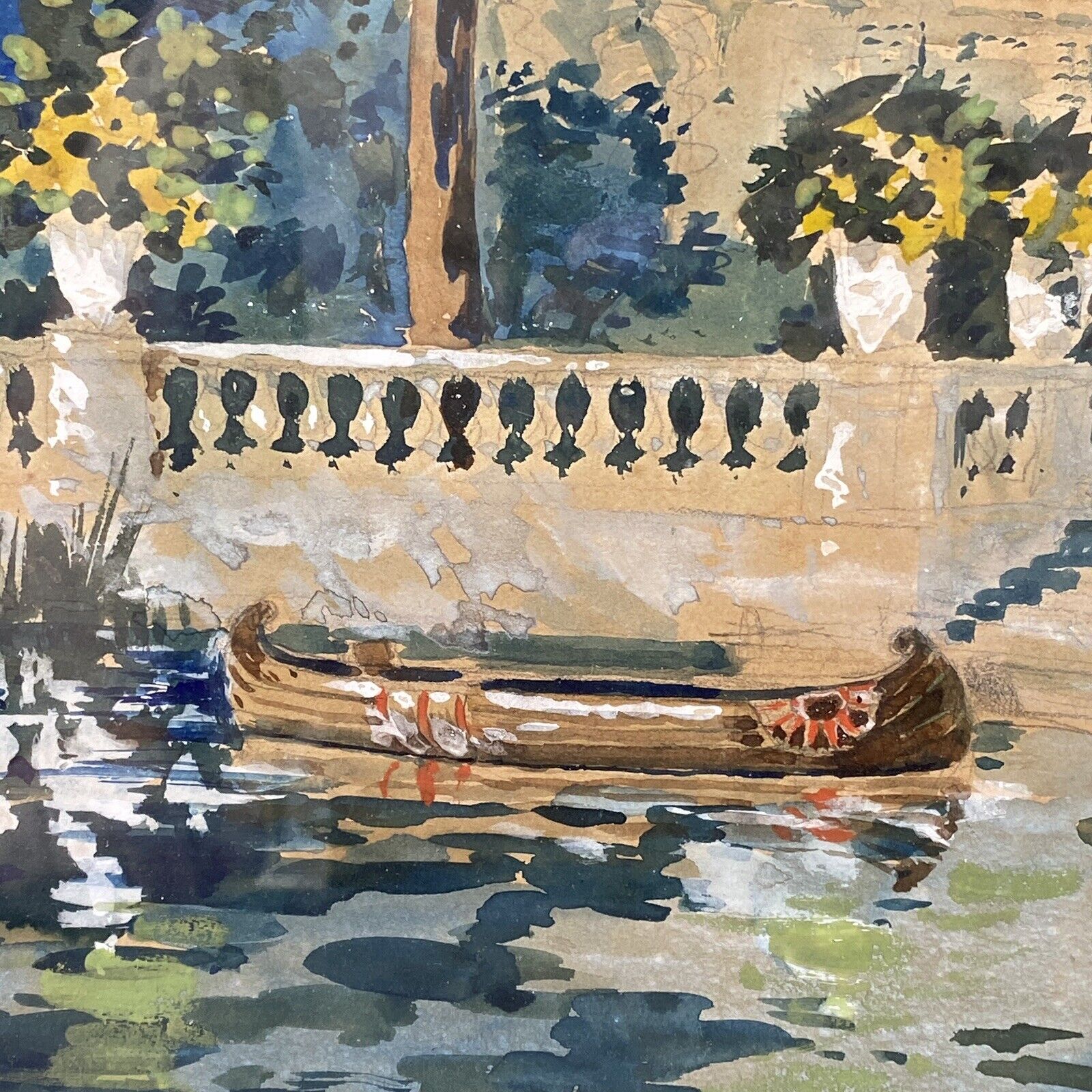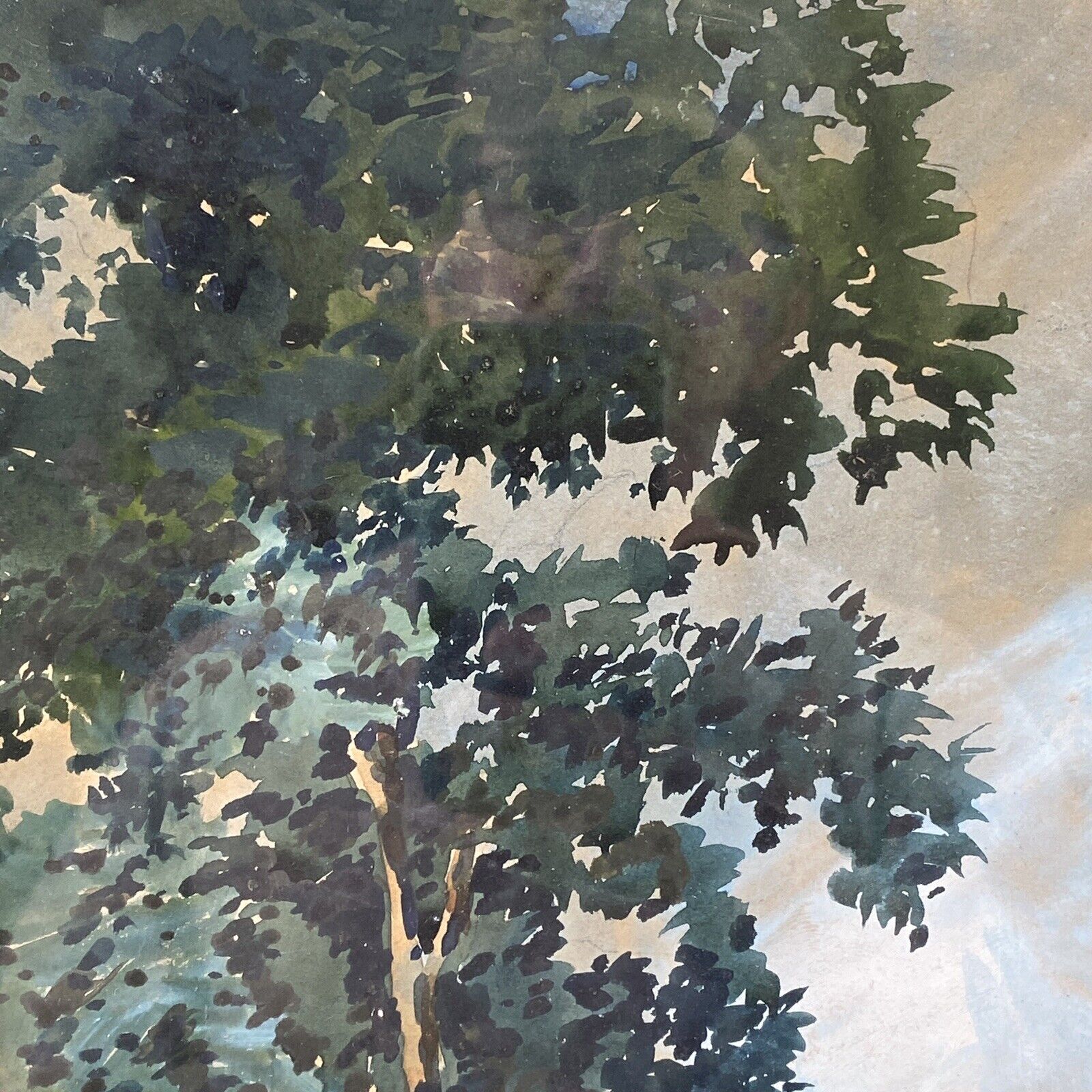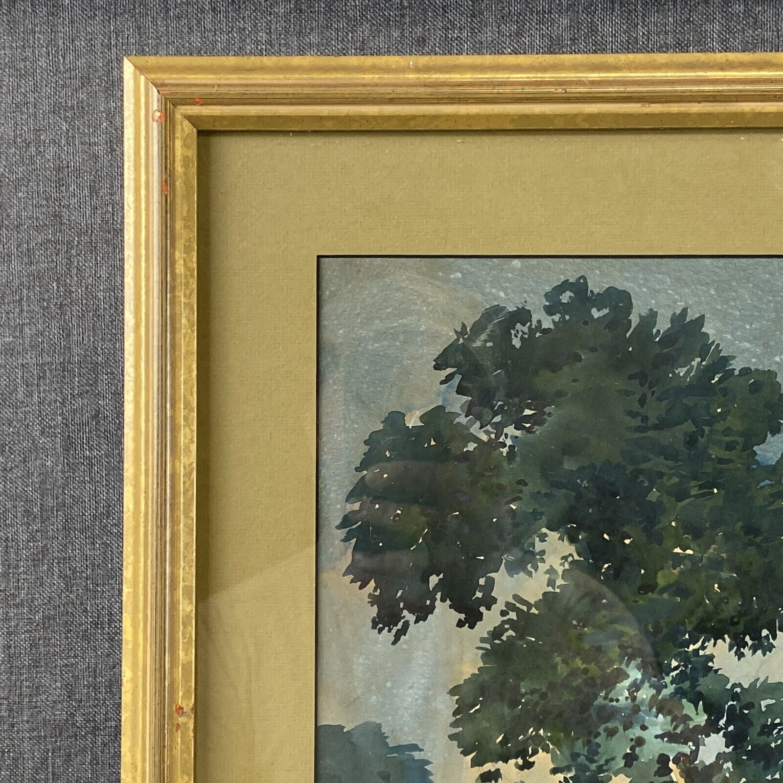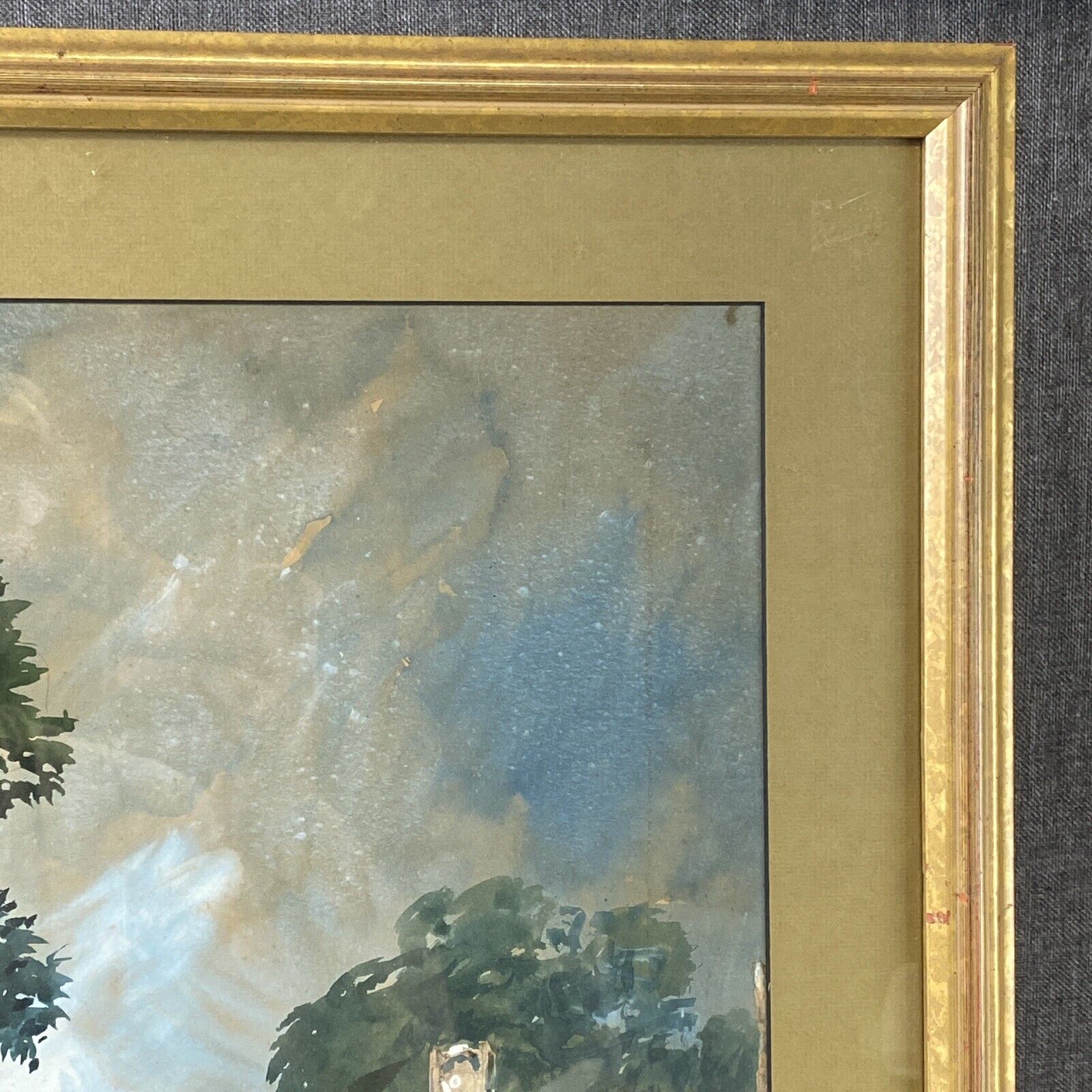 Herbert Ripley GARDEN SCENE Original Watercolor Painting Woman and Pond 28"x22"