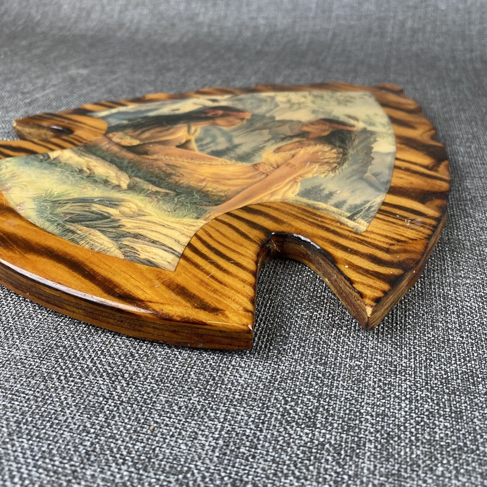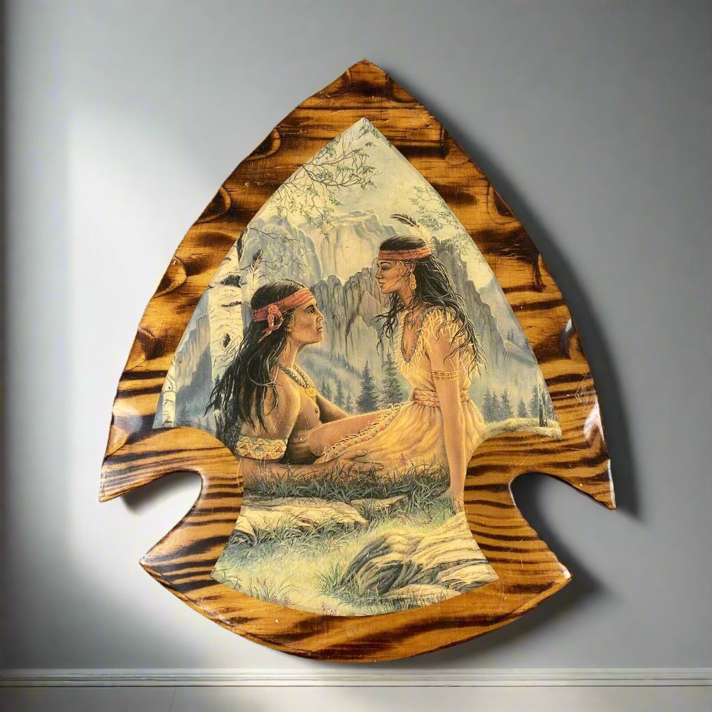 Indian Couple Wooden Resin Arrow Head Plaque Vintage