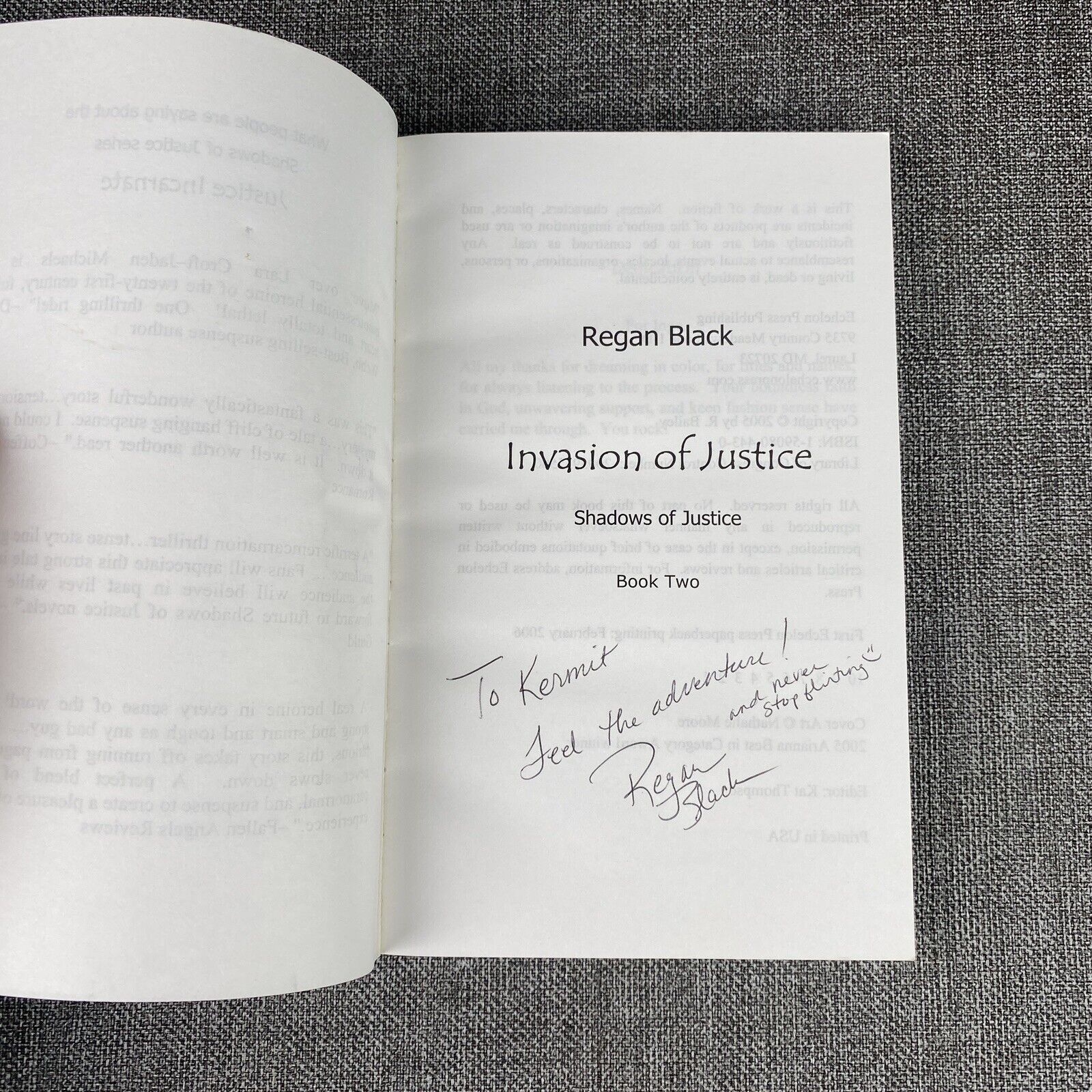 Invasion Of Justice: Shadows Of Justice Book 2 by Regan Black 2006, Autographed