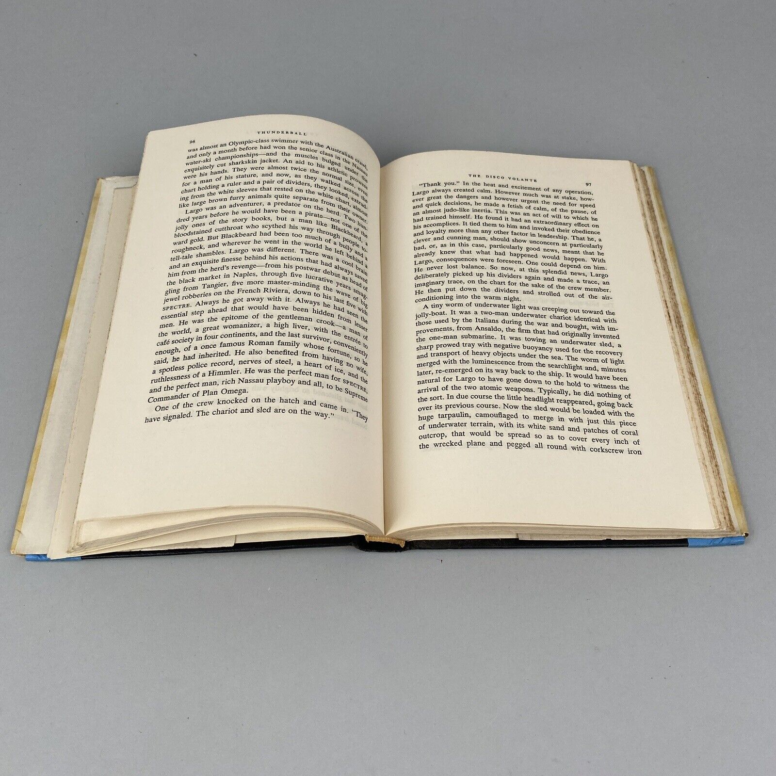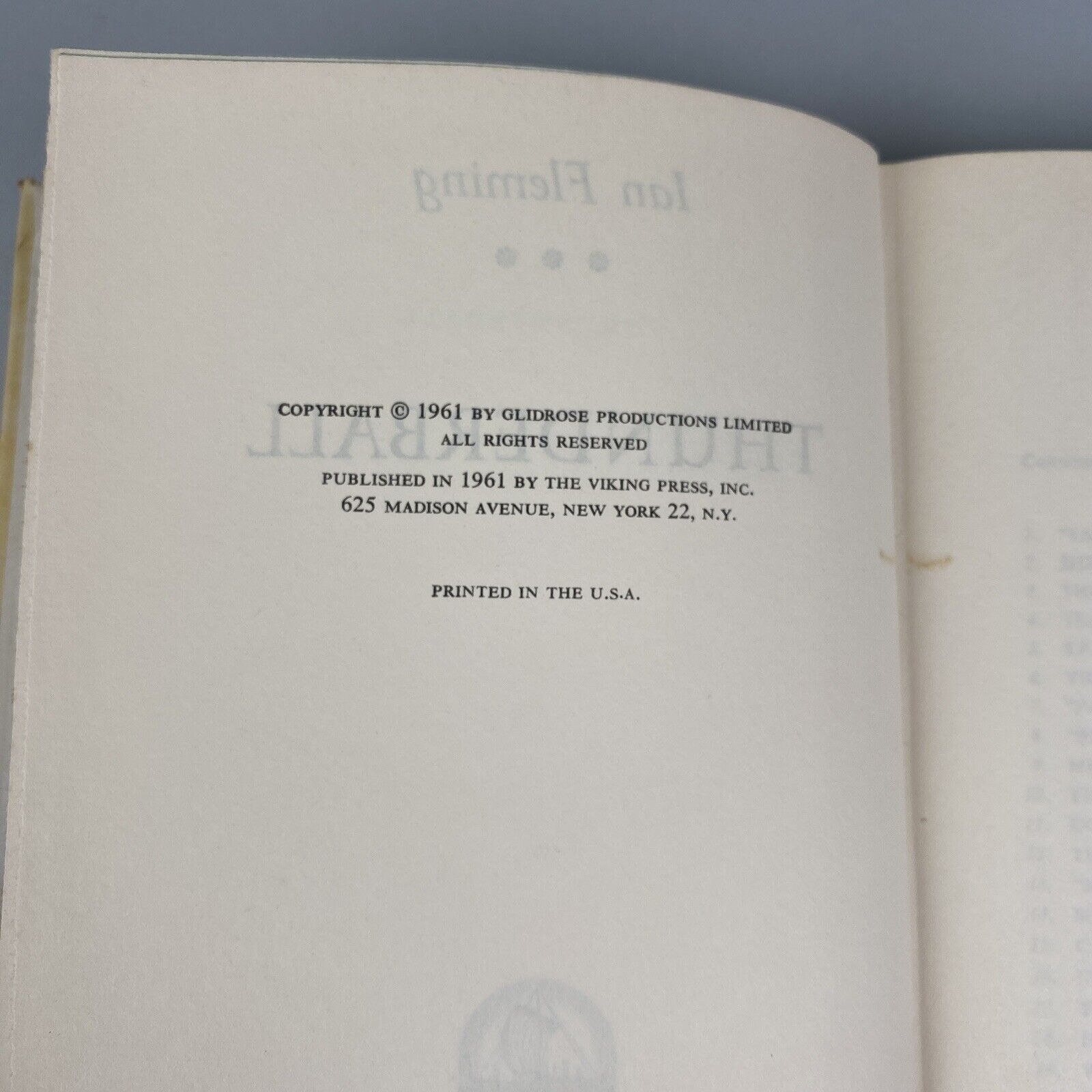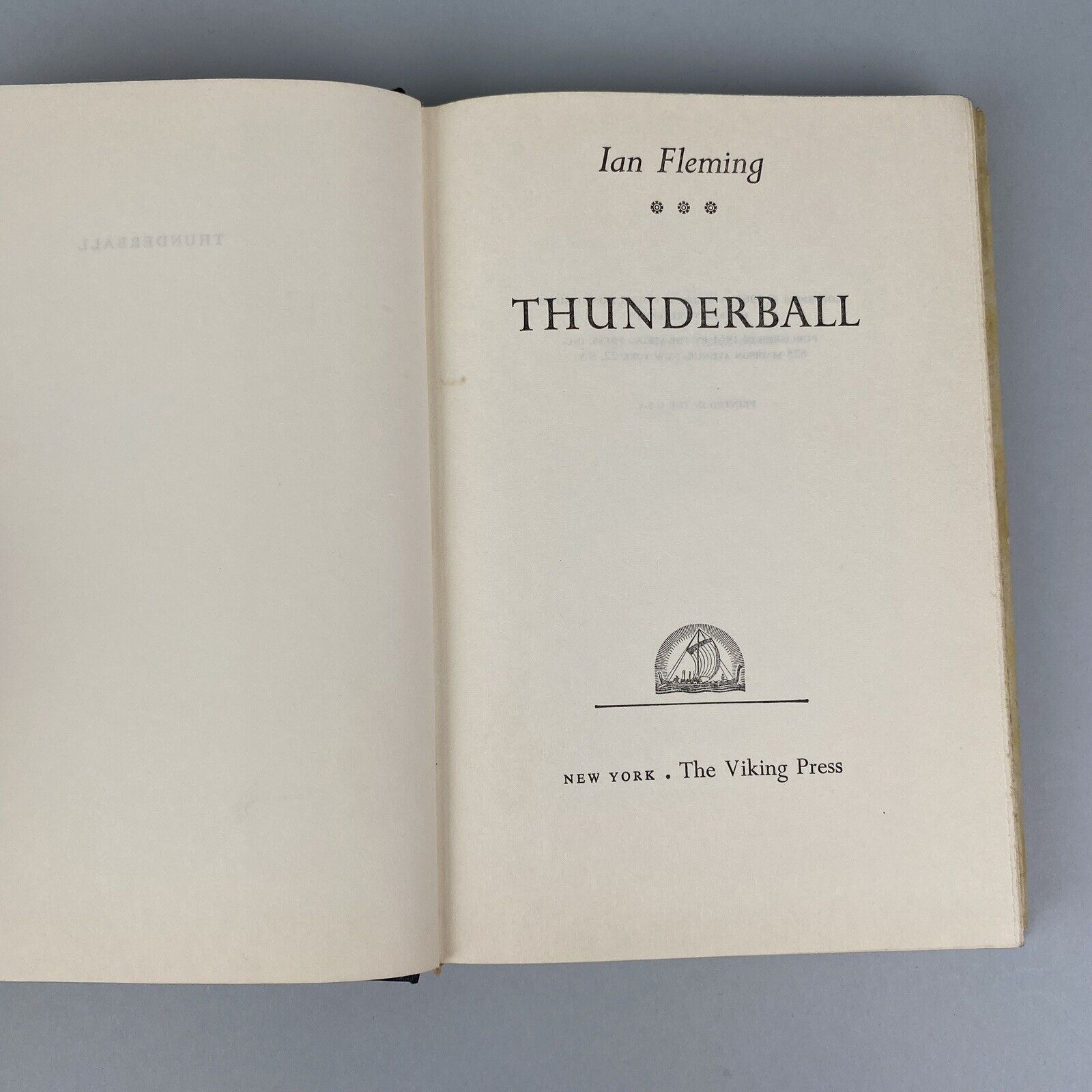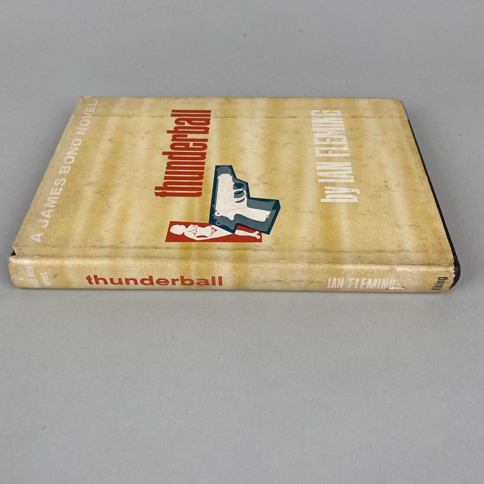 This is a copy of the vintage novel titled Thunderball that was written by Ian Fleming and published by The Viking Press in 1961. The book and dust cover are in acceptable condition with significant wear due to its antiquity.