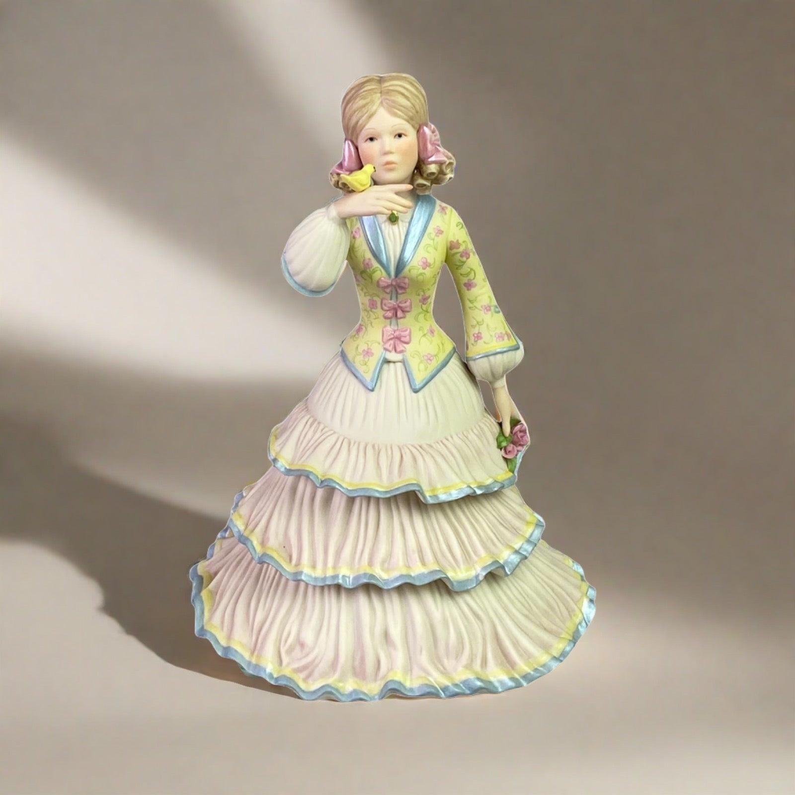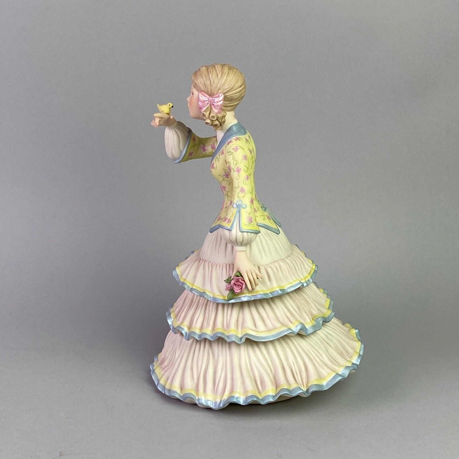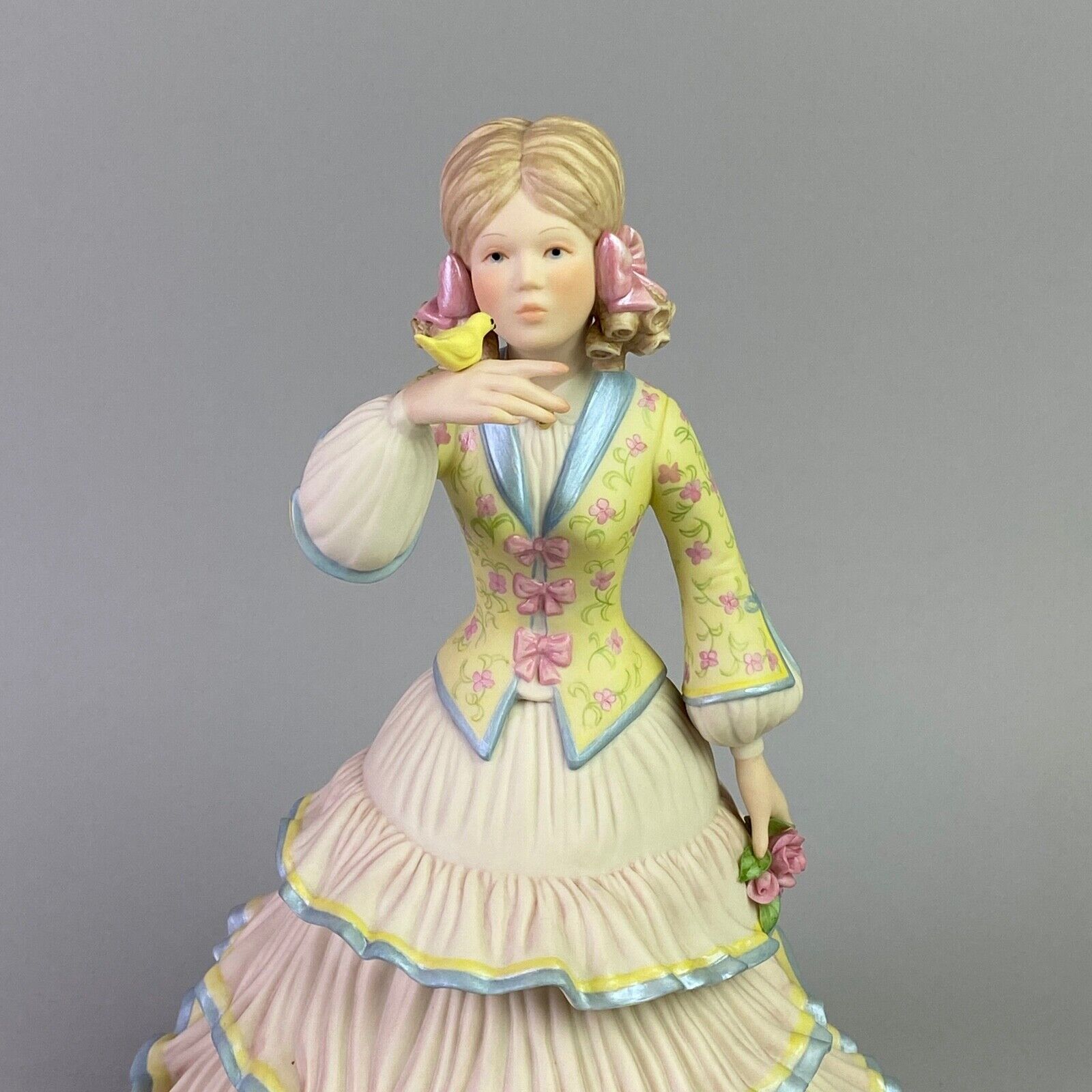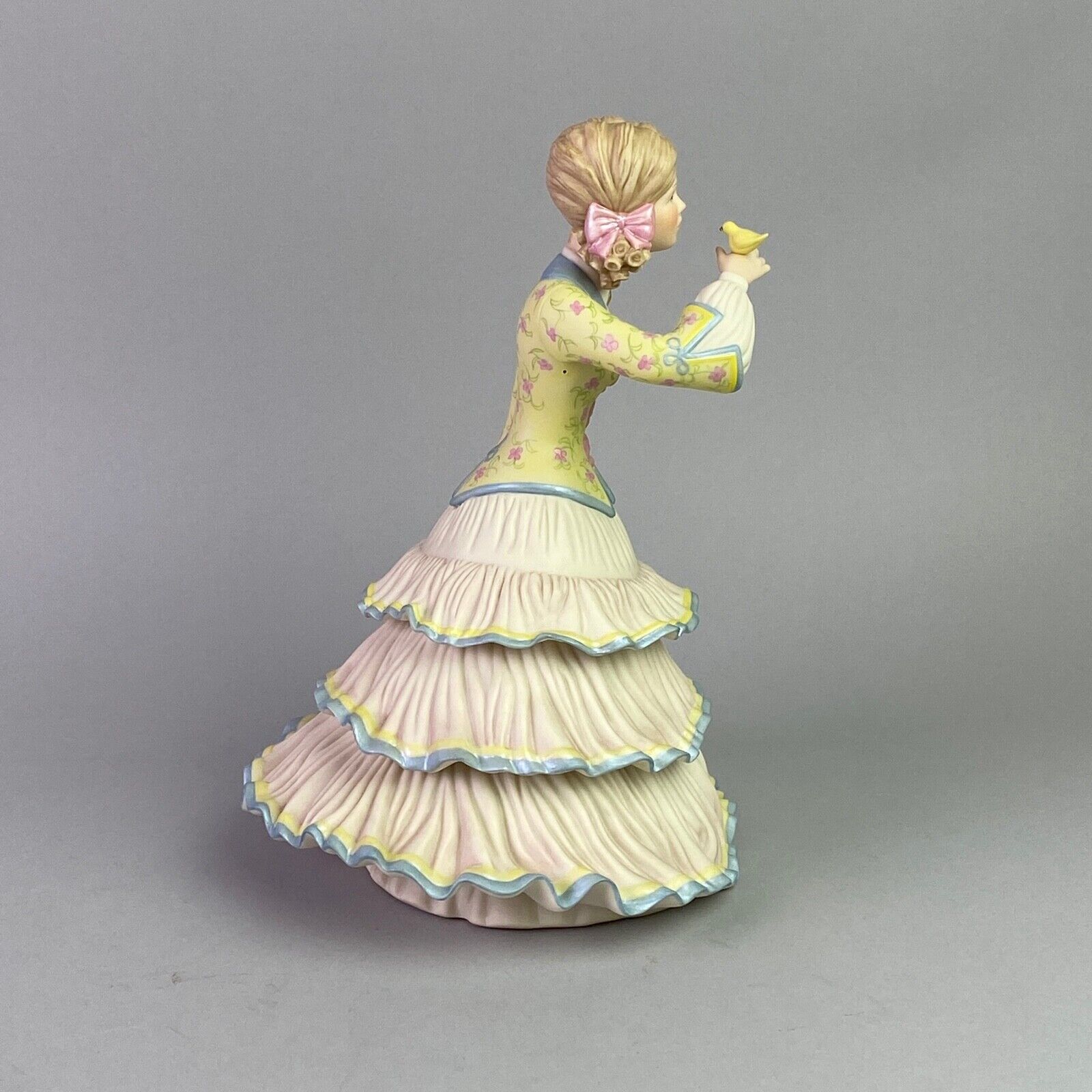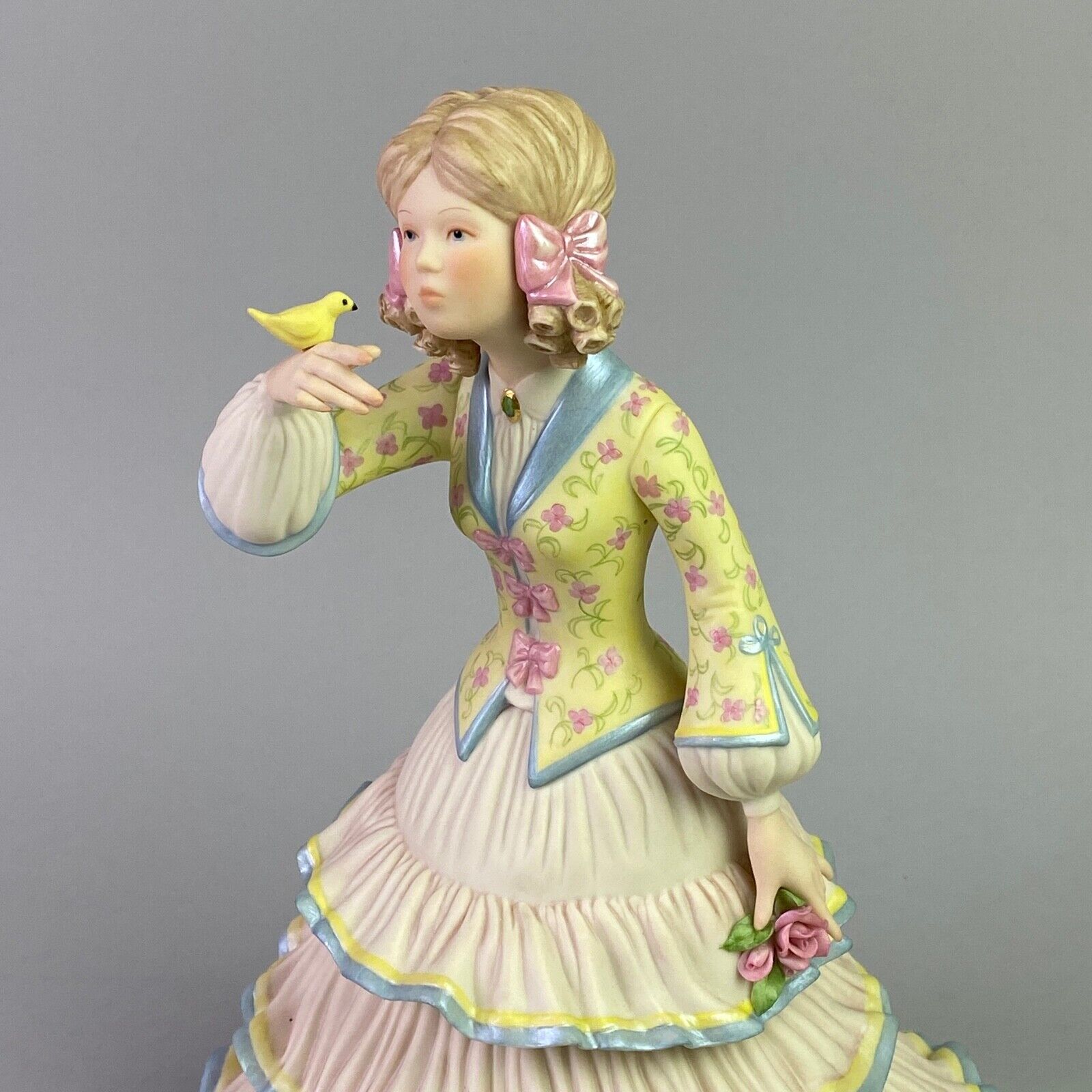 The Jeanie With Bird On Hand Cybis Figurine is in excellent condition with no chips or cracks, as shown in the photos.