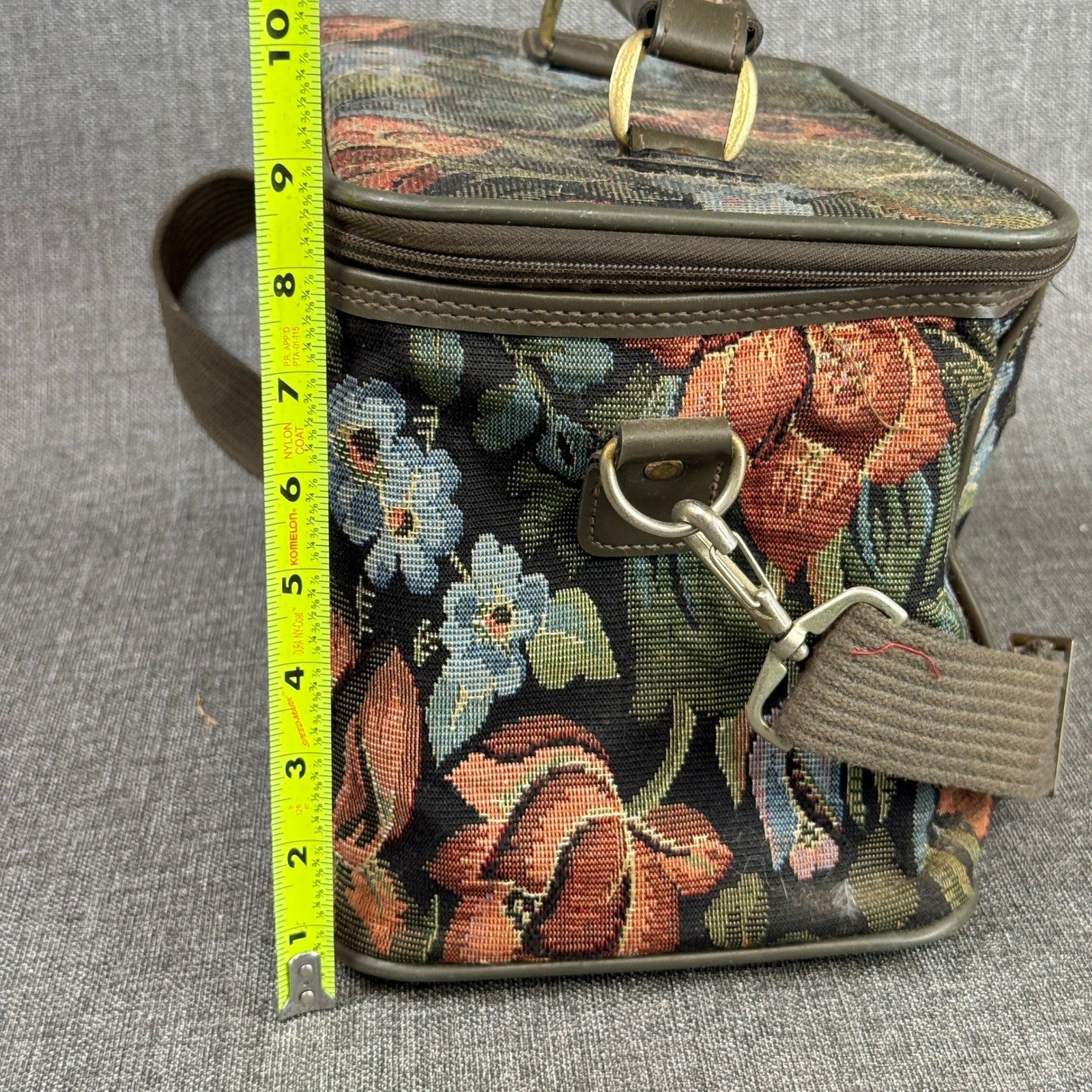 Keywords: Jordache bag, floral tapestry bag, vintage handbag, crossbody bag, travel bag, carry on bag, retro bag, floral bag, 90s bag, vintage travel bag, small handbag, tapestry purse, Jordache purse, floral crossbody