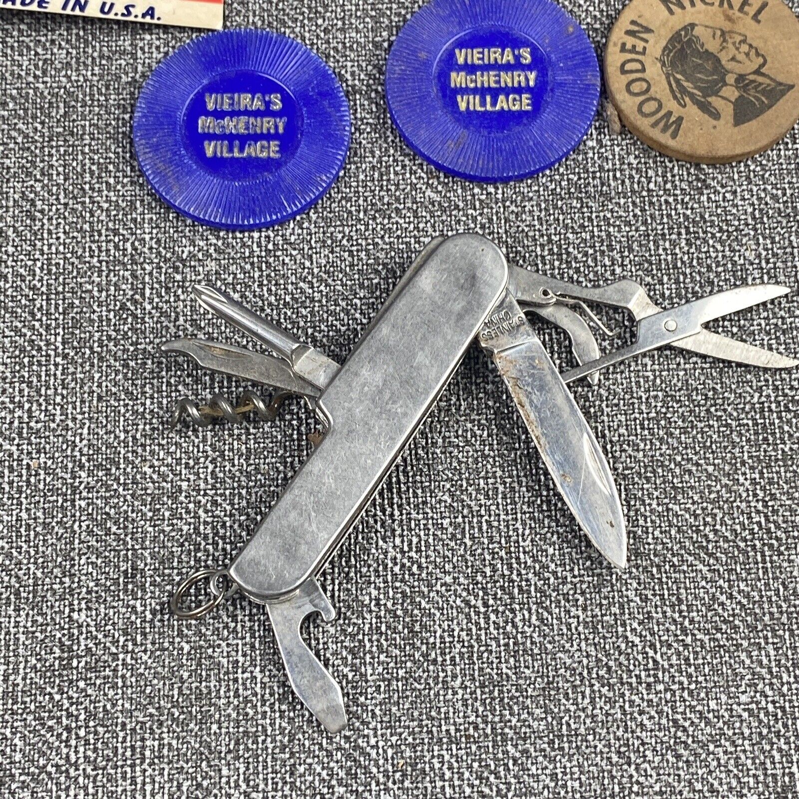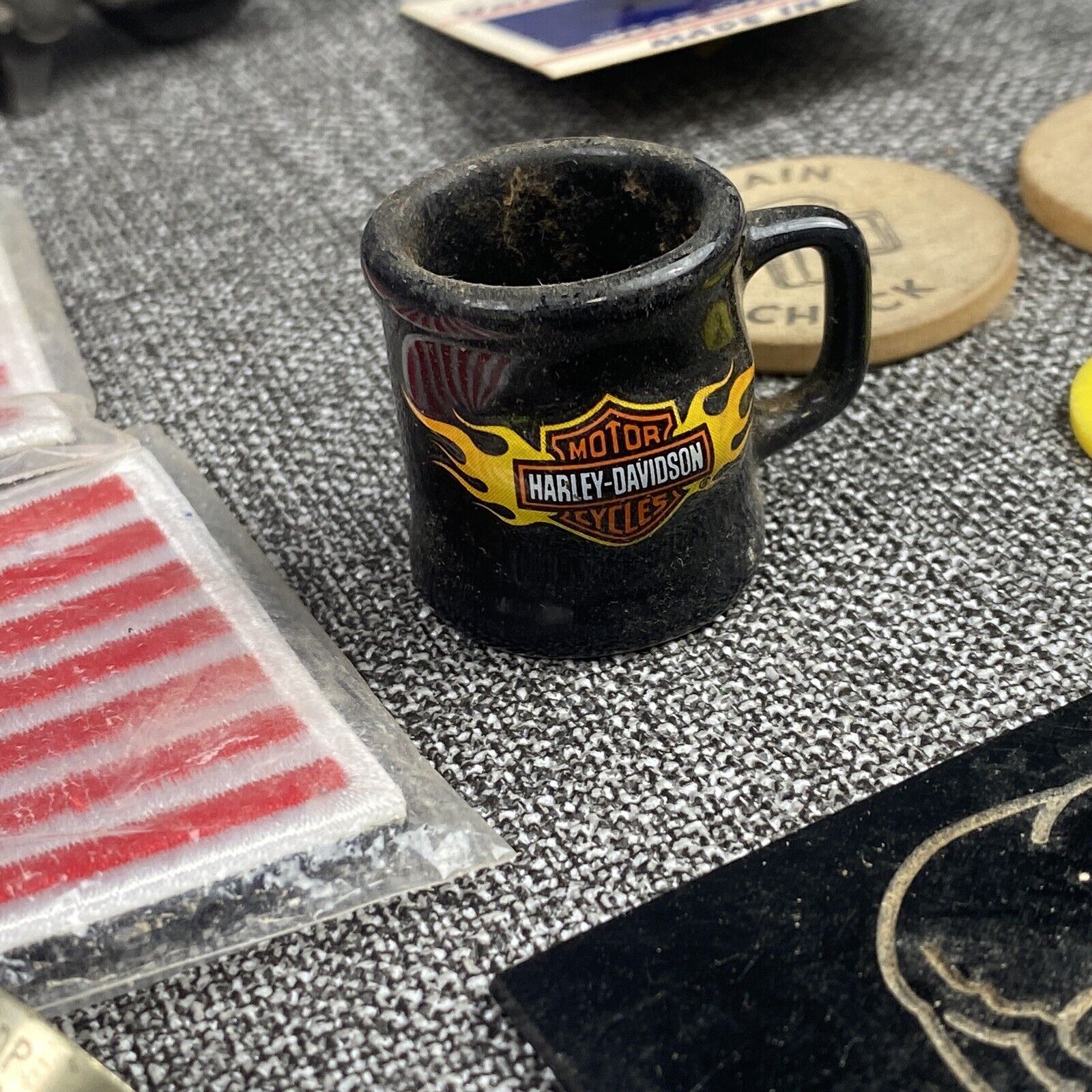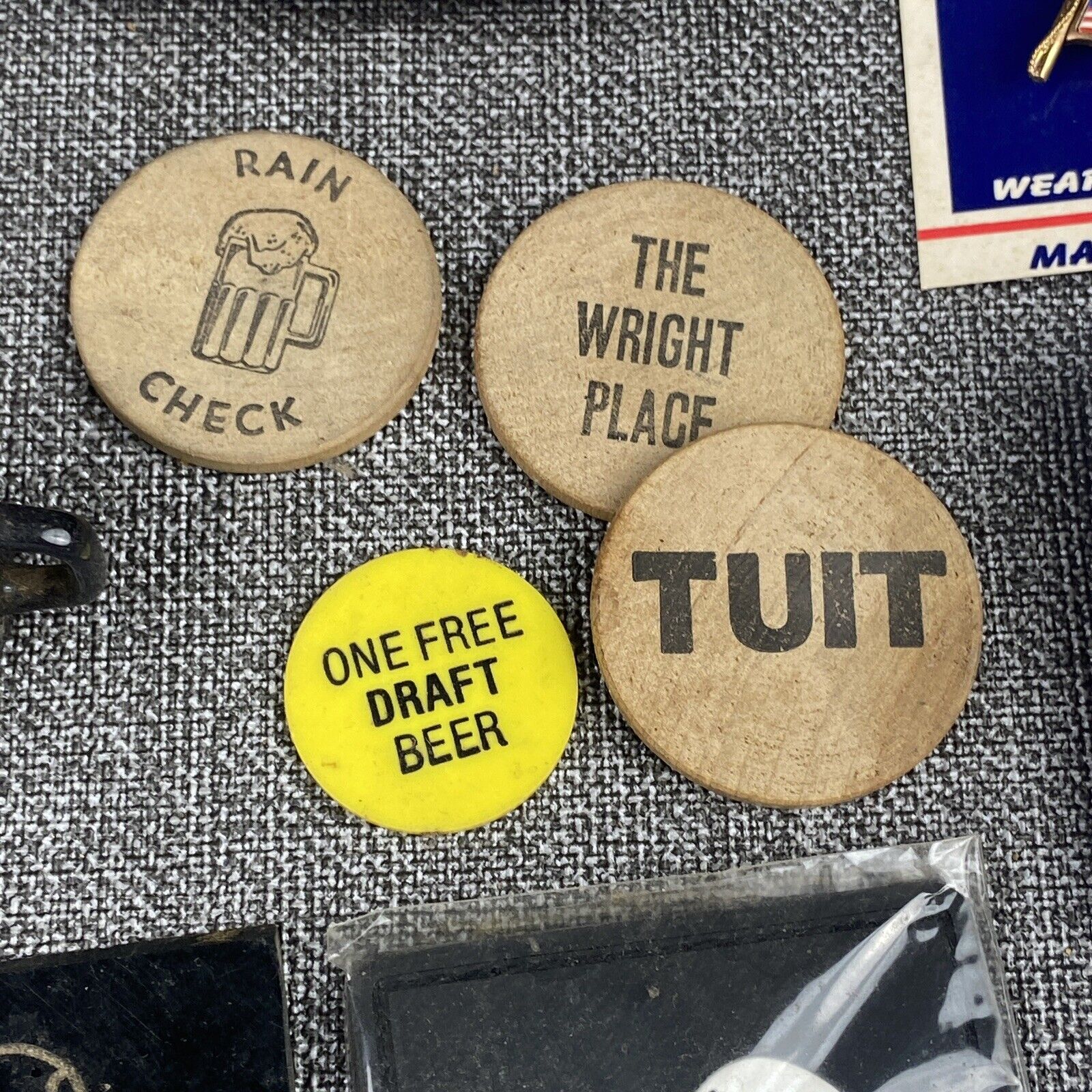 Junk Drawer Harley, Beer Tokens, Patches, US Flag Pins, Skulls, etc