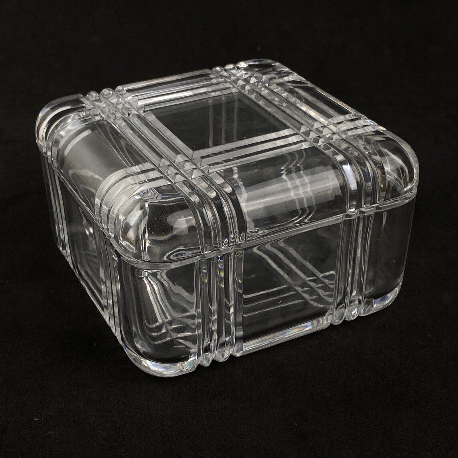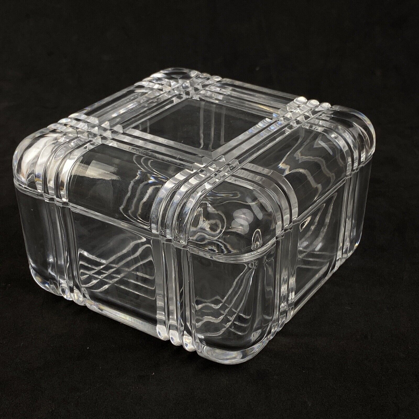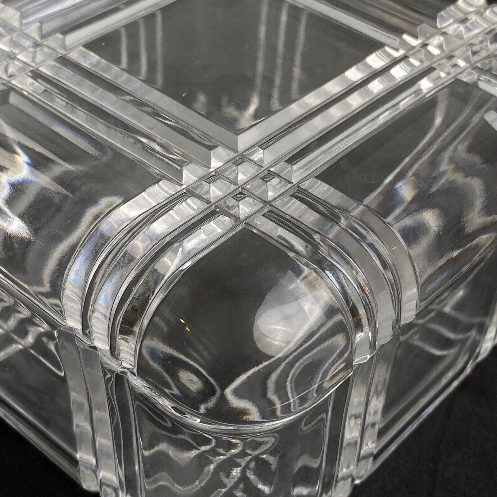 Kristall Krista Square Art Deco Style Crystal Bowl with lid 5.5"x 5.5"x 3"